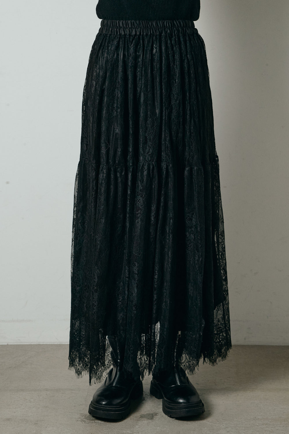 ひげレース切替ロング丈スカート