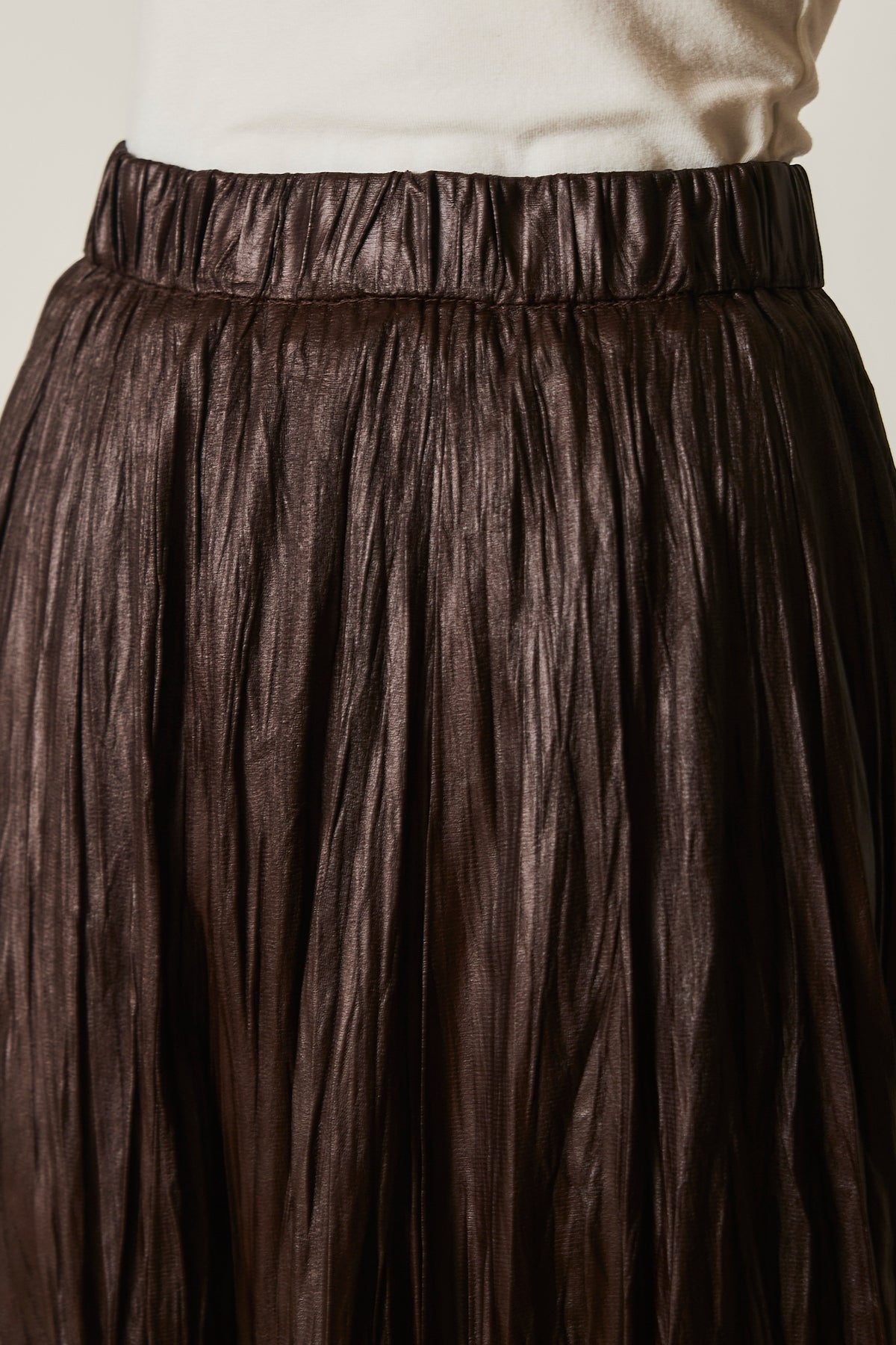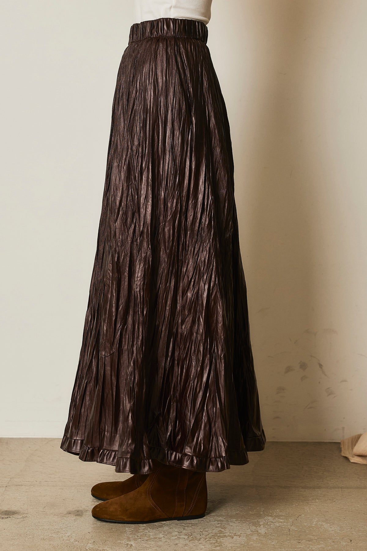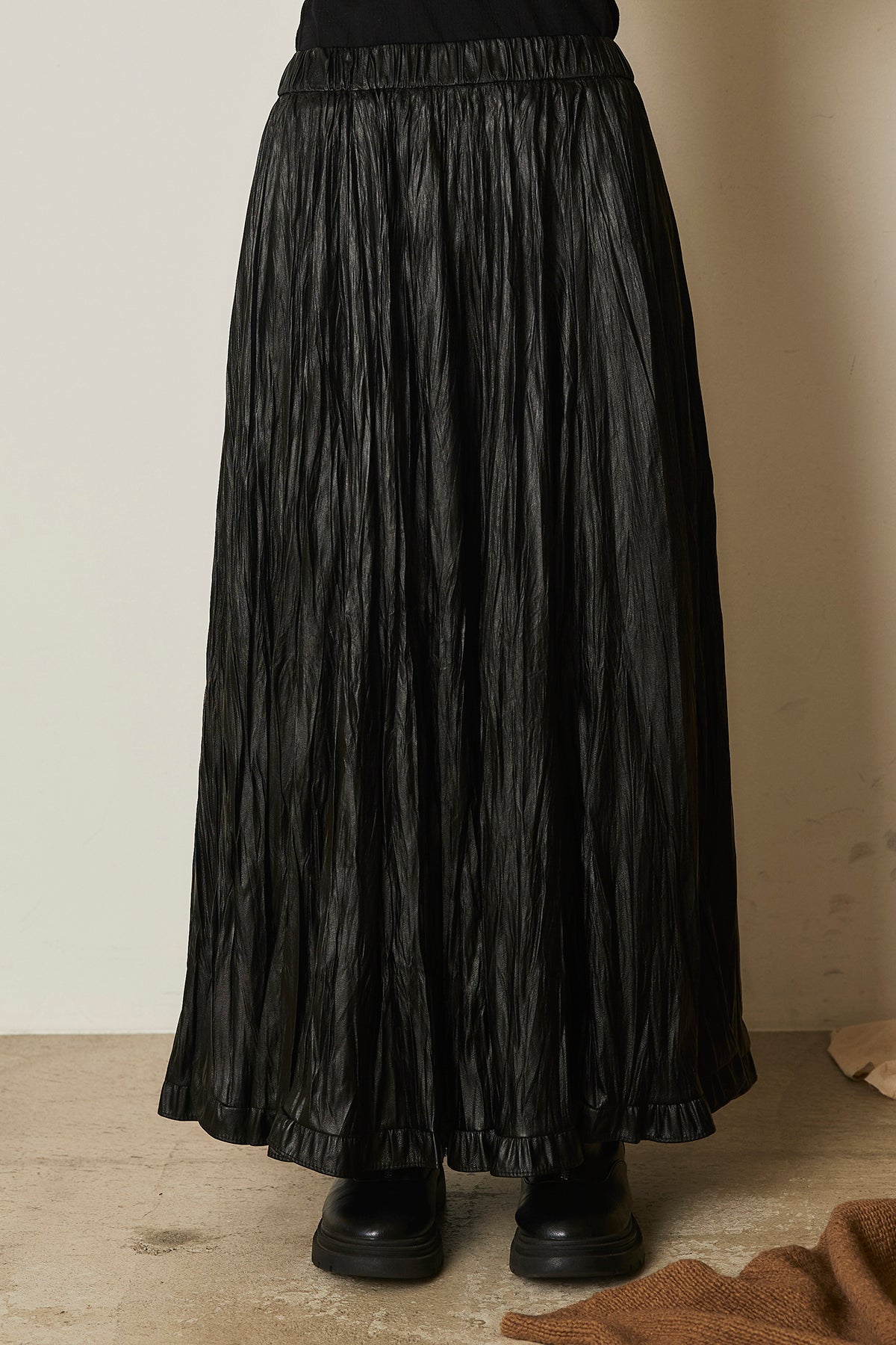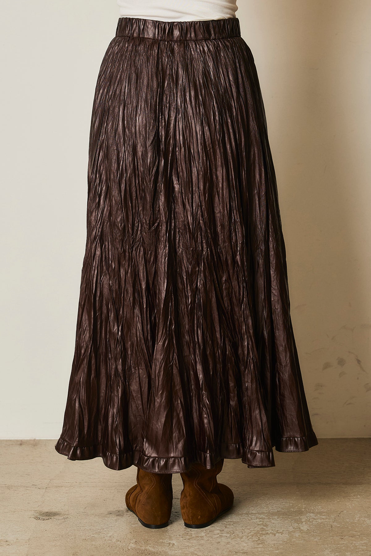 光沢感のあるサテン生地にワッシャー加工を施し、程よいシワ感で抜け感をプラスしたスカート。 動くたびに揺れる軽やかな素材が、女性らしい華やかさを演出します。 広がりすぎないシルエットで着こなしやすく、カジュアルからキレイめまで幅広いスタイルにマッチ。 シンプルなトップスを合わせるだけで、コーディネートを格上げしてくれる一枚です。