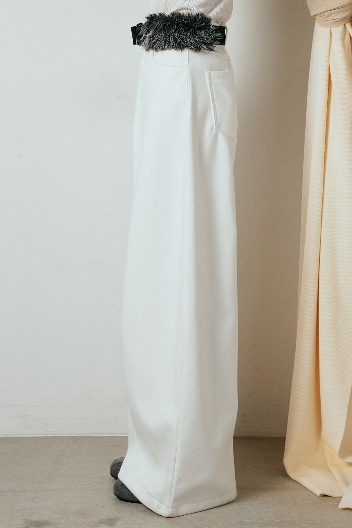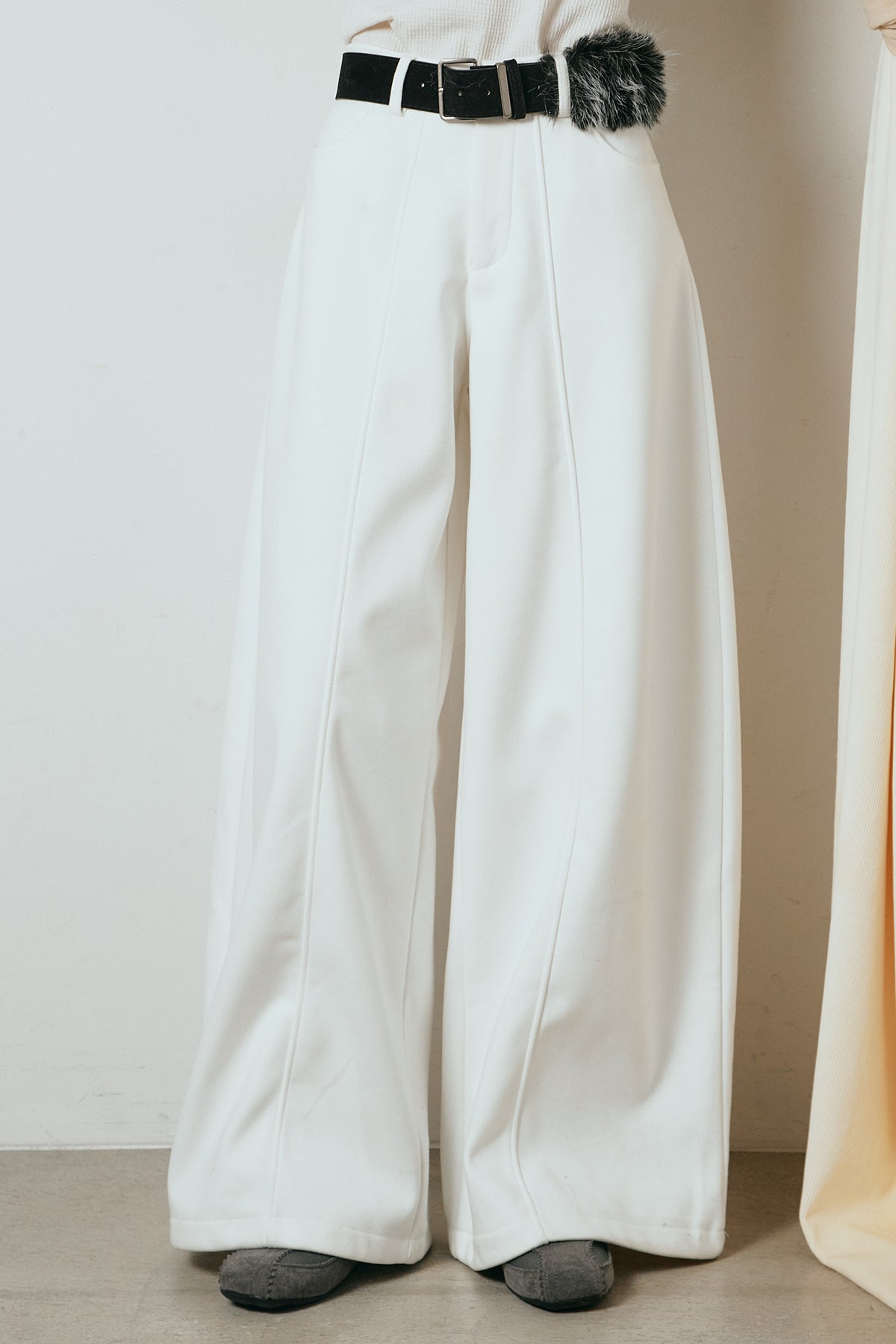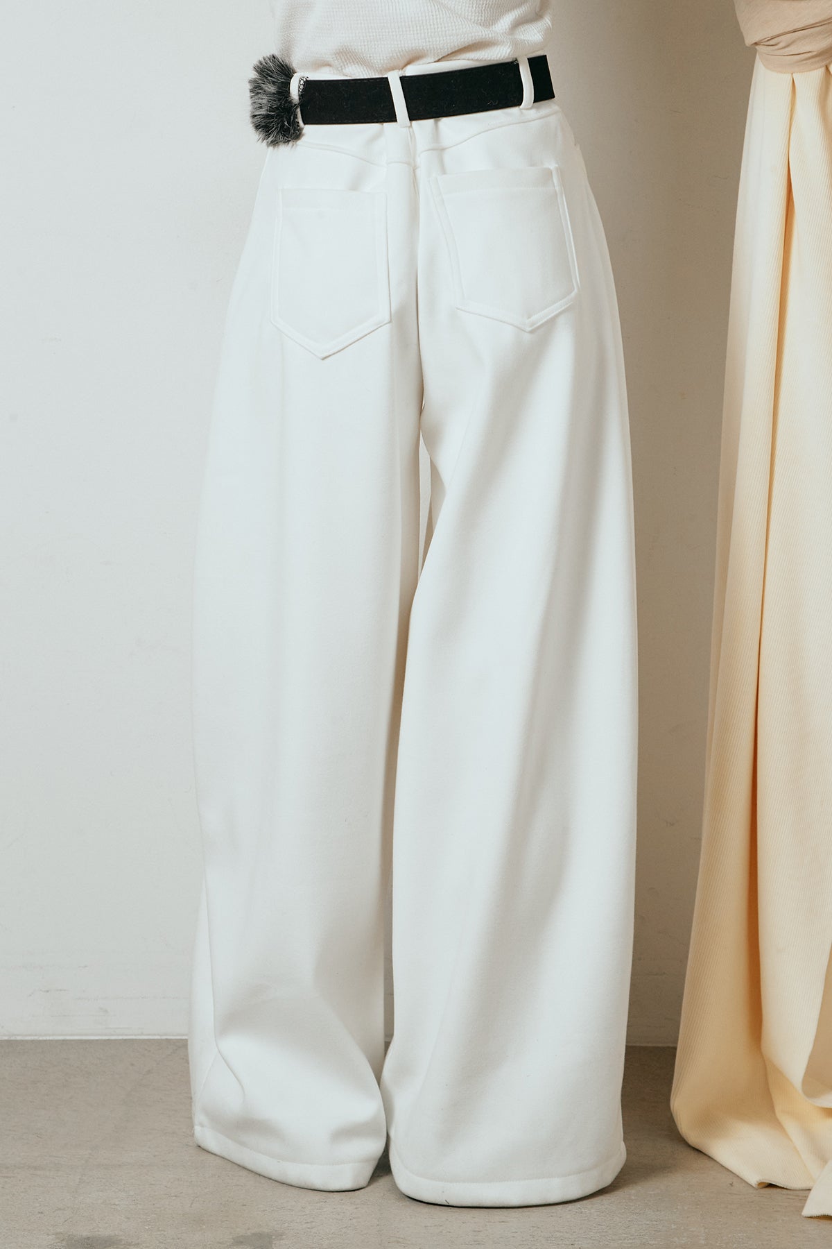 ファーをあしらったベルトがアクセントになるワイドパンツ。シンプルなシルエットに異素材のポイントを加えることで、コーディネートにさりげない遊び心をプラスします。すとんと落ちるラインで脚のラインをきれいに見せつつ、程よいゆとりで穿き心地も快適。トップスをインするだけで、スタイリングにメリハリが生まれる一本です。