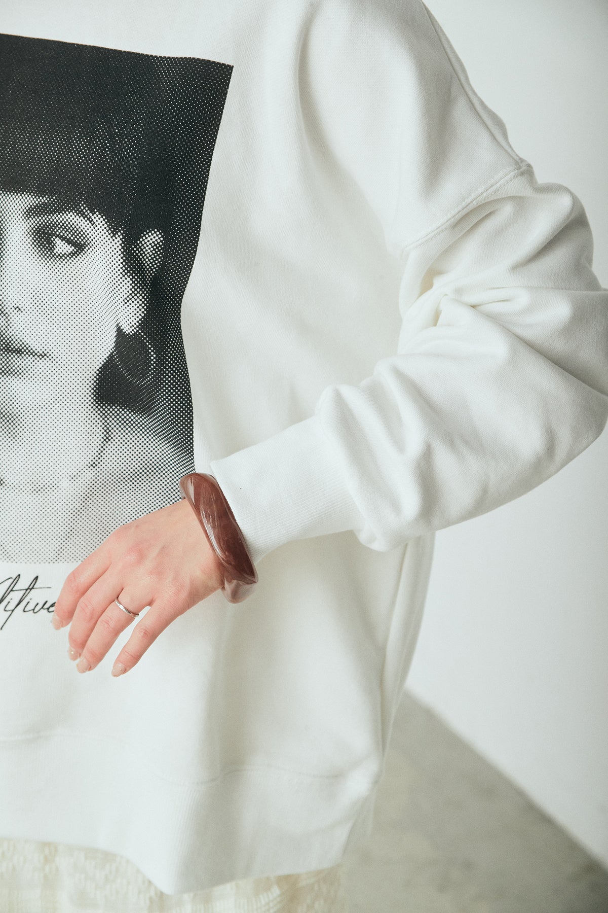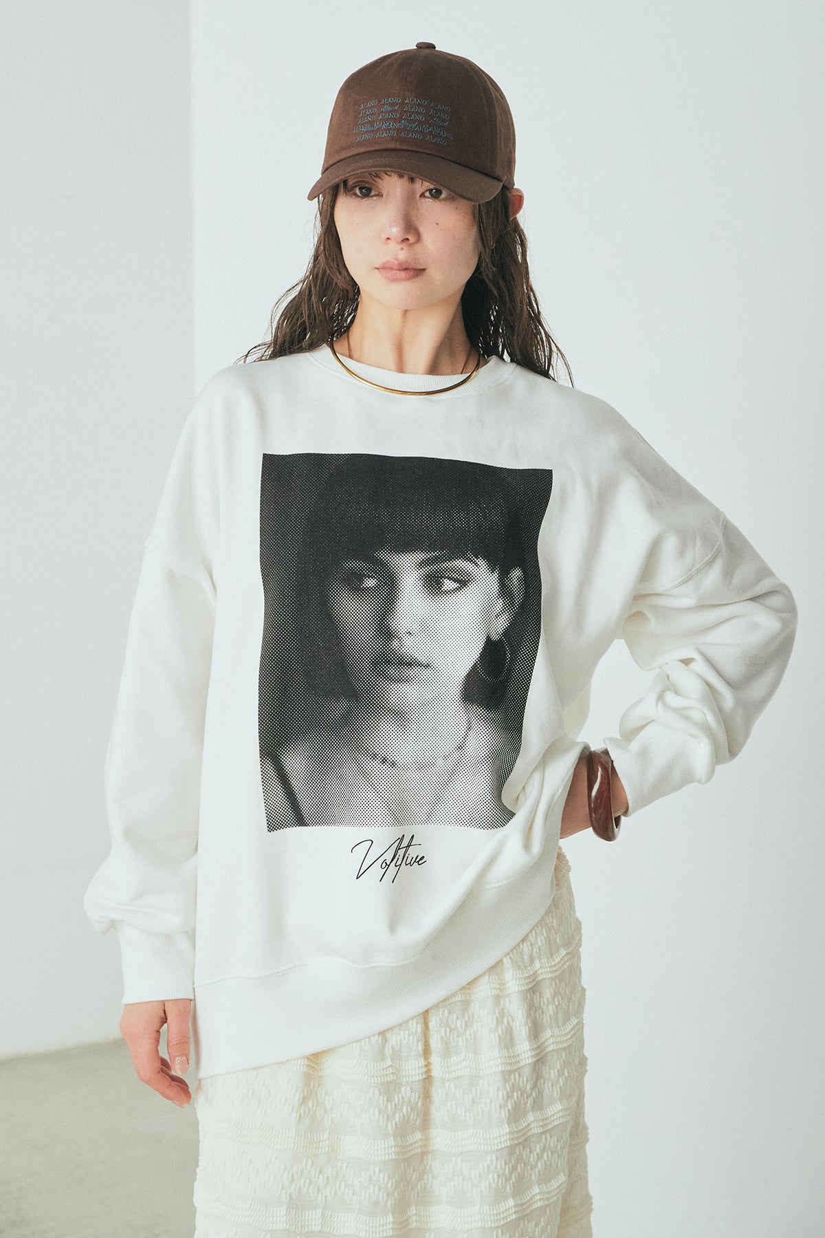 存在感のあるフォトプリントが目を惹くBIGプルオーバー。モノトーンのフェイスデザインとロゴがアクセントとなり、シンプルなスタイリングにも映える一枚です。ゆったりとしたオーバーサイズシルエットでリラックス感がありながら、程よく抜け感のあるバランスに。柔らかな裏毛素材で着心地も良く、デイリーに取り入れやすいアイテムです。パンツにもスカートにも合わせやすく、幅広いコーディネートに活躍します。