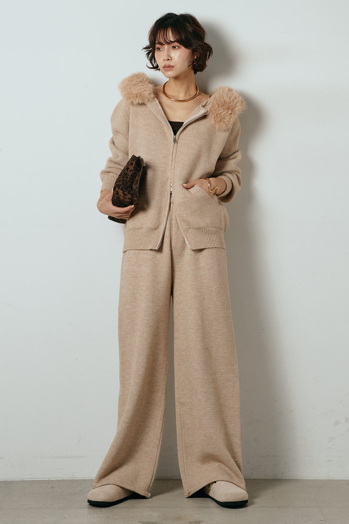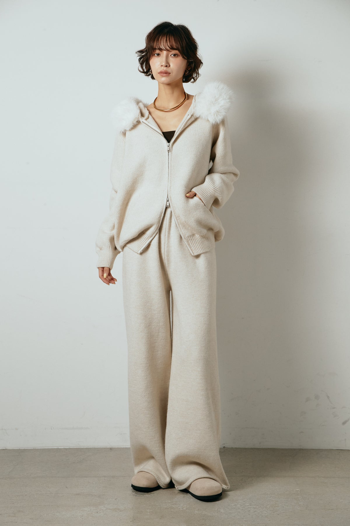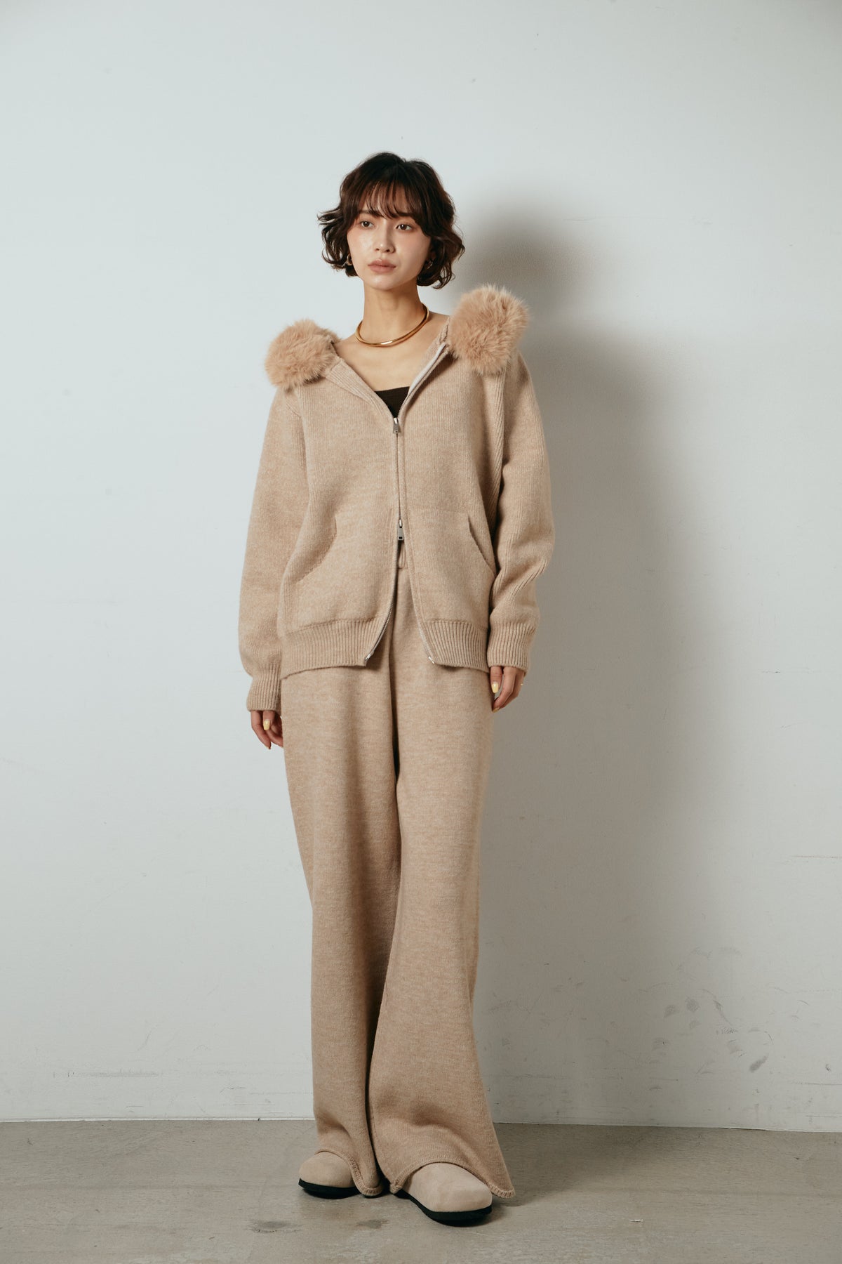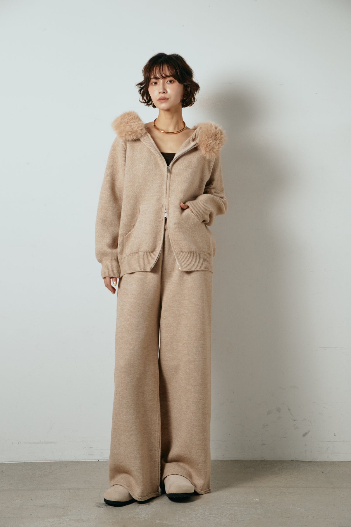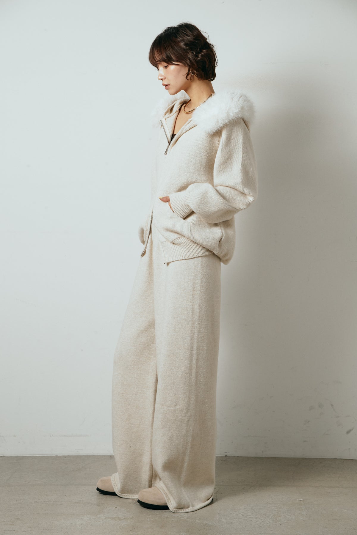 ファー付きフーディーニットSETUP1