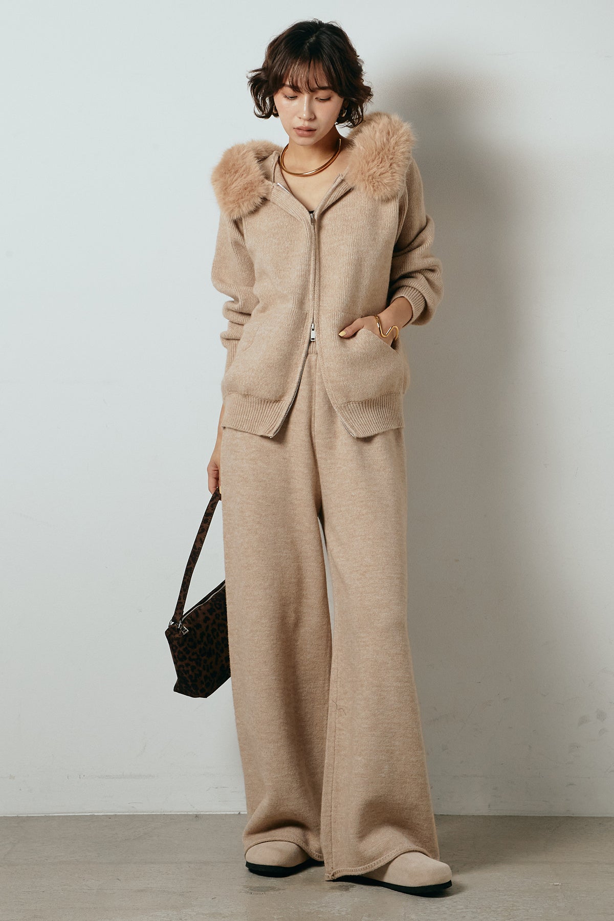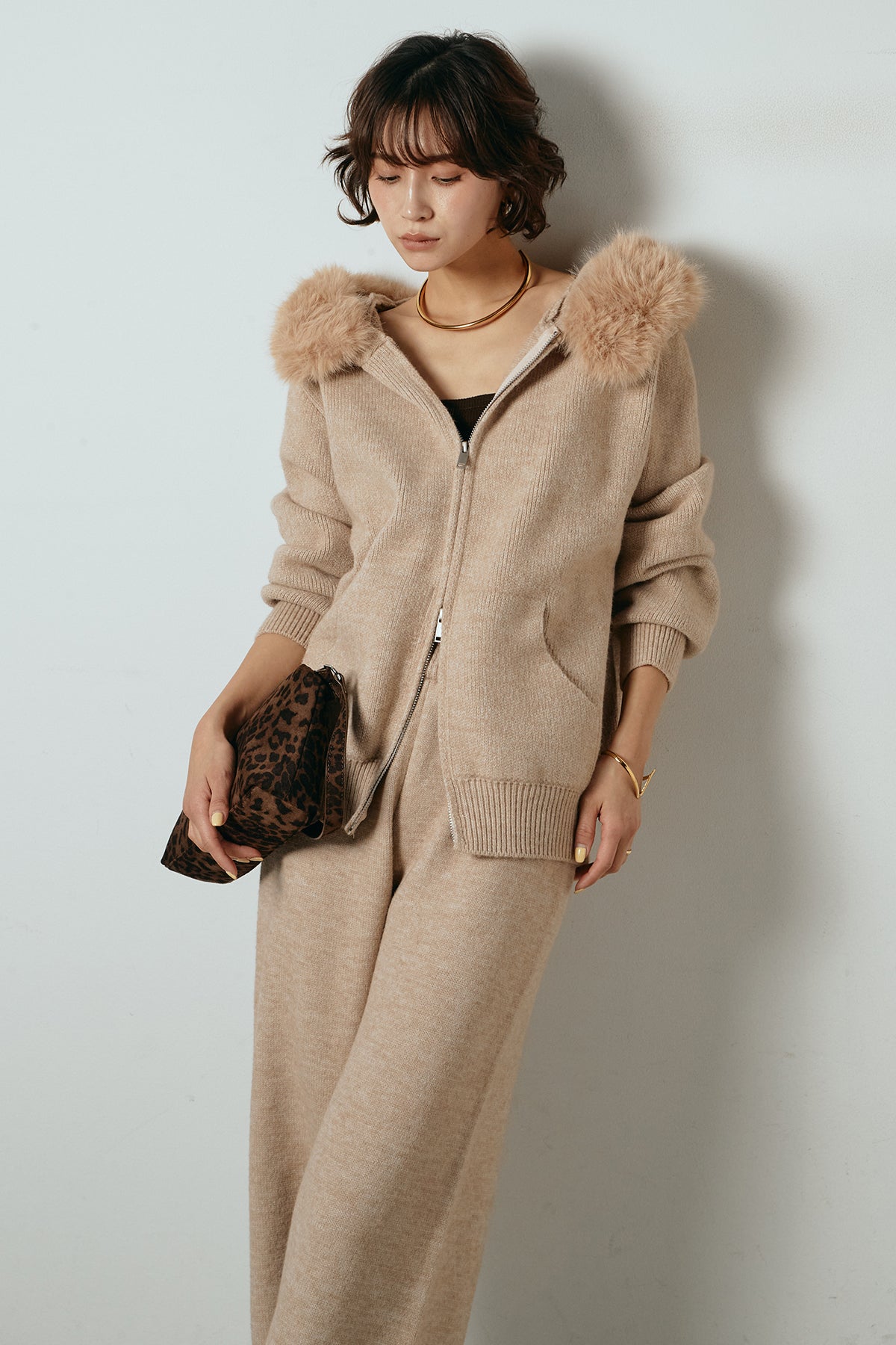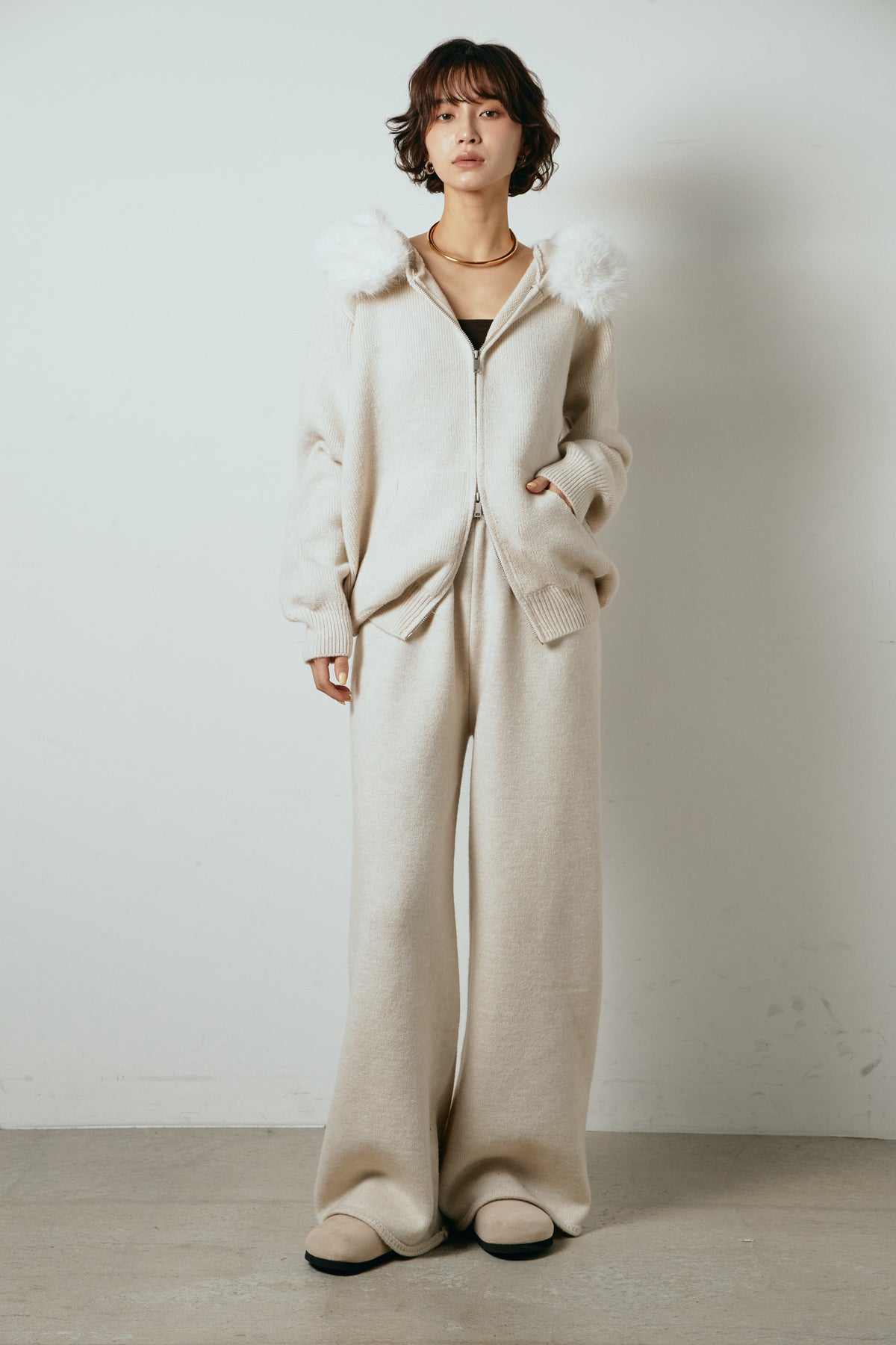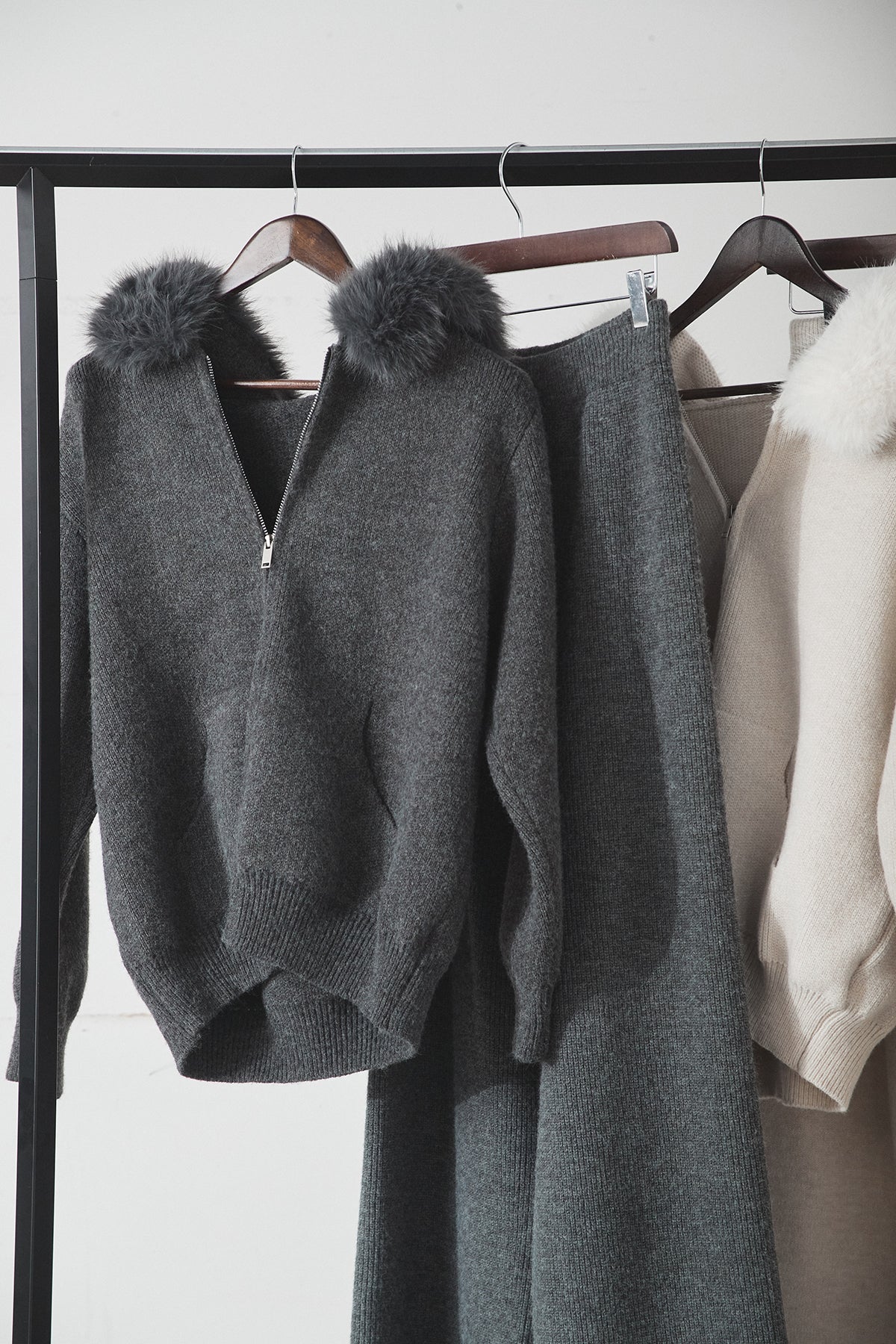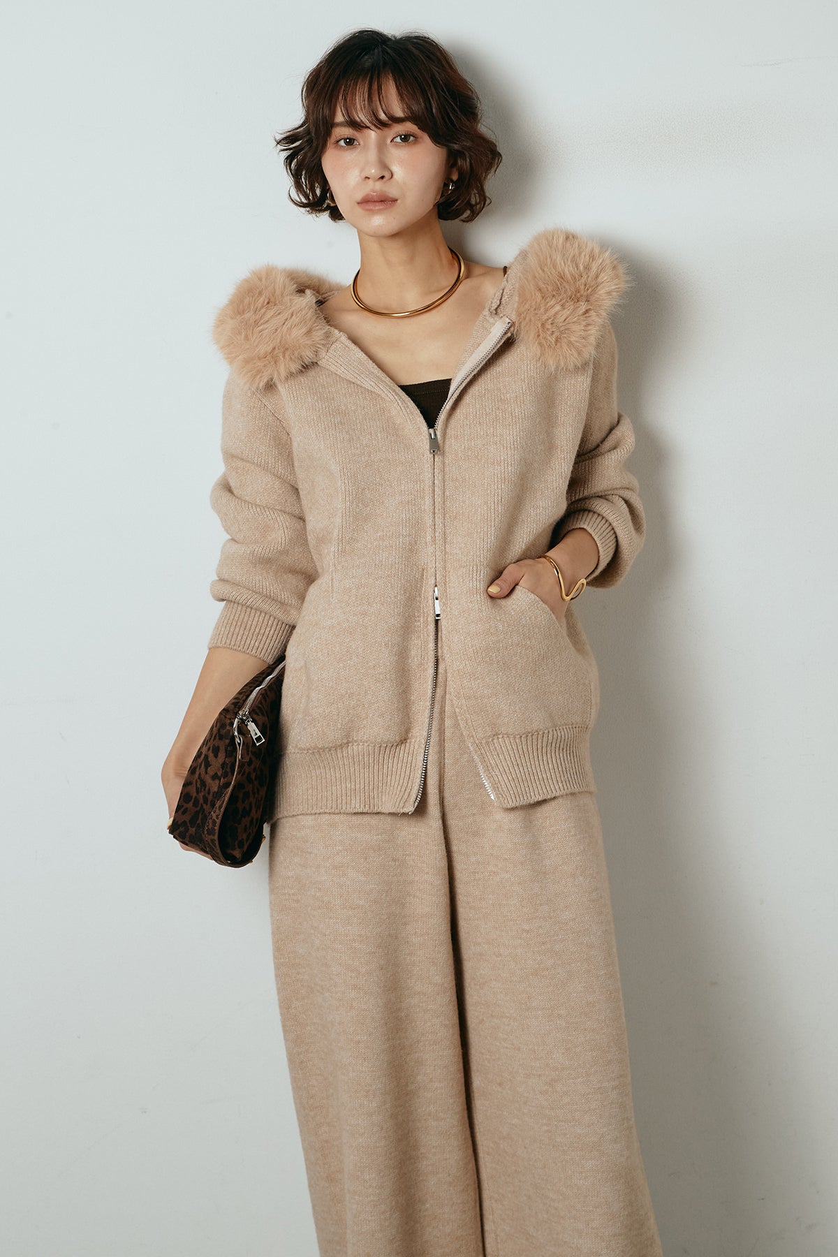 ファー付きフーディーニットSETUP1