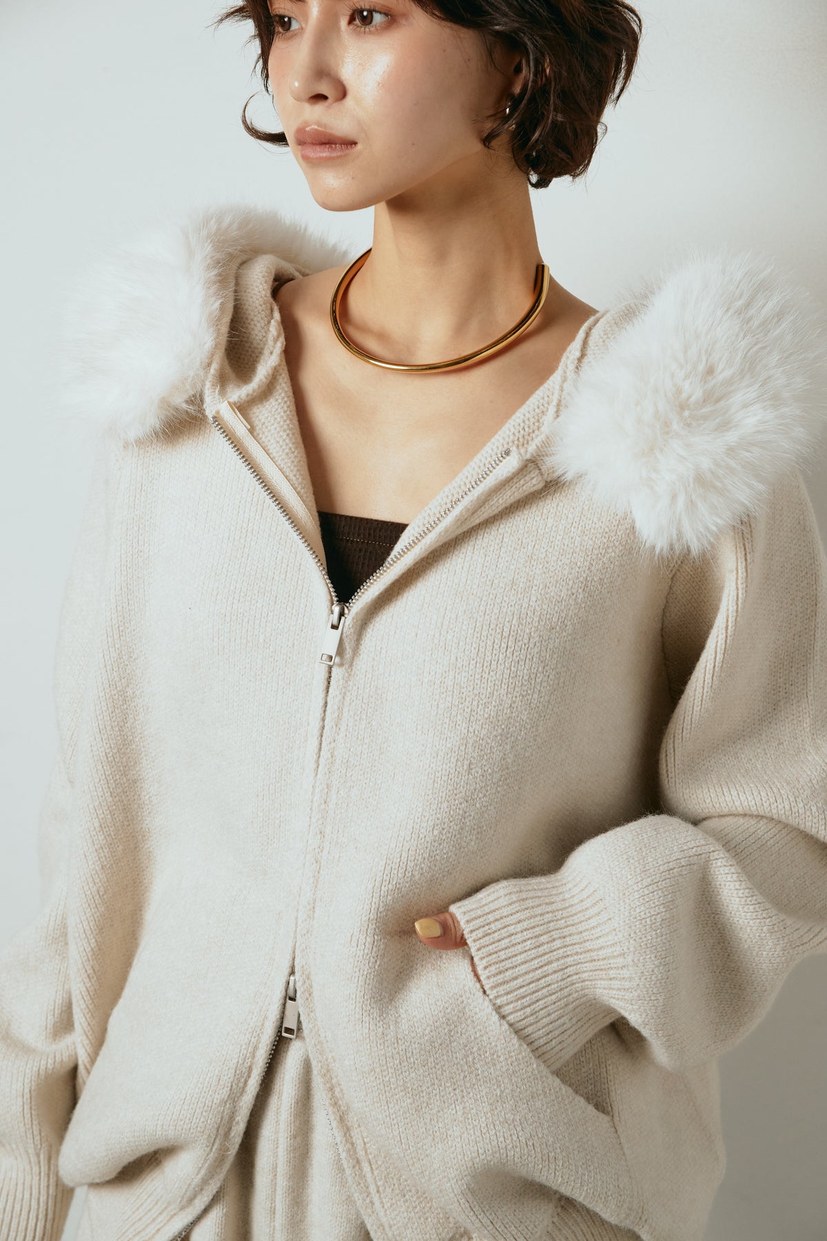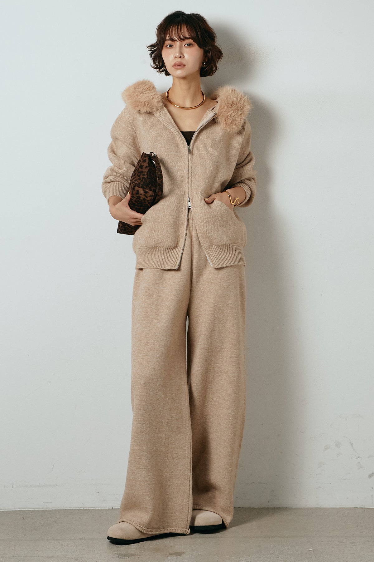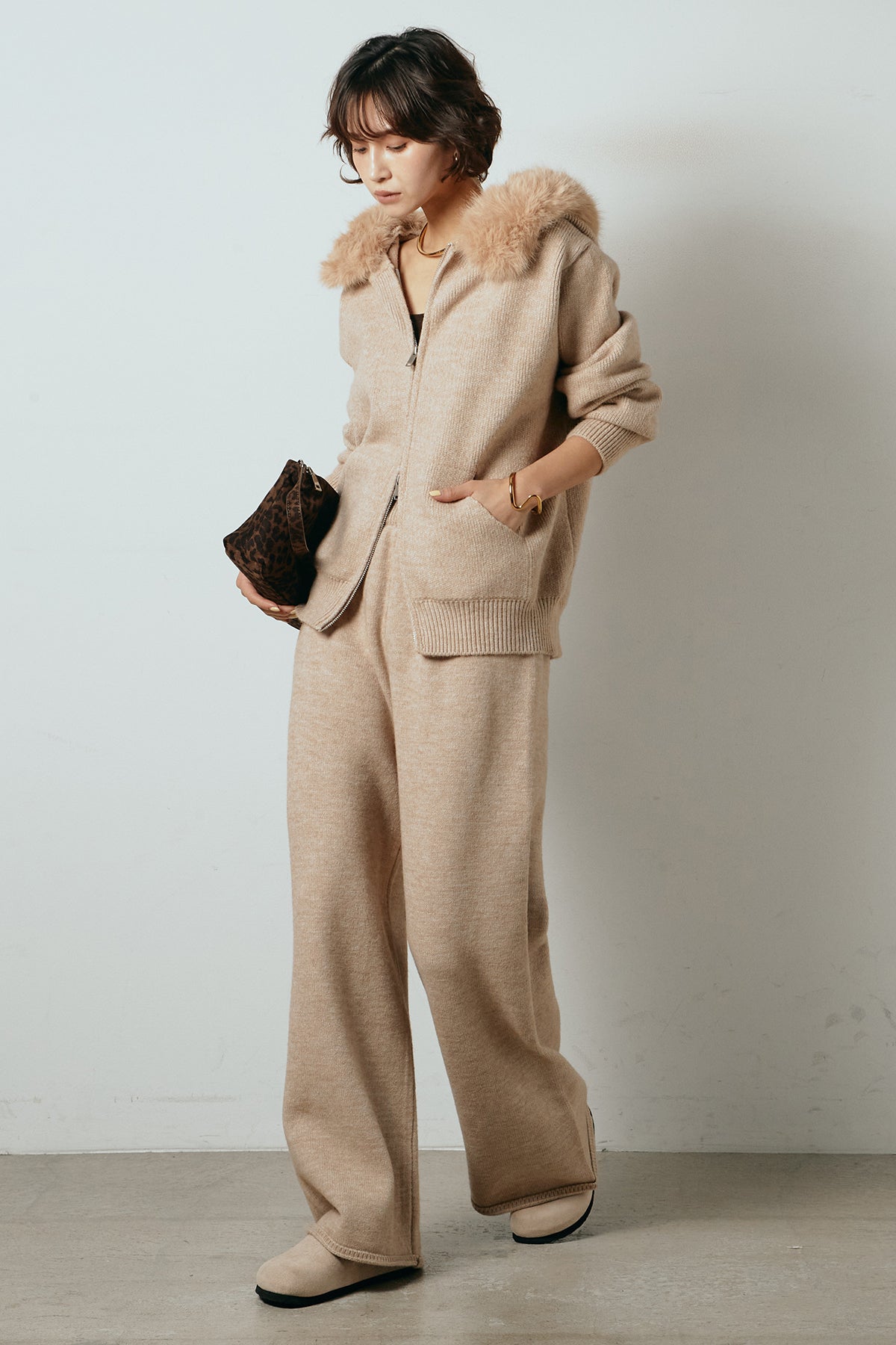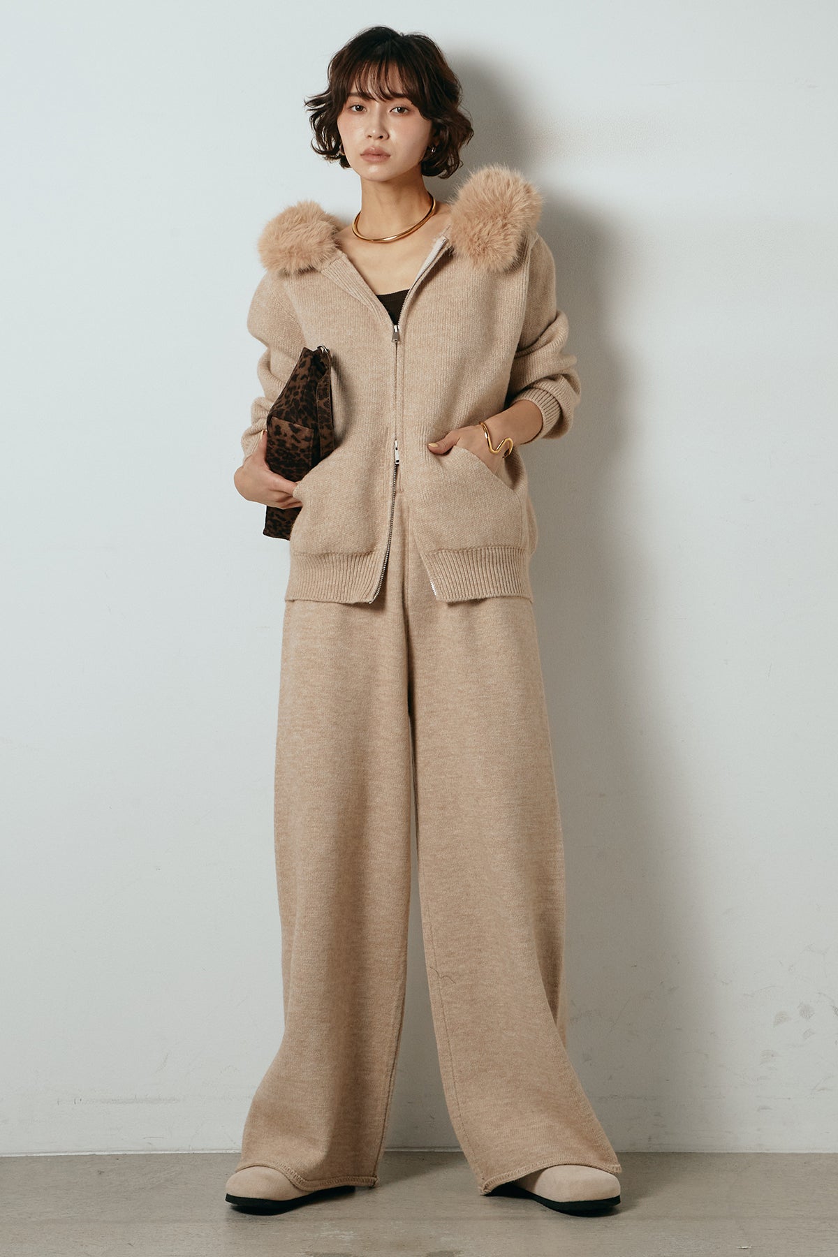 ファー付きフーディーニットSETUP1