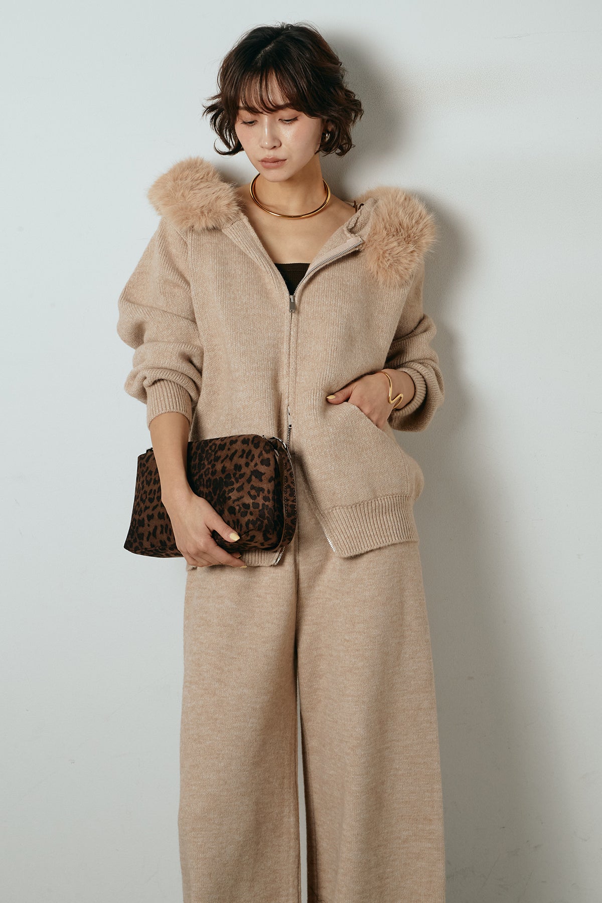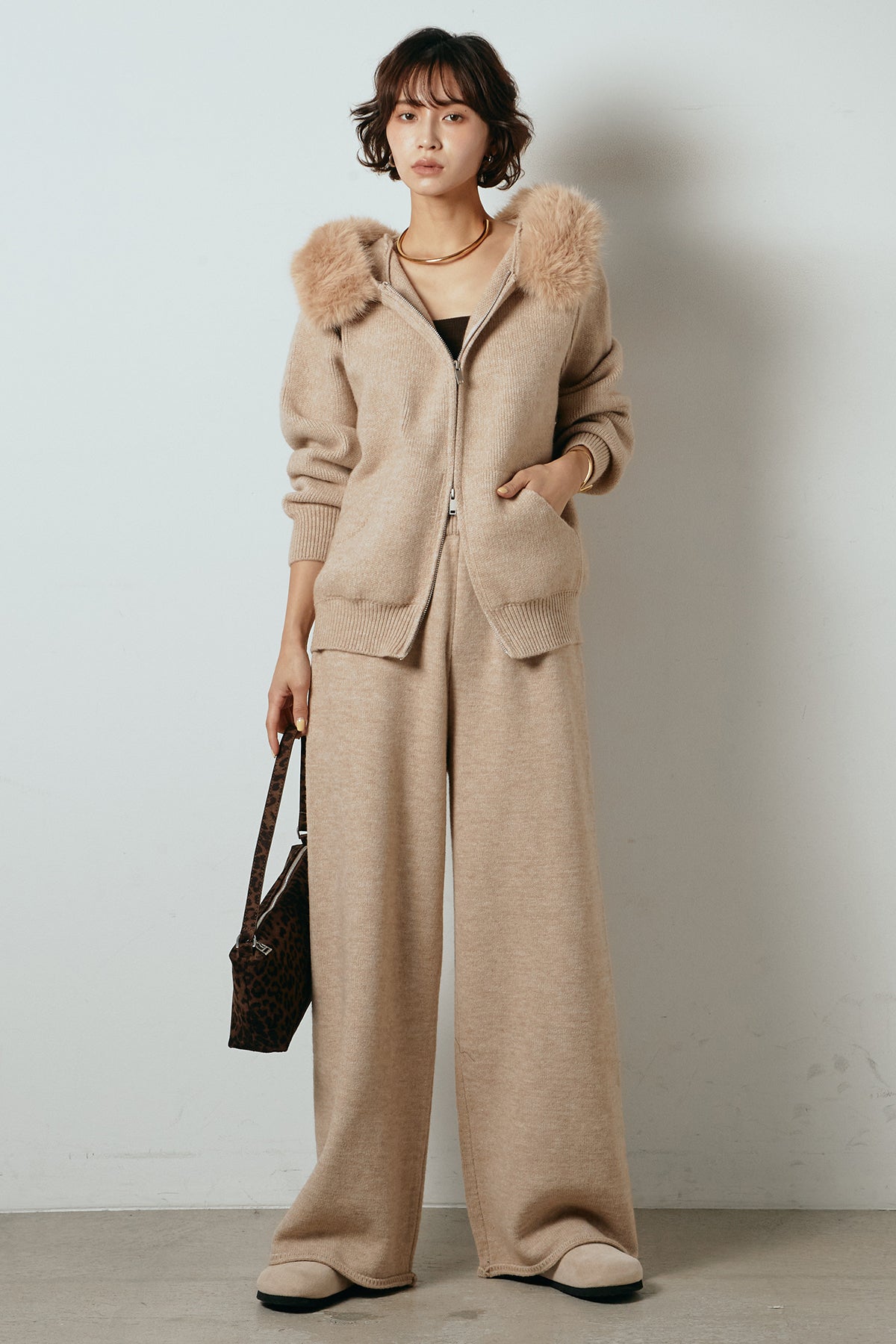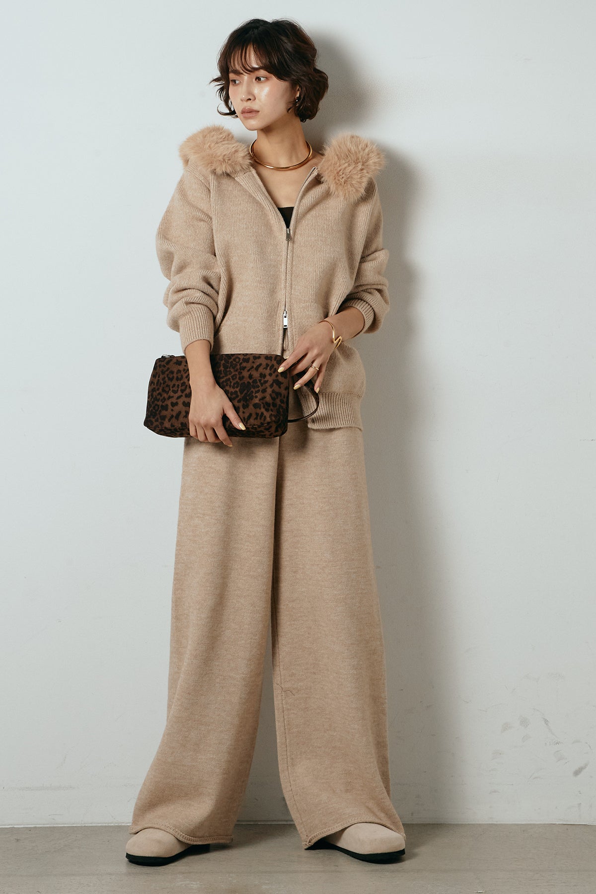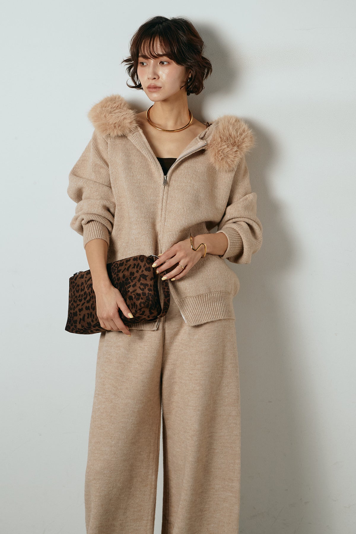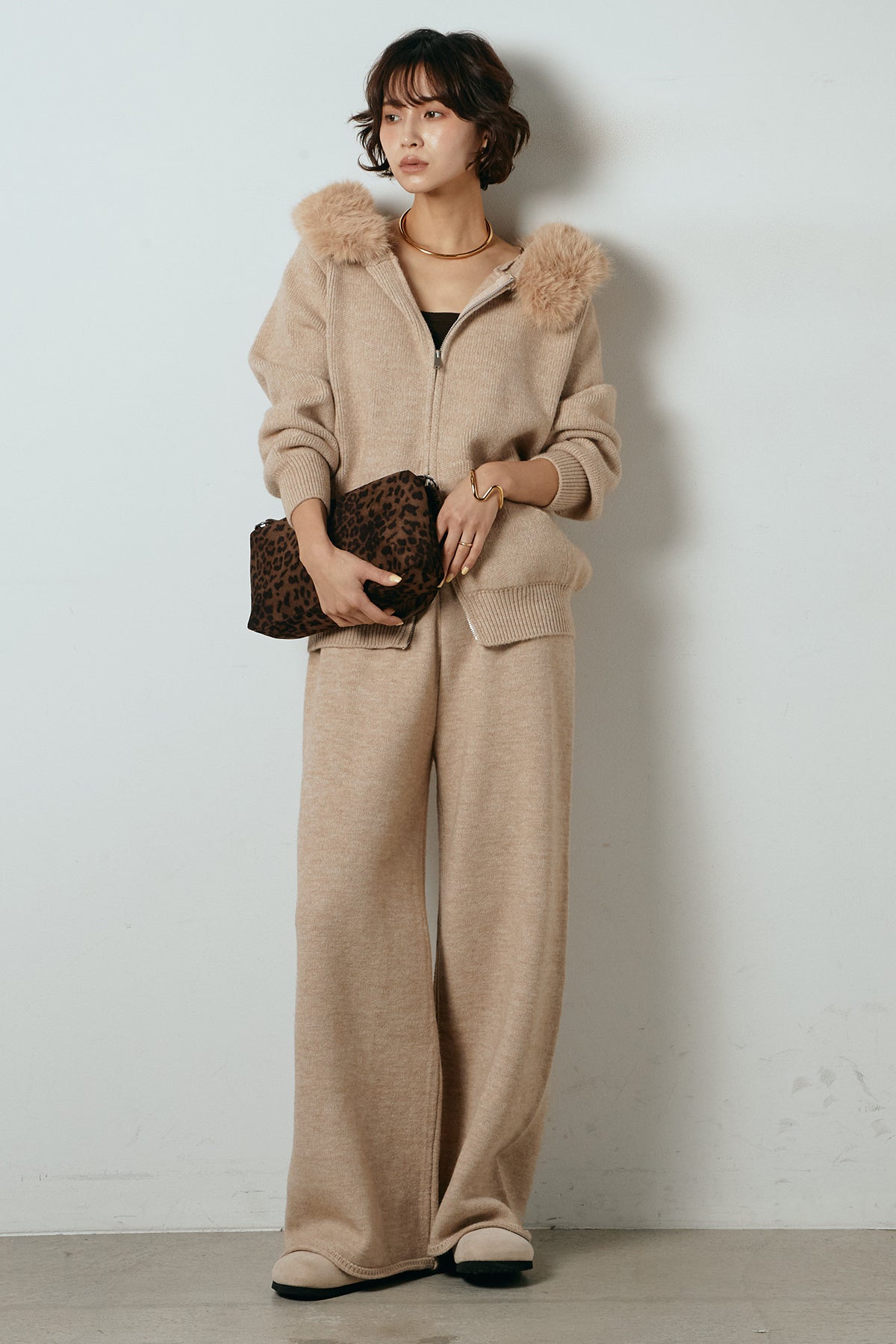 ファー付きフーディーニットSETUP1