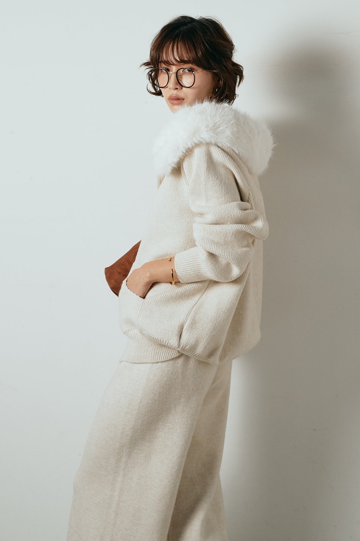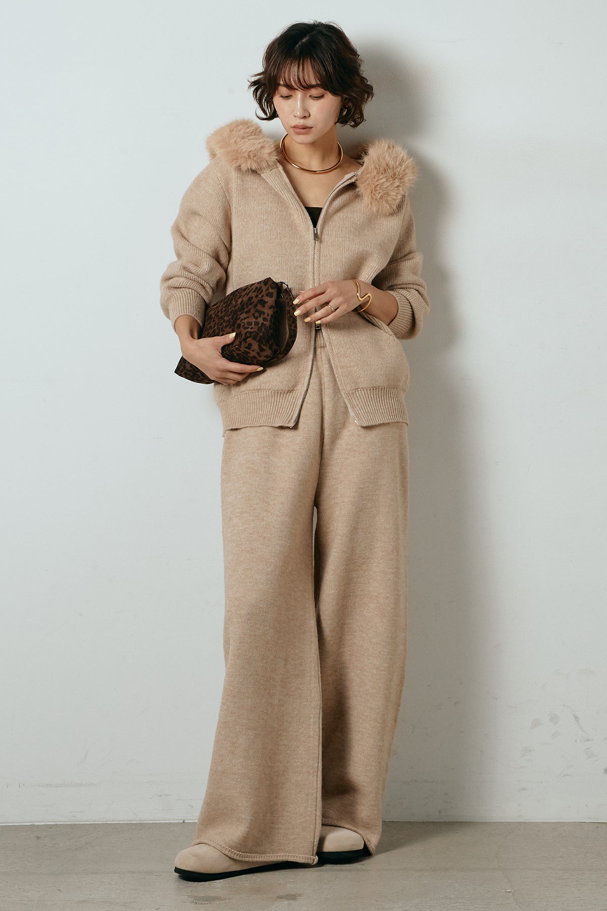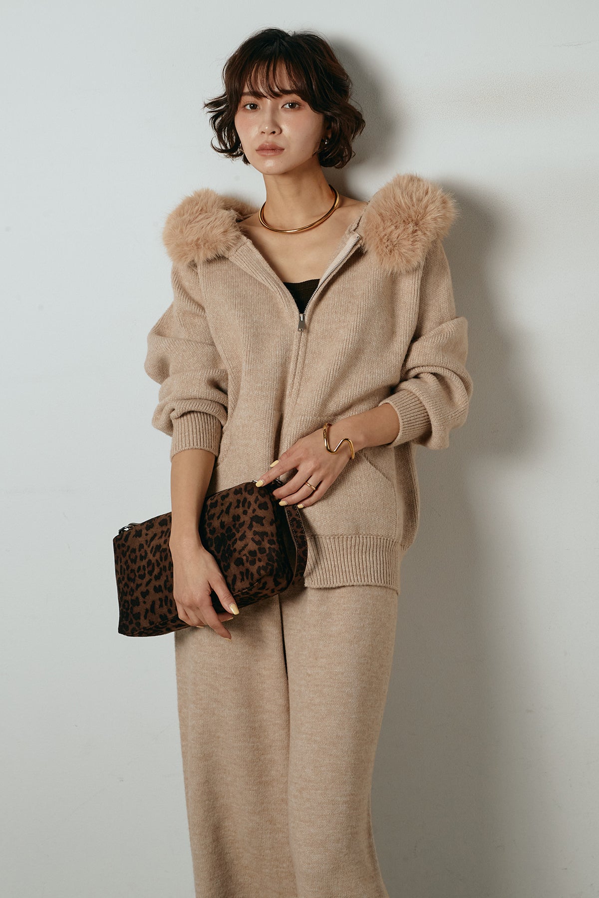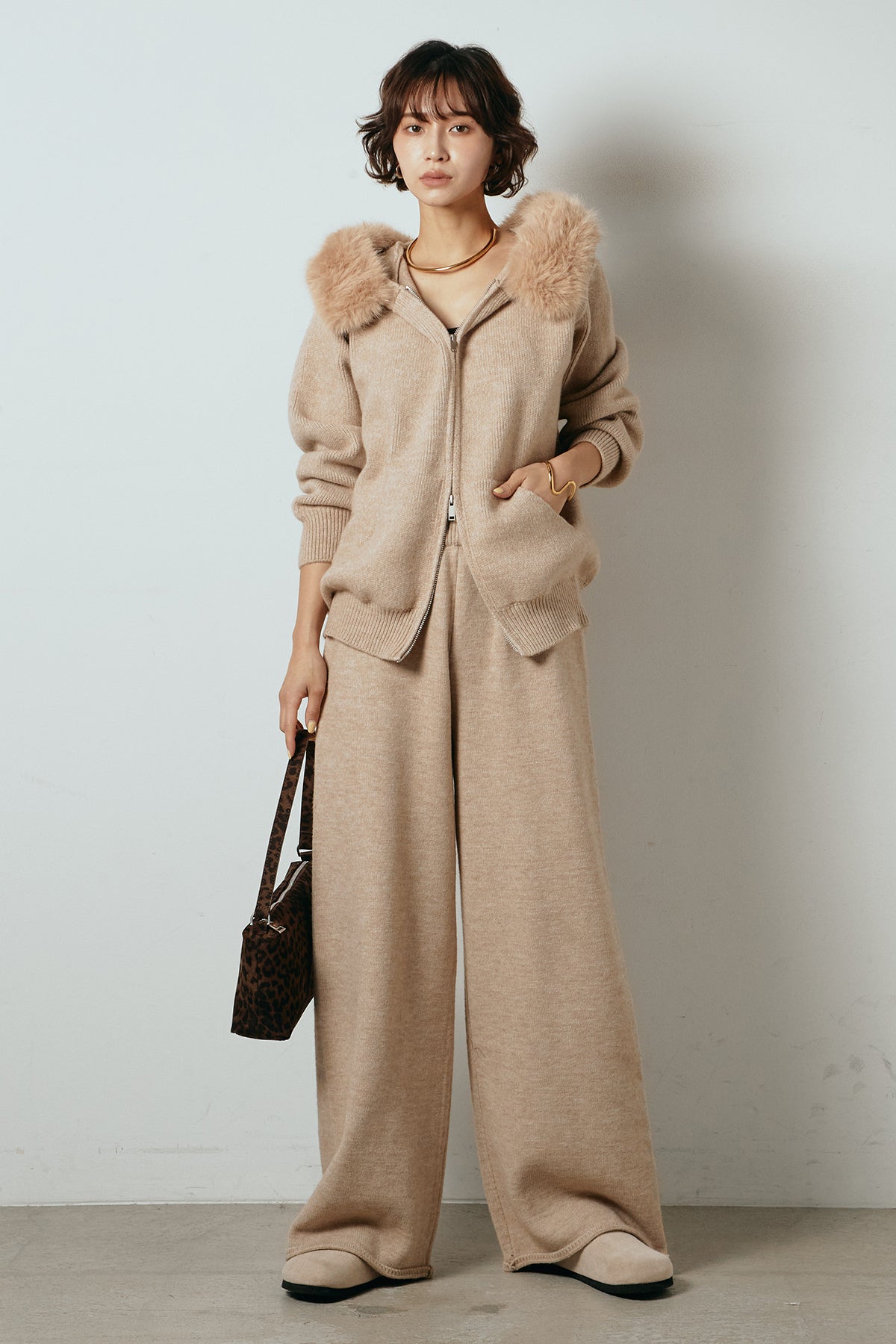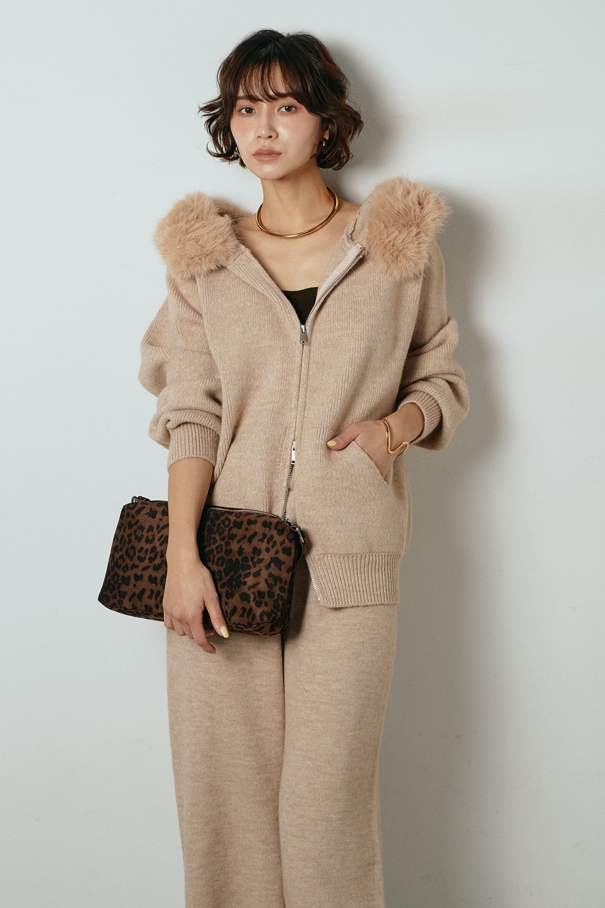 ファー付きフーディーニットSETUP1