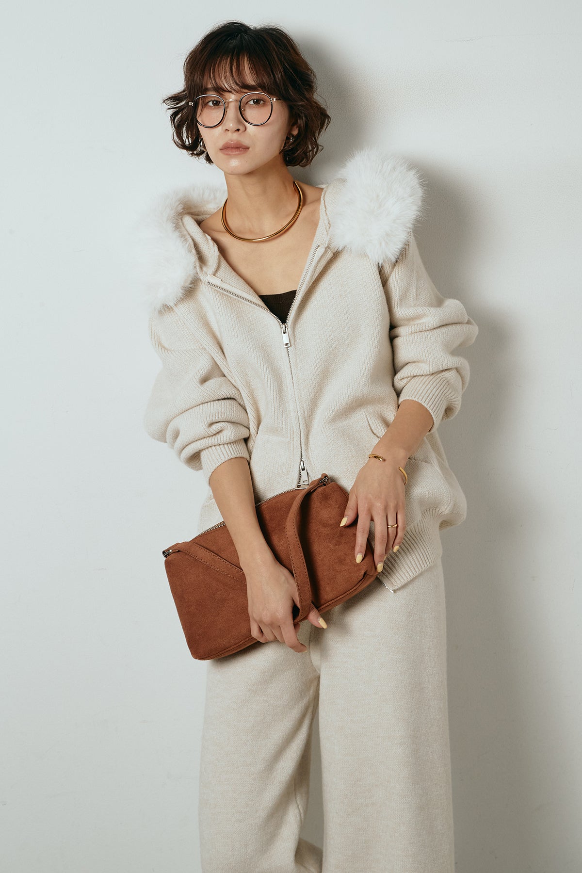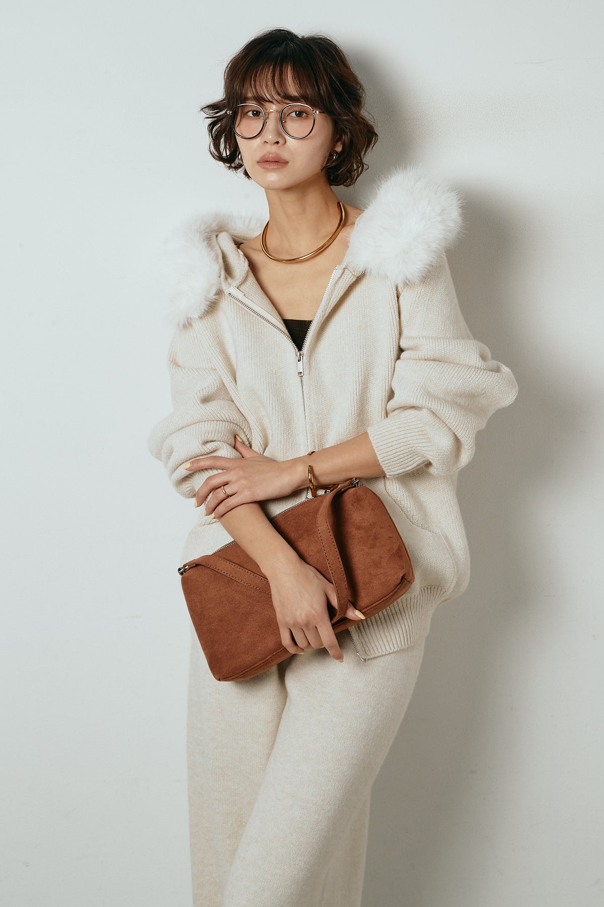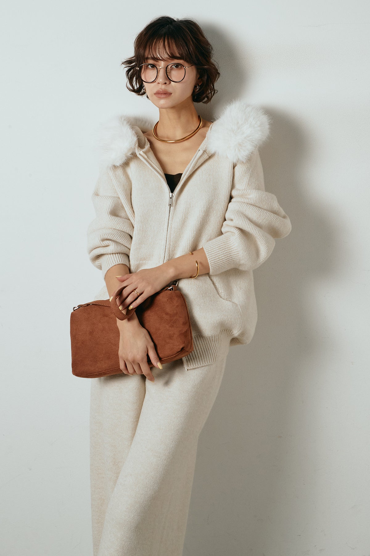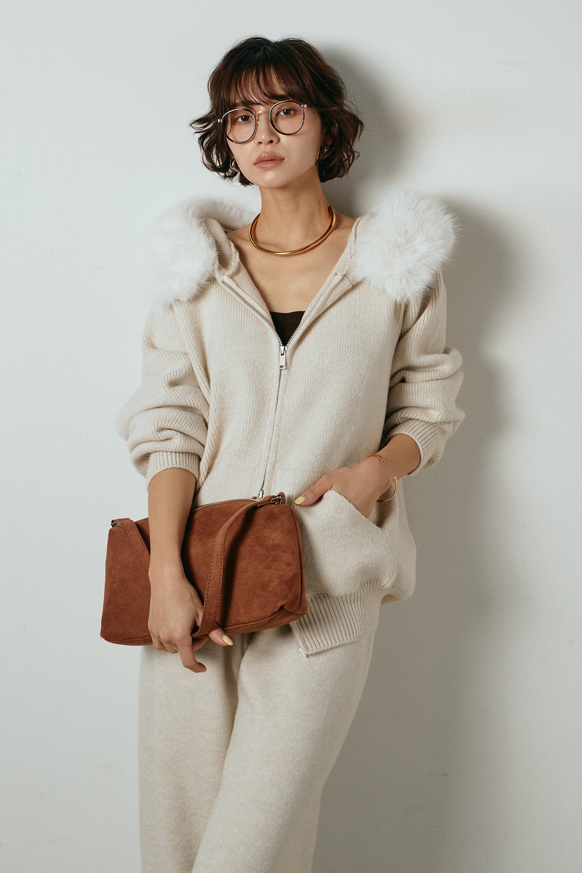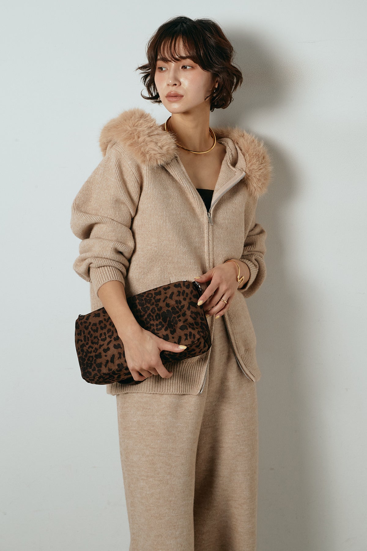 ファー付きフーディーニットSETUP1