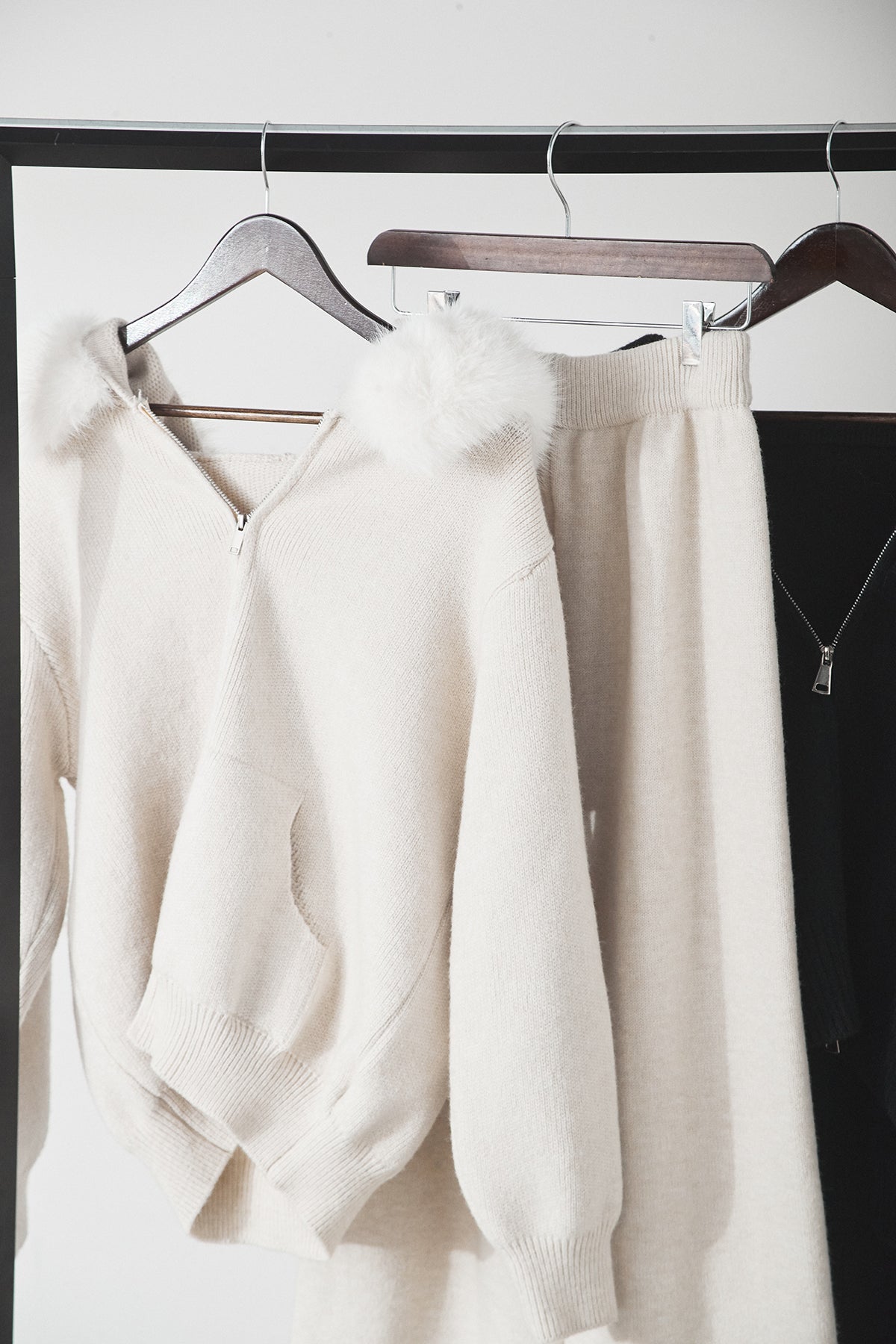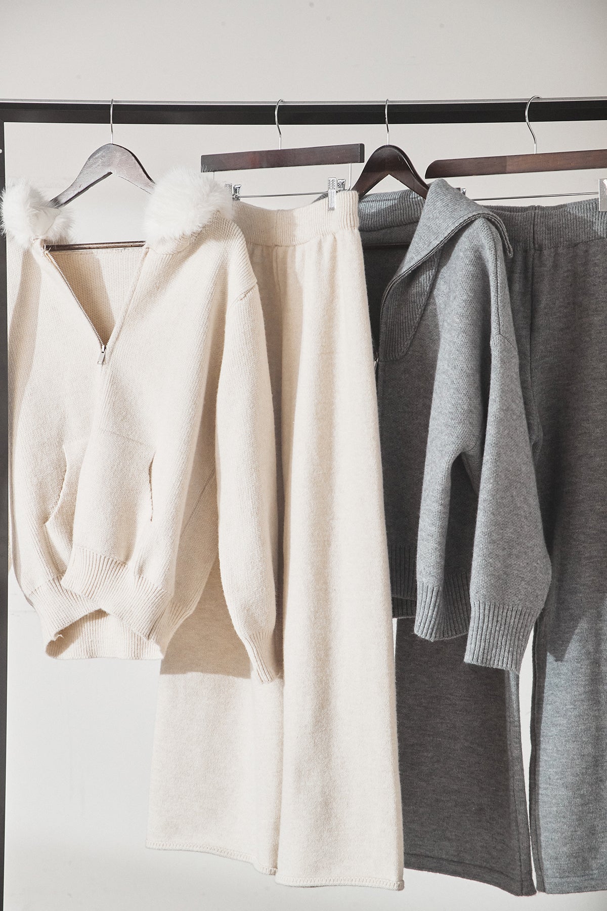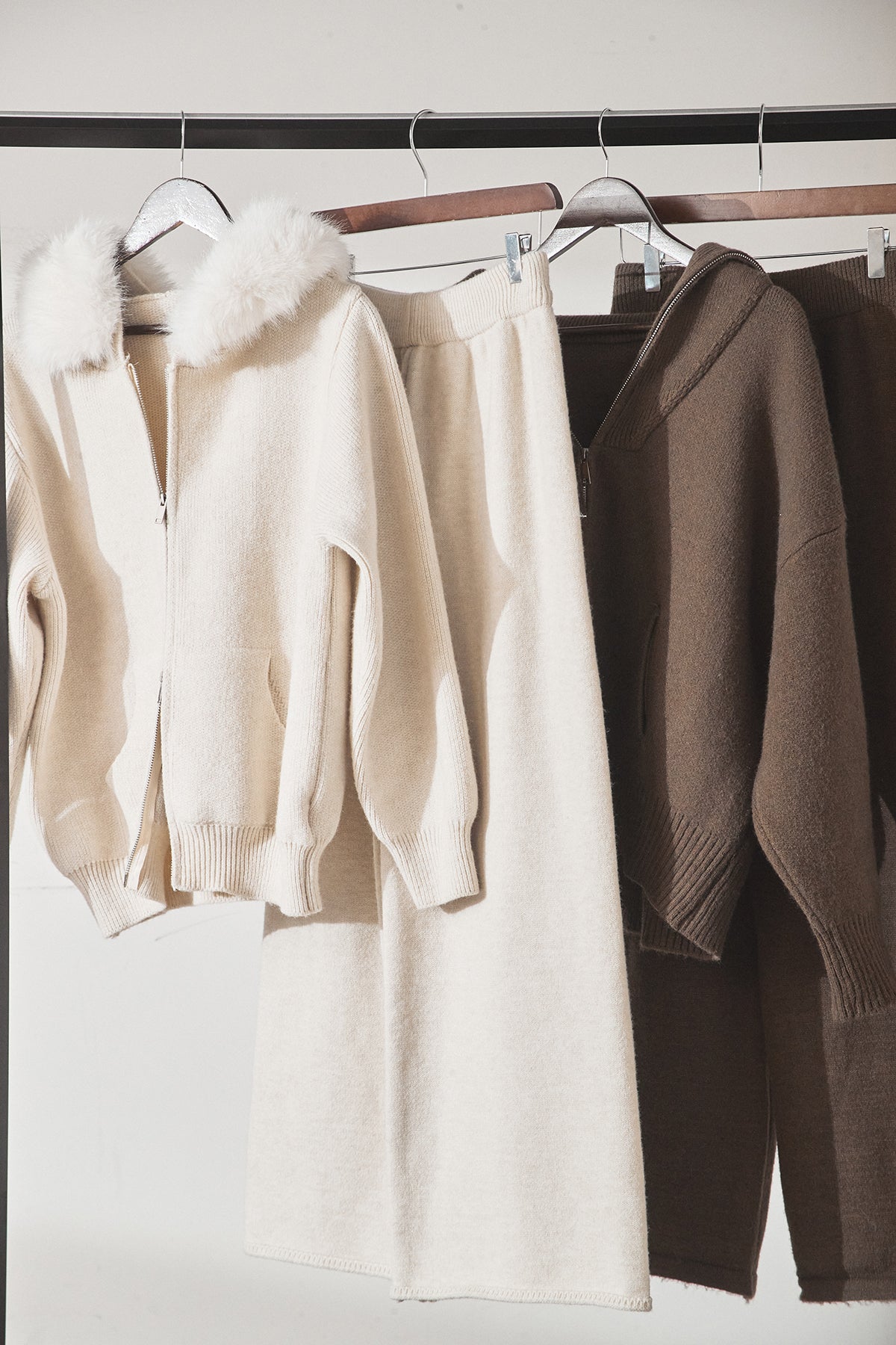 【着回しセット】[SET]ファー付きフーディーニットSETUP+ビッグカラーダブルジップニットSETUP(2set)
