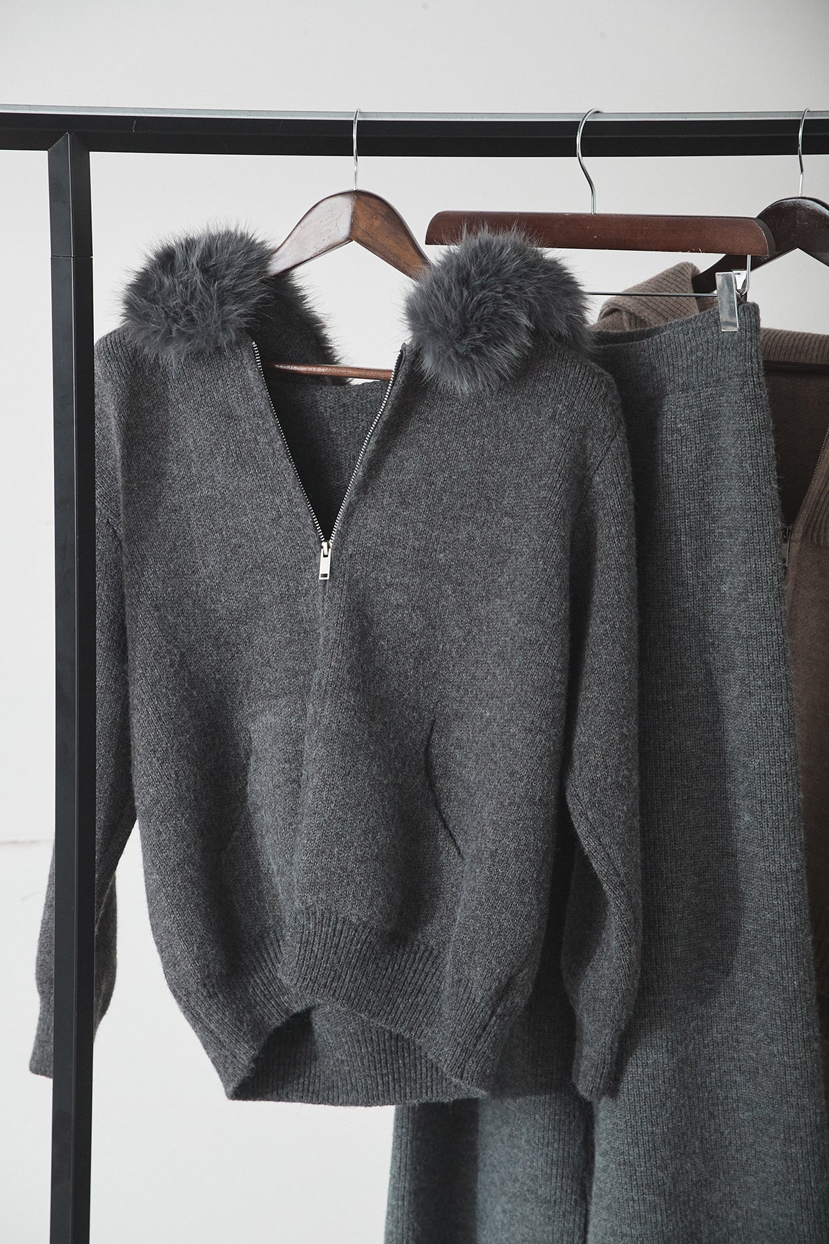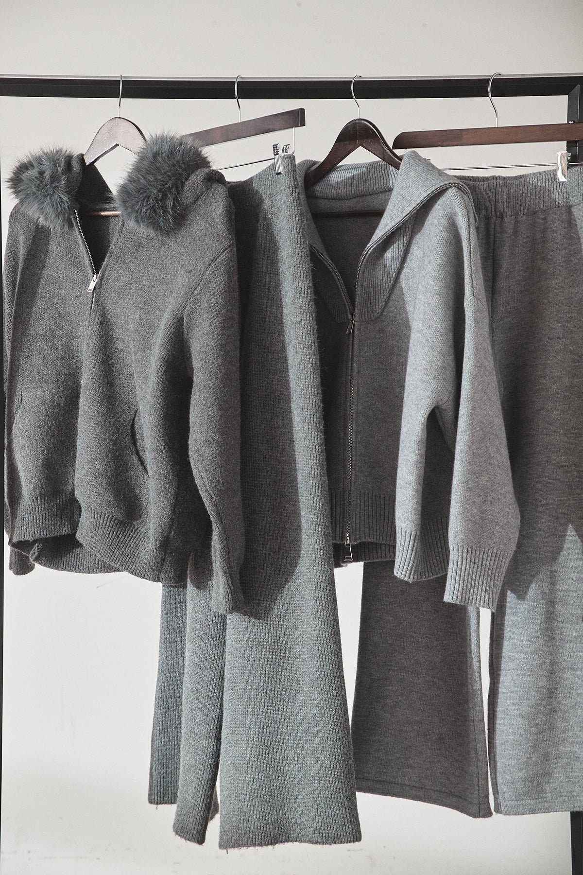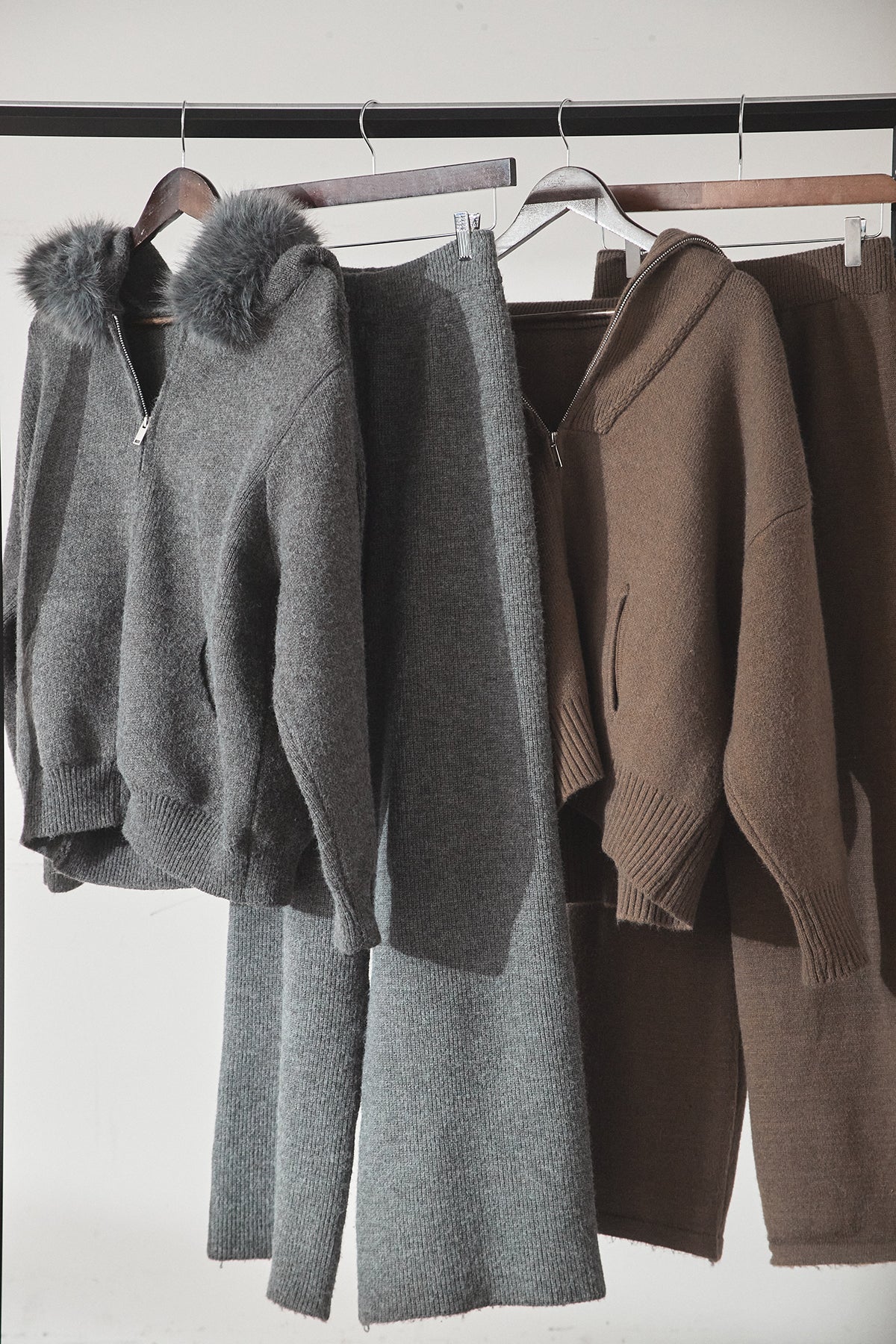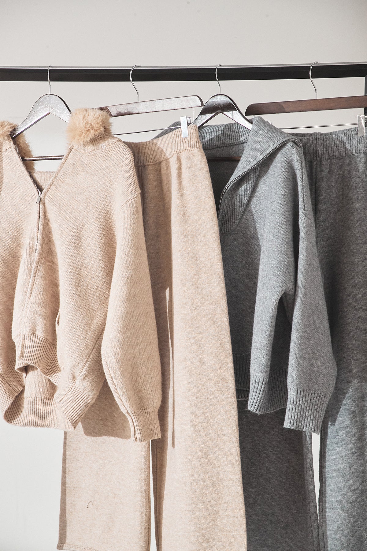 【着回しセット】[SET]ファー付きフーディーニットSETUP+ビッグカラーダブルジップニットSETUP(2set)