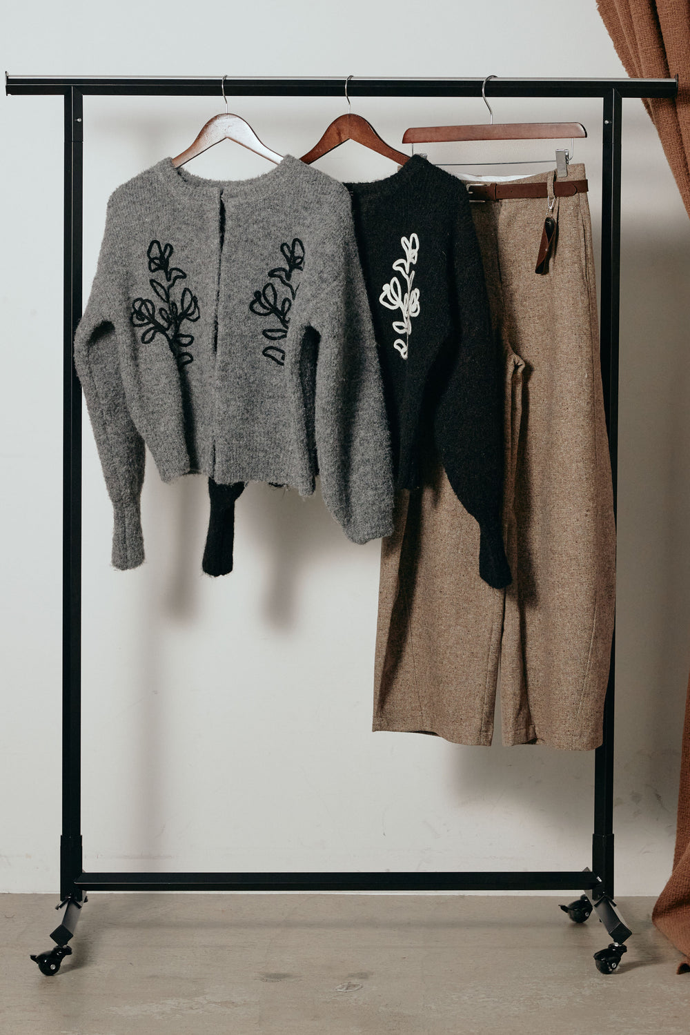 【着回しセット】[SET]テープ刺繍ニットカーディガン+テープ刺繍ニットカーディガン+ベルト付きネップツイードカーブパンツ(3set)