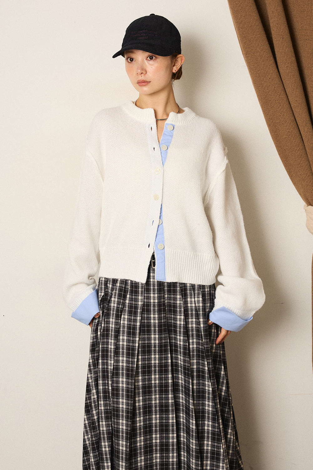 デニムレイヤード風ランダムボーダーニットプルオーバー