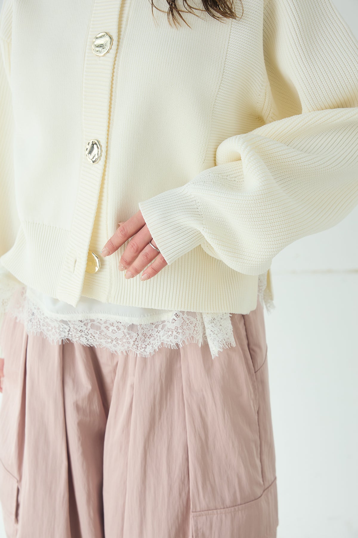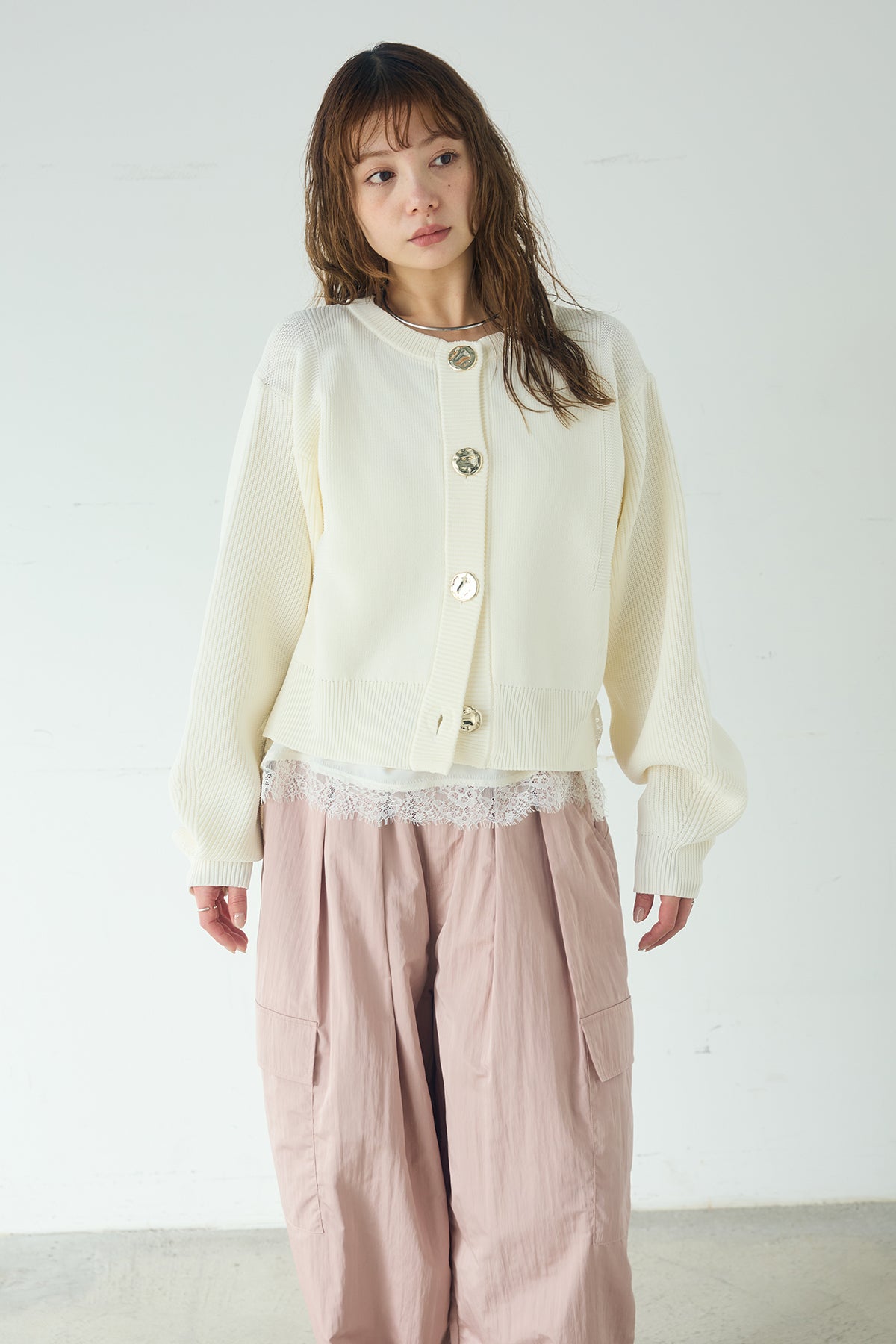 スポンディッシュBIGボタンクルーネックカーディガンを含んだコーデセット商品を探す↓
