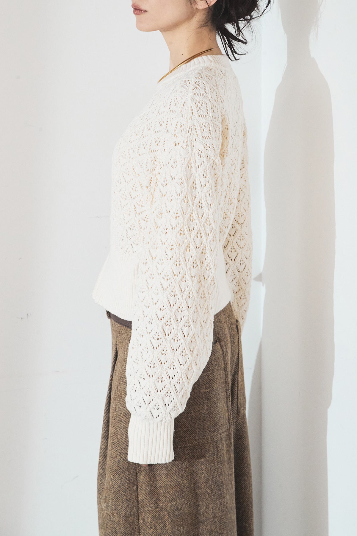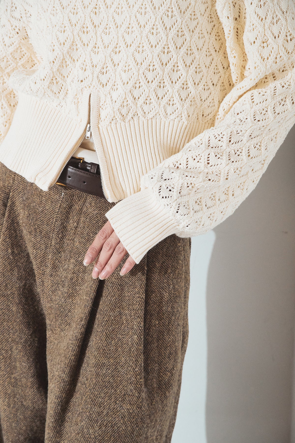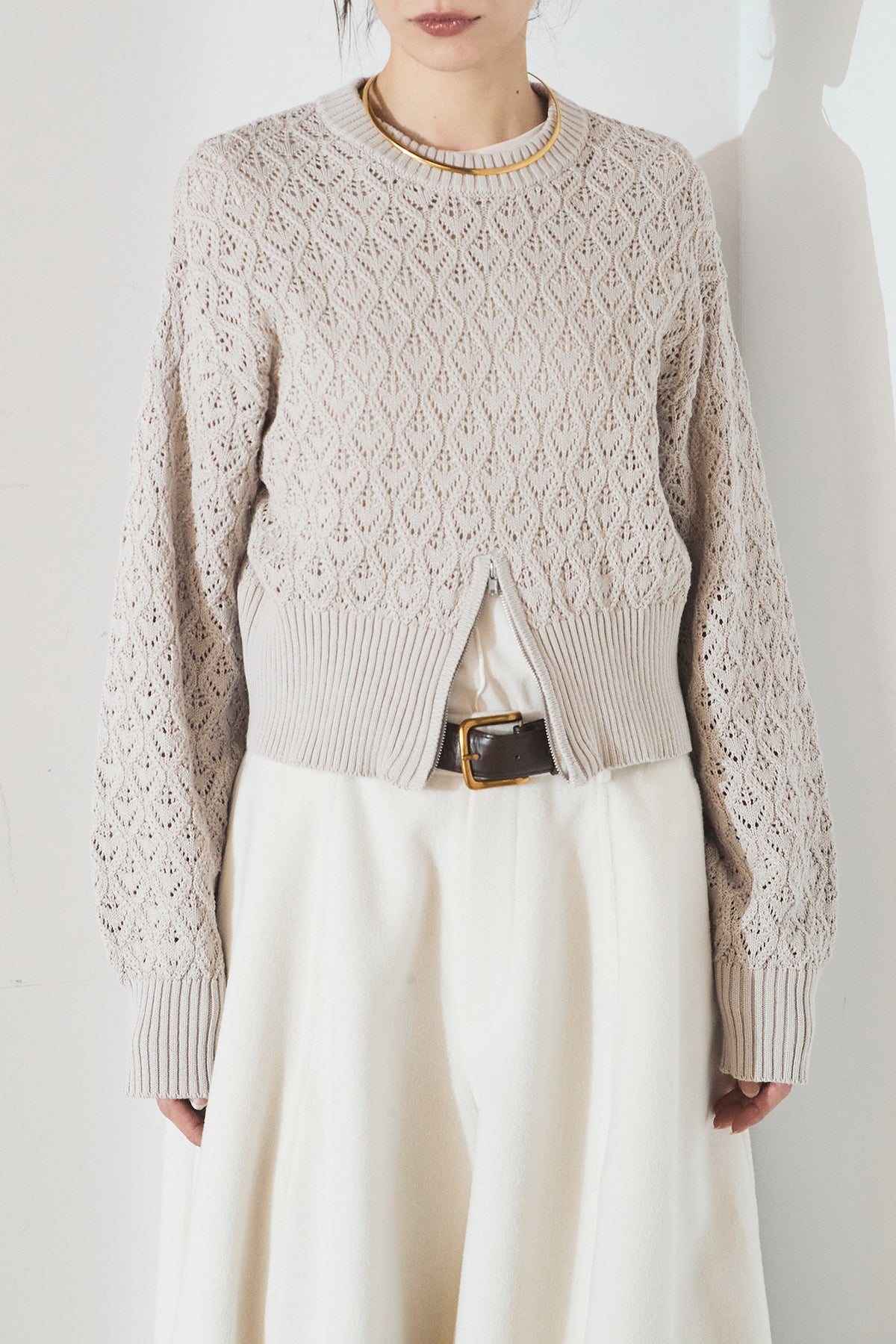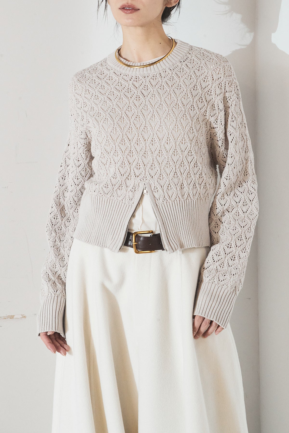 透かし編みニットジップスリットプルオーバーを含んだコーデセット商品を探す↓