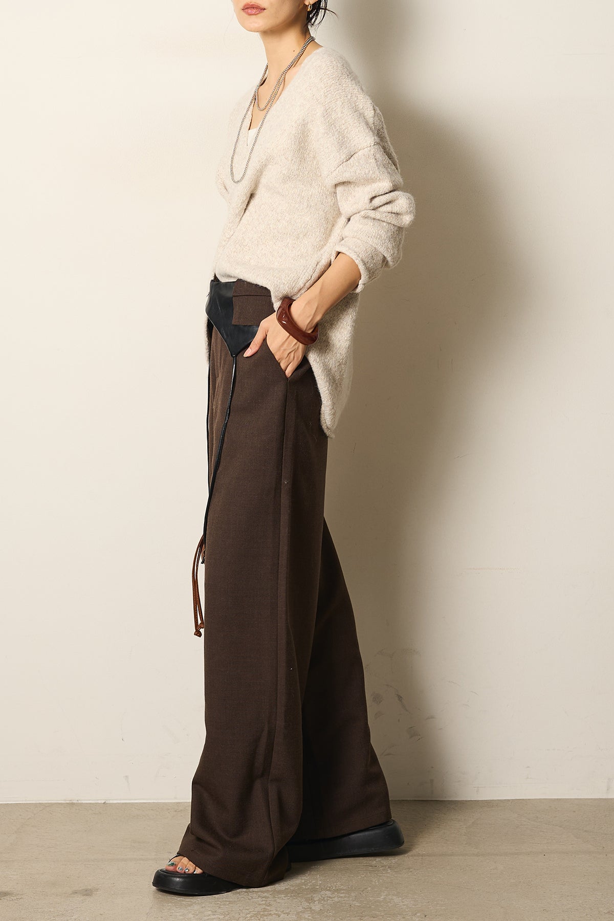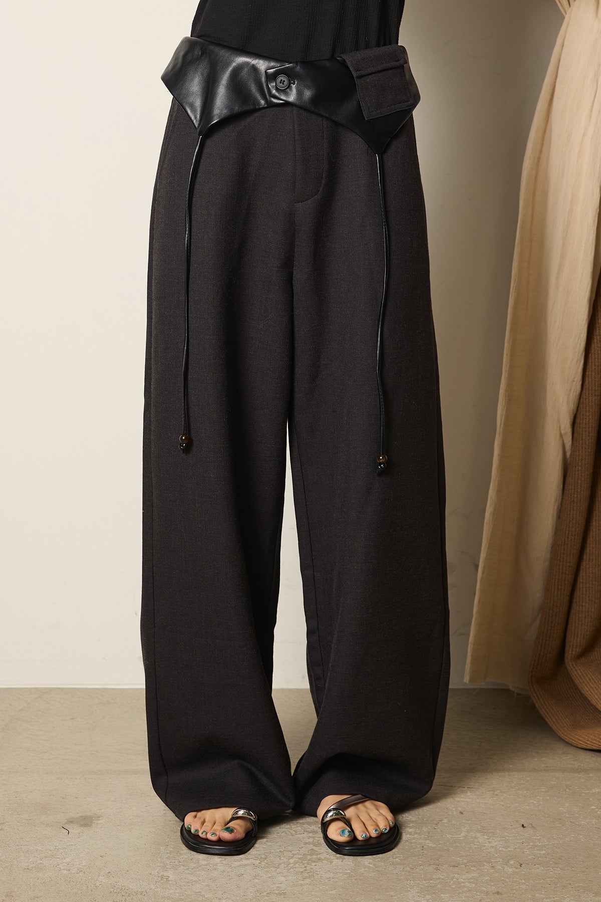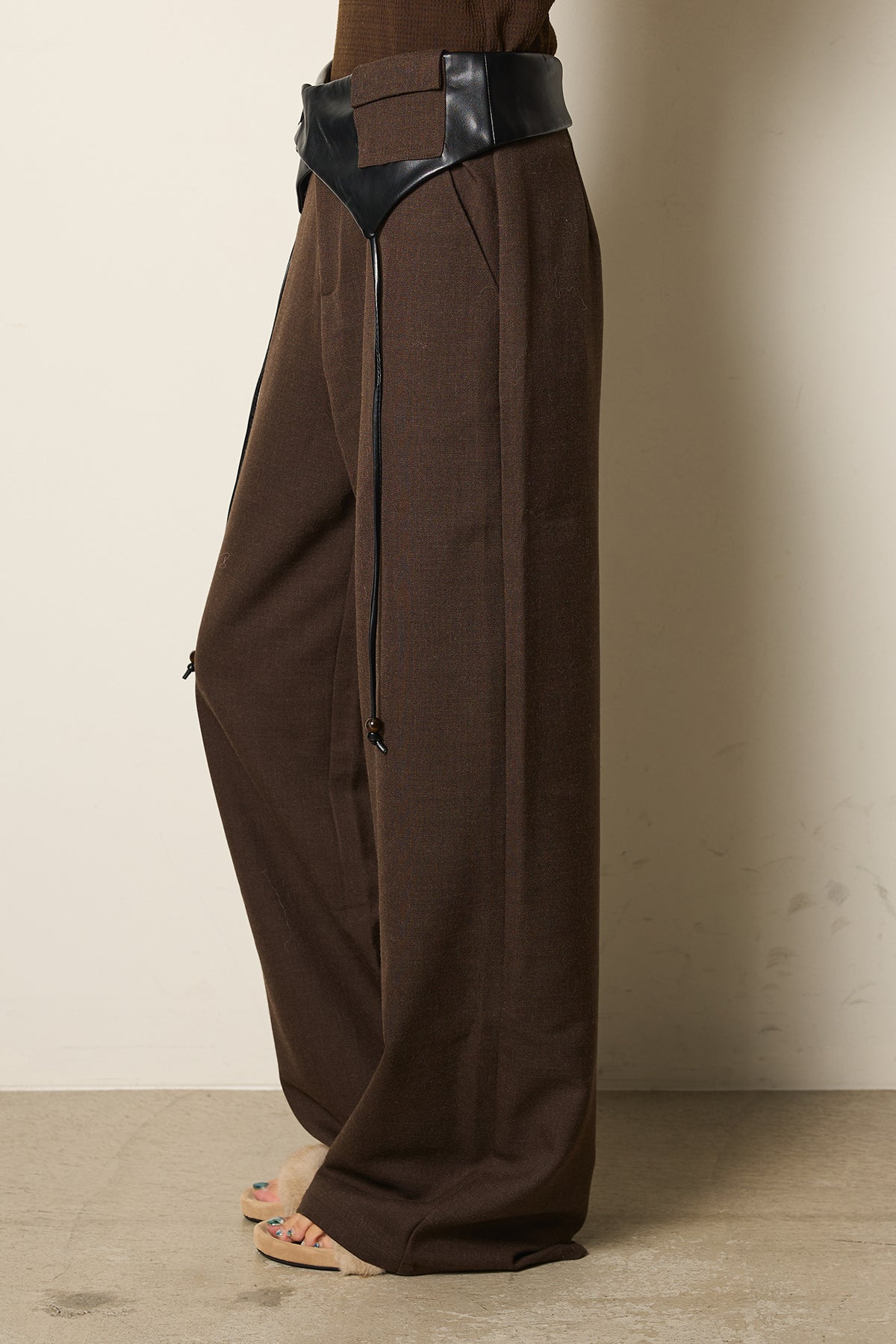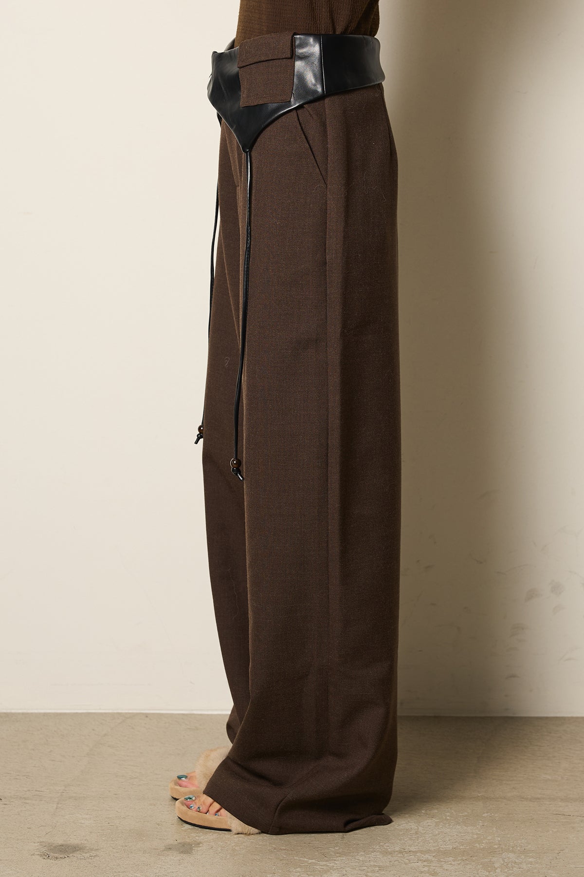 ◆ フェイクレザーウエスト折り返しデザインパンツ
