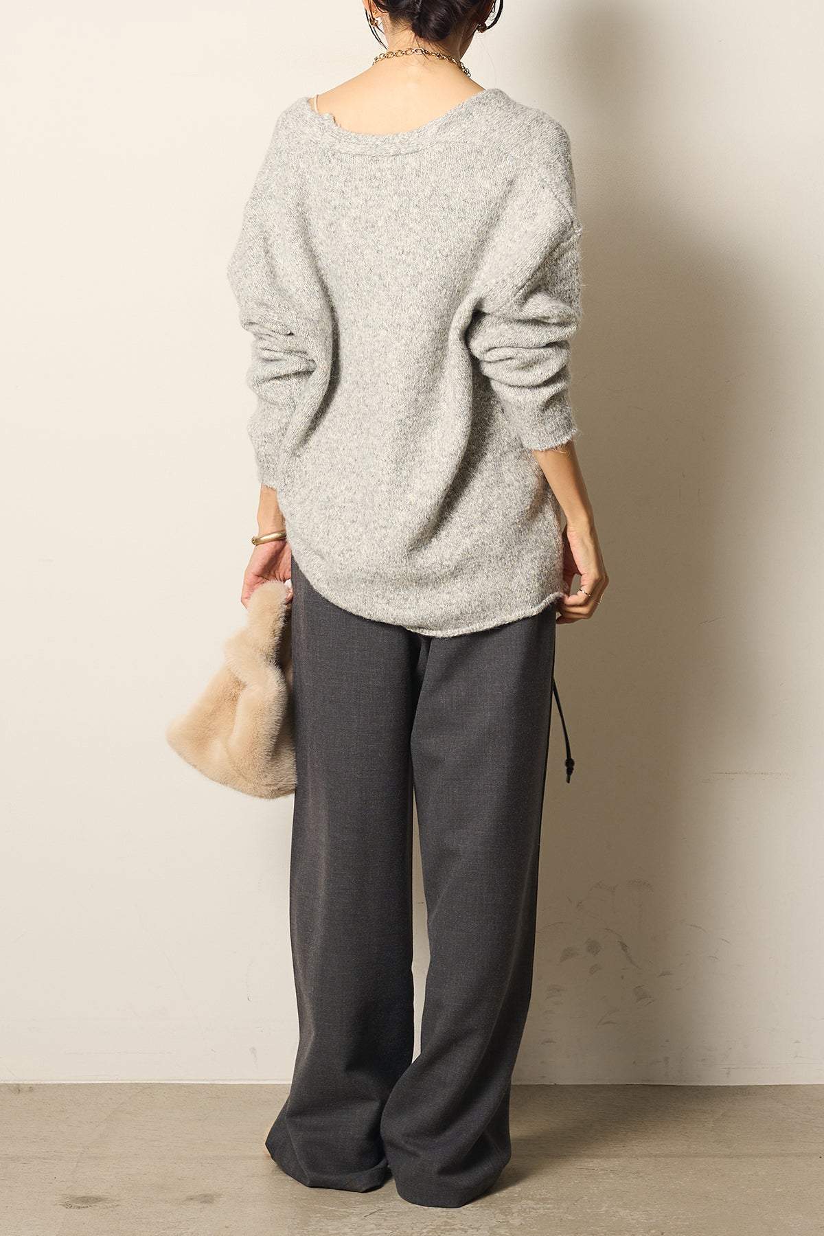 デニムやスカートを合わせるだけで、 effortless(エフォートレス)なスタイルが完成する一枚です。