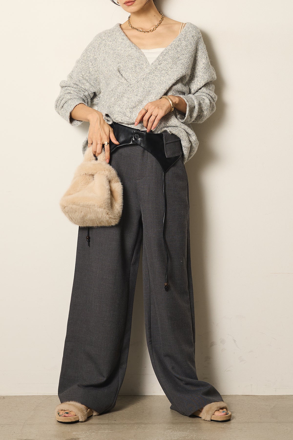 フェイクレザーウエスト折り返しデザインパンツの他のセットページはこちら