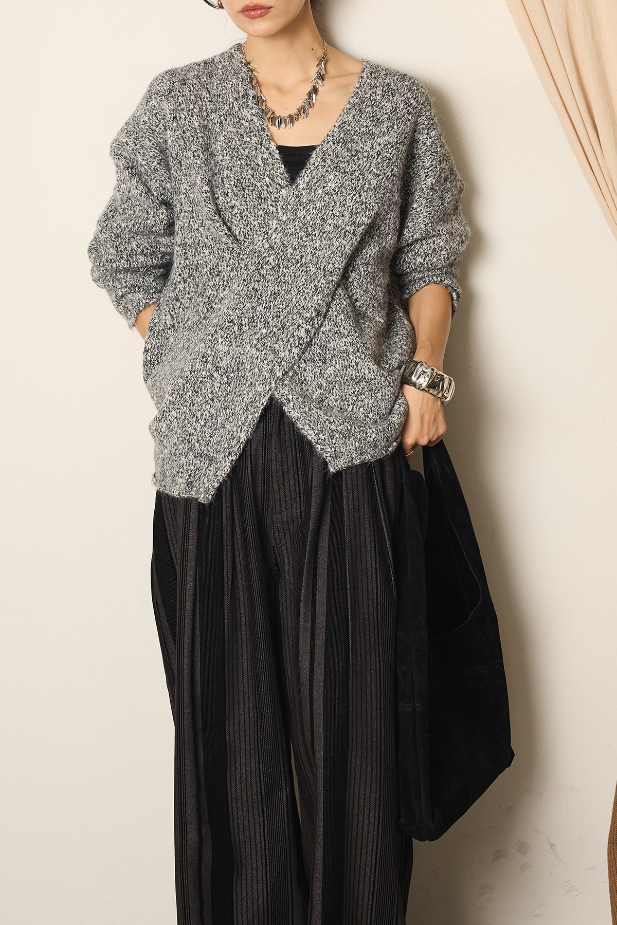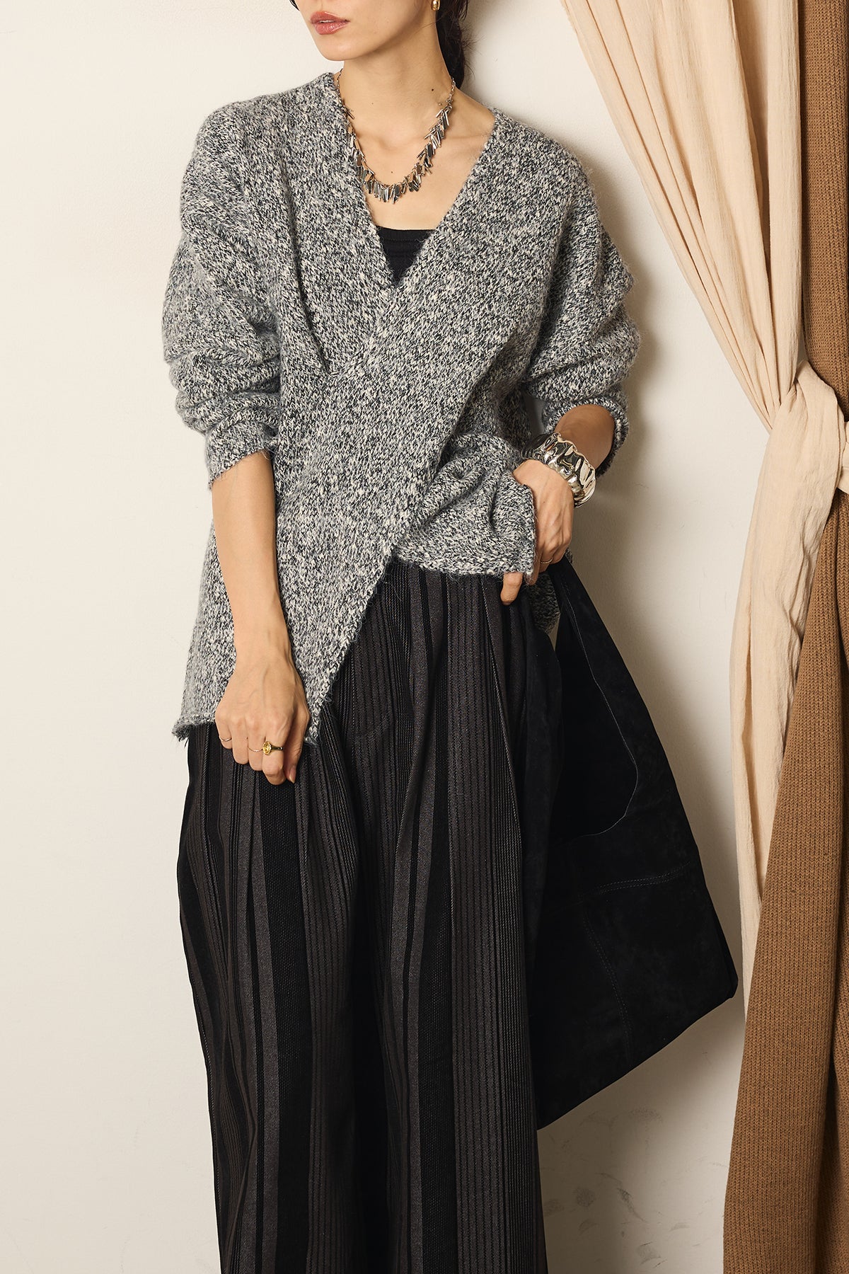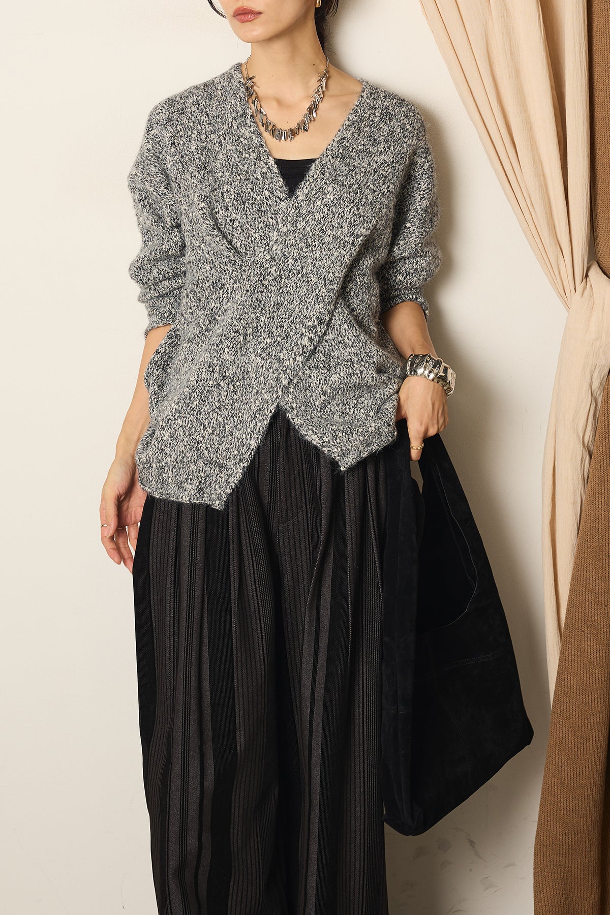 ◆ ヘアバンド付きクロスデザインミックスニットトップス