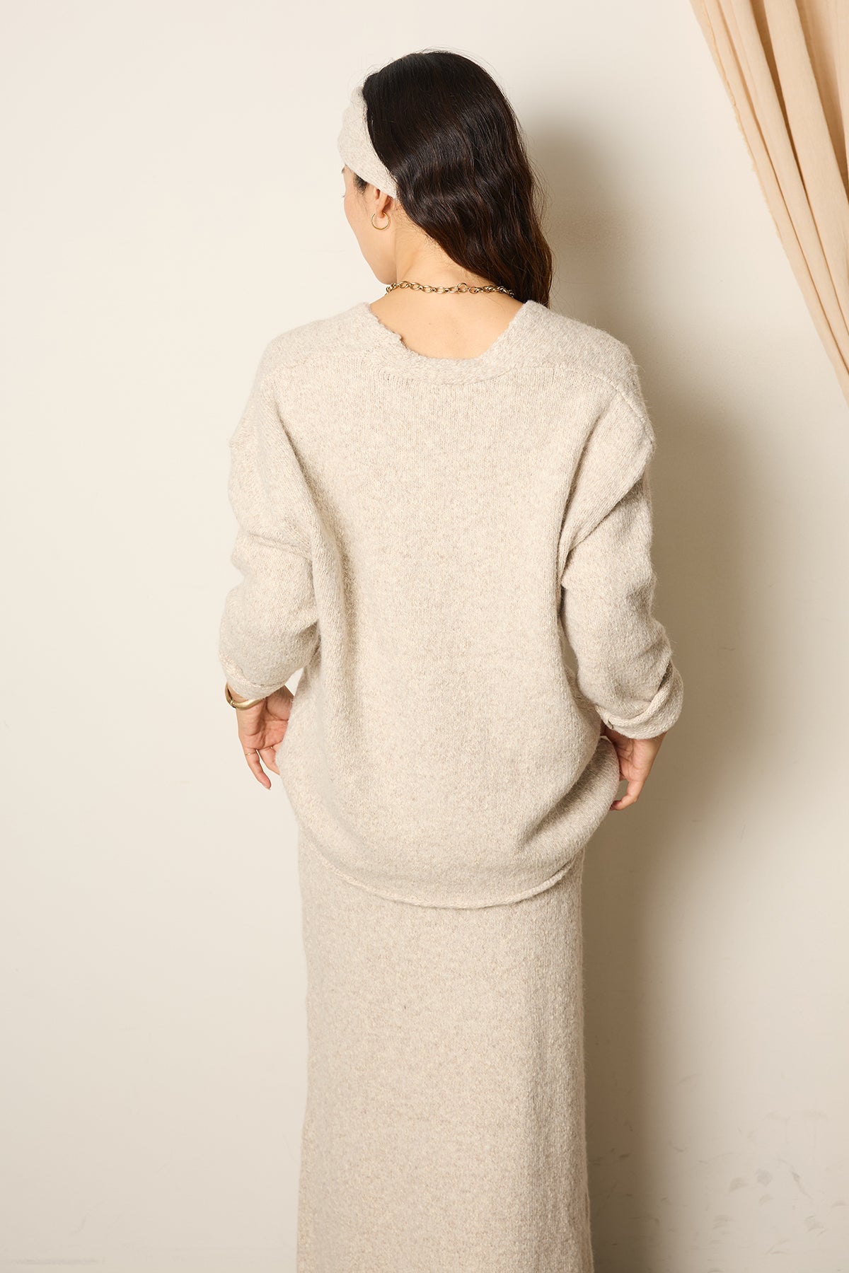 ヘアバンド付きクロスデザインミックスニットトップスの他のセットページはこちら