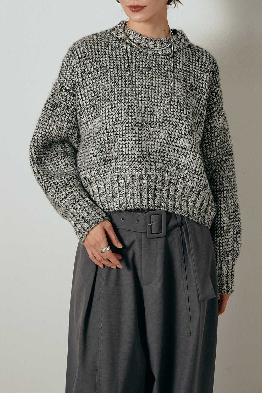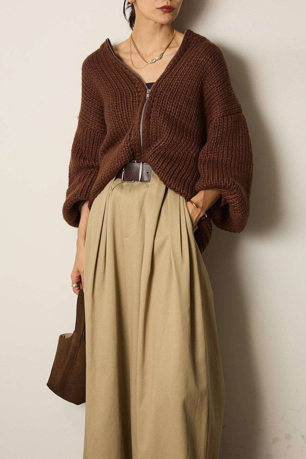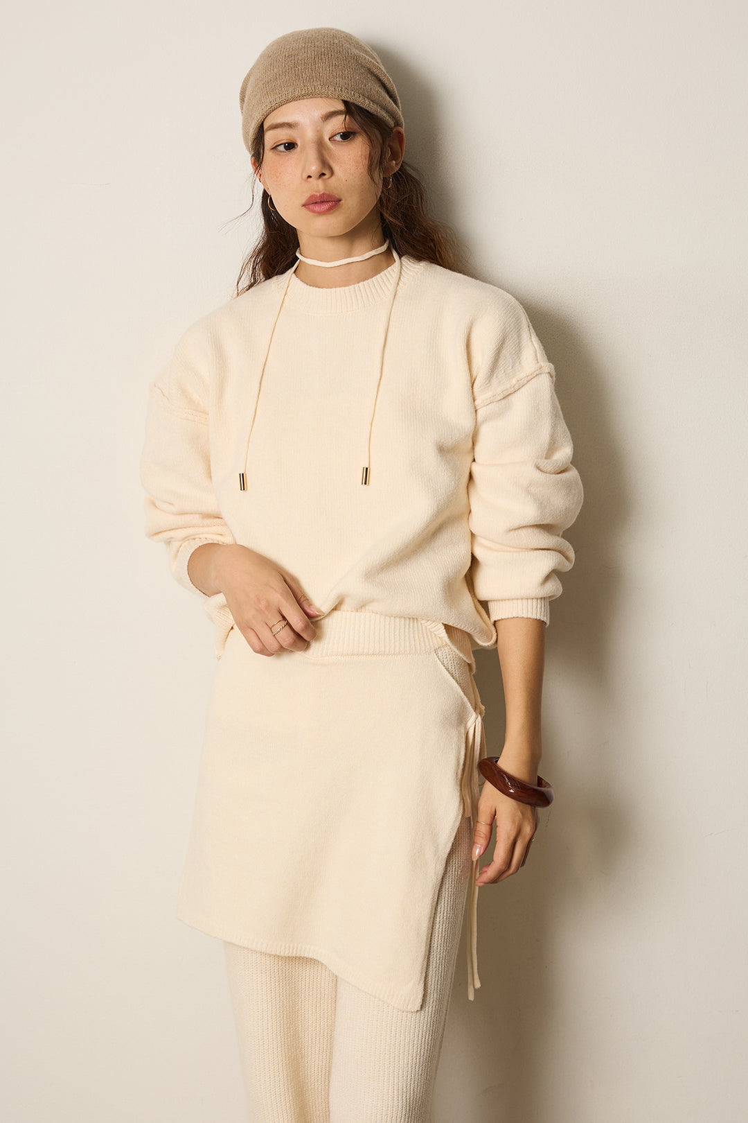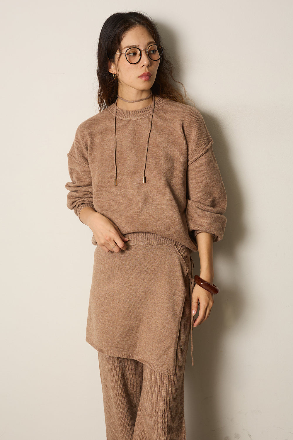 [SET]フェイクレザーベルト付きポンチョニットSETUP
