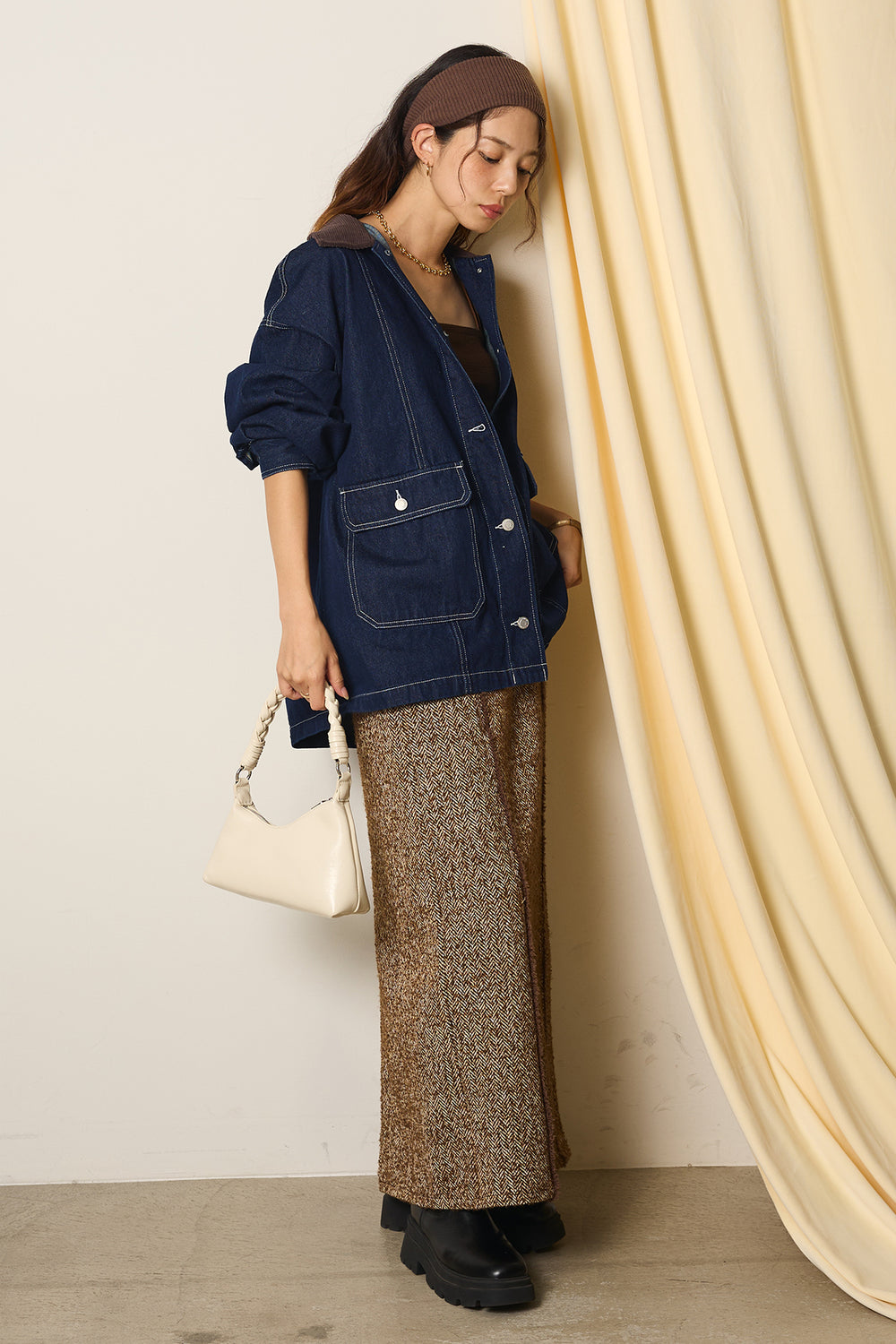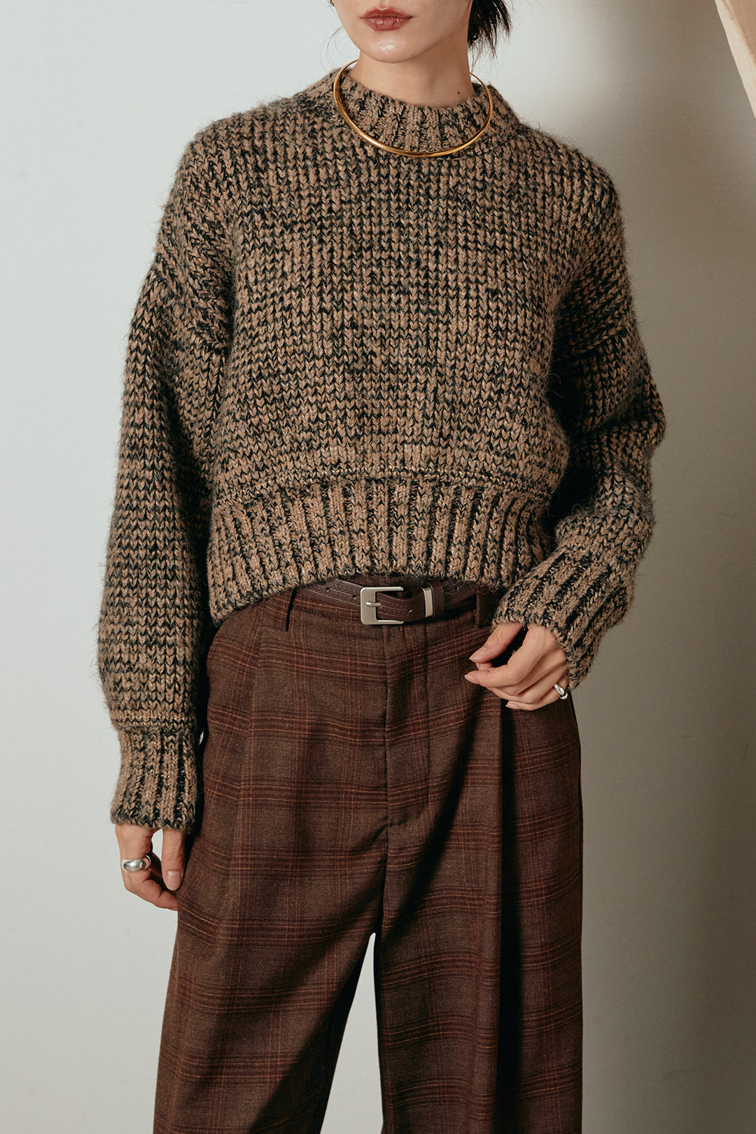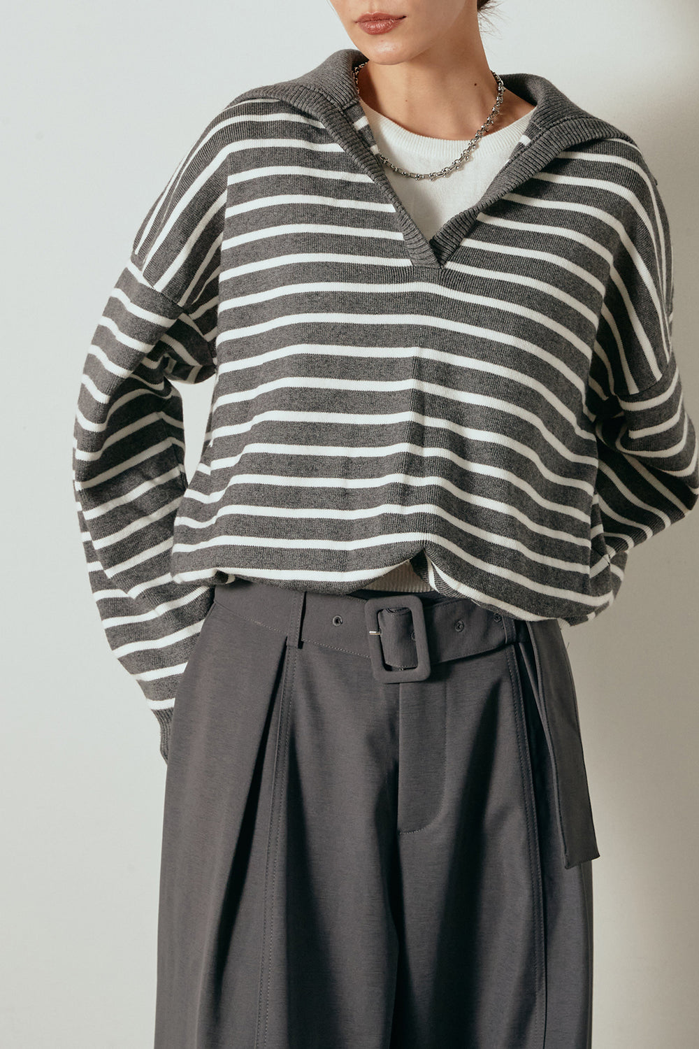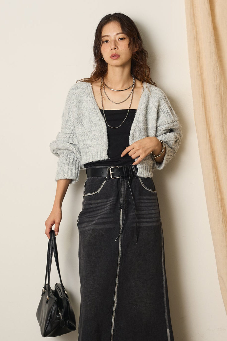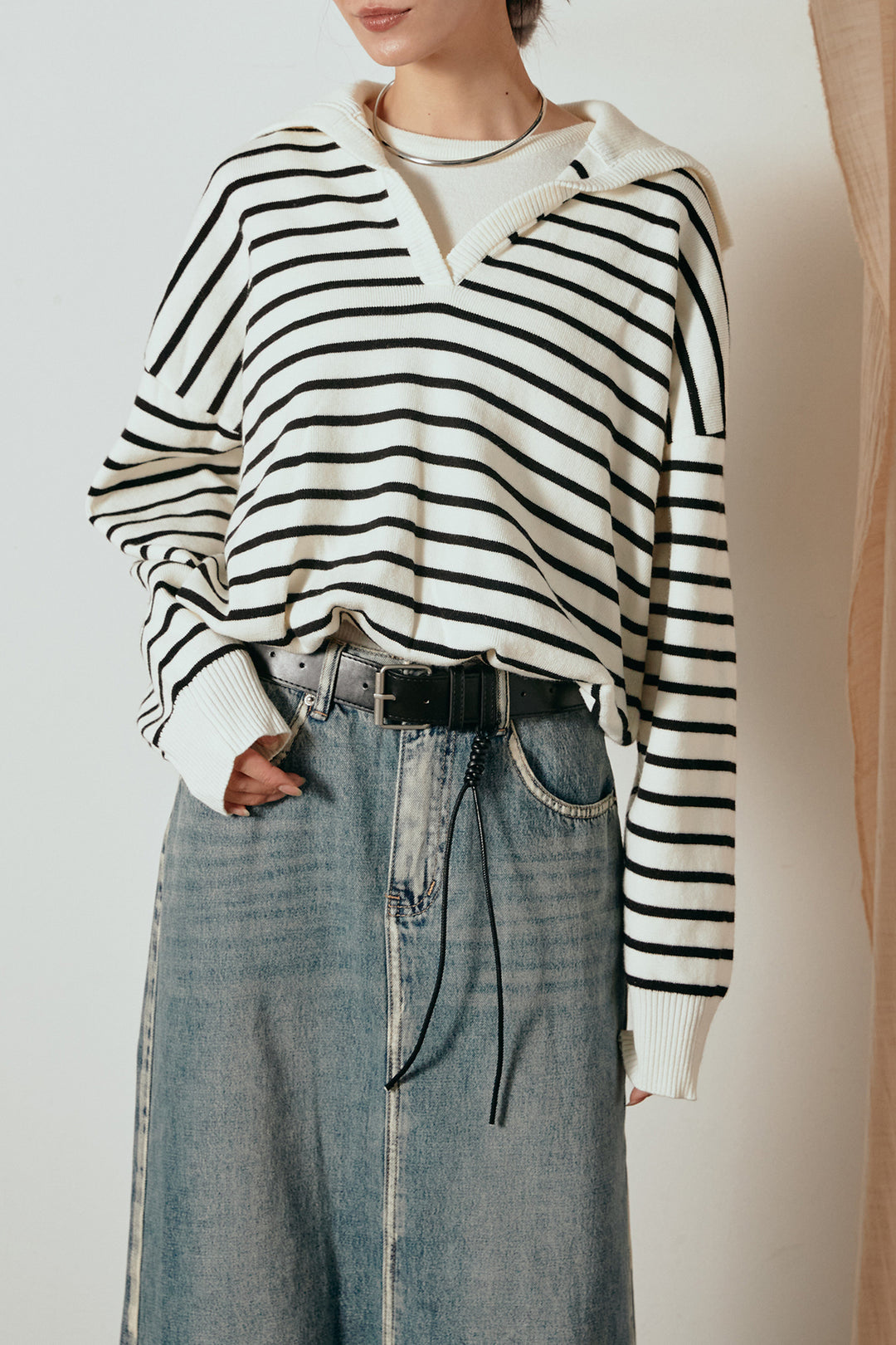 [SET]フェイクレザーベルト付きポンチョニットSETUP