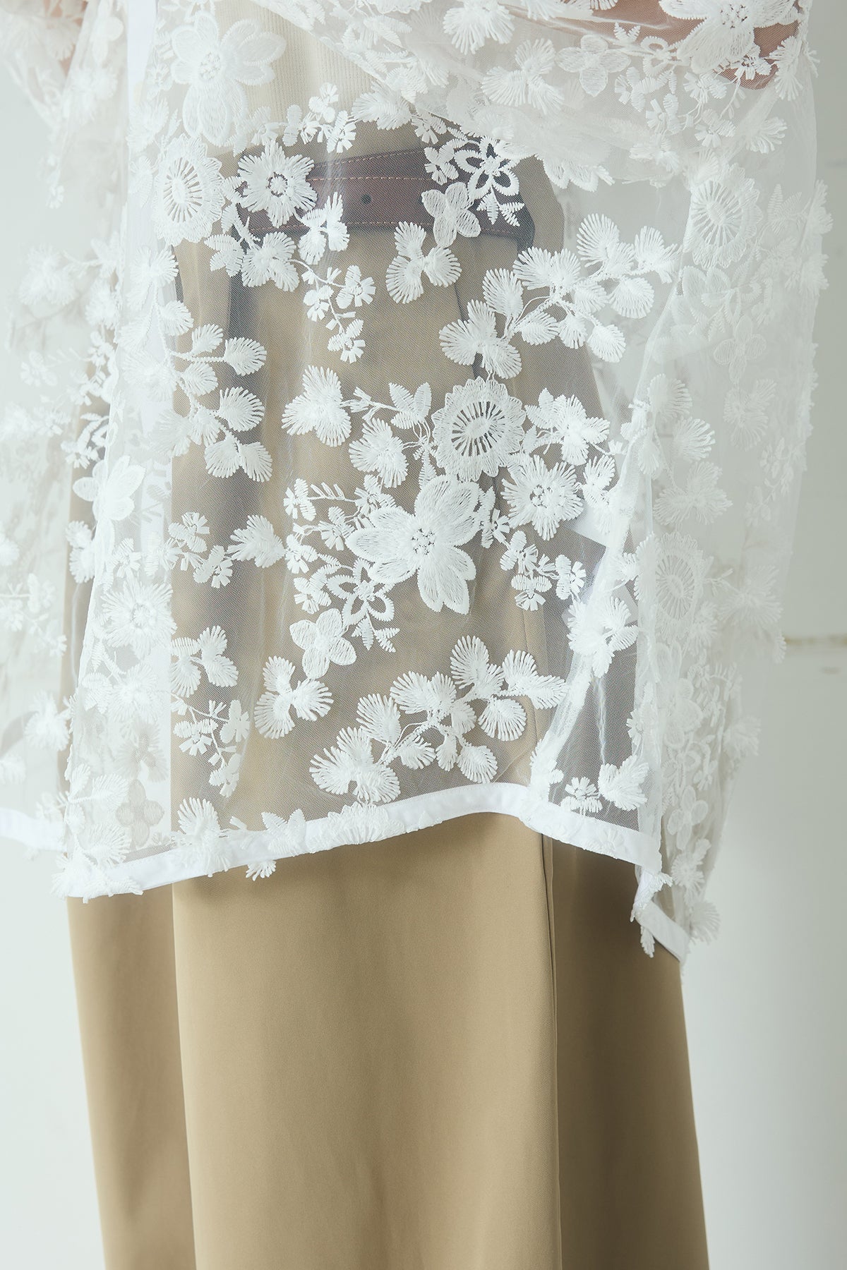 立体フラワー刺繍レースシャツ