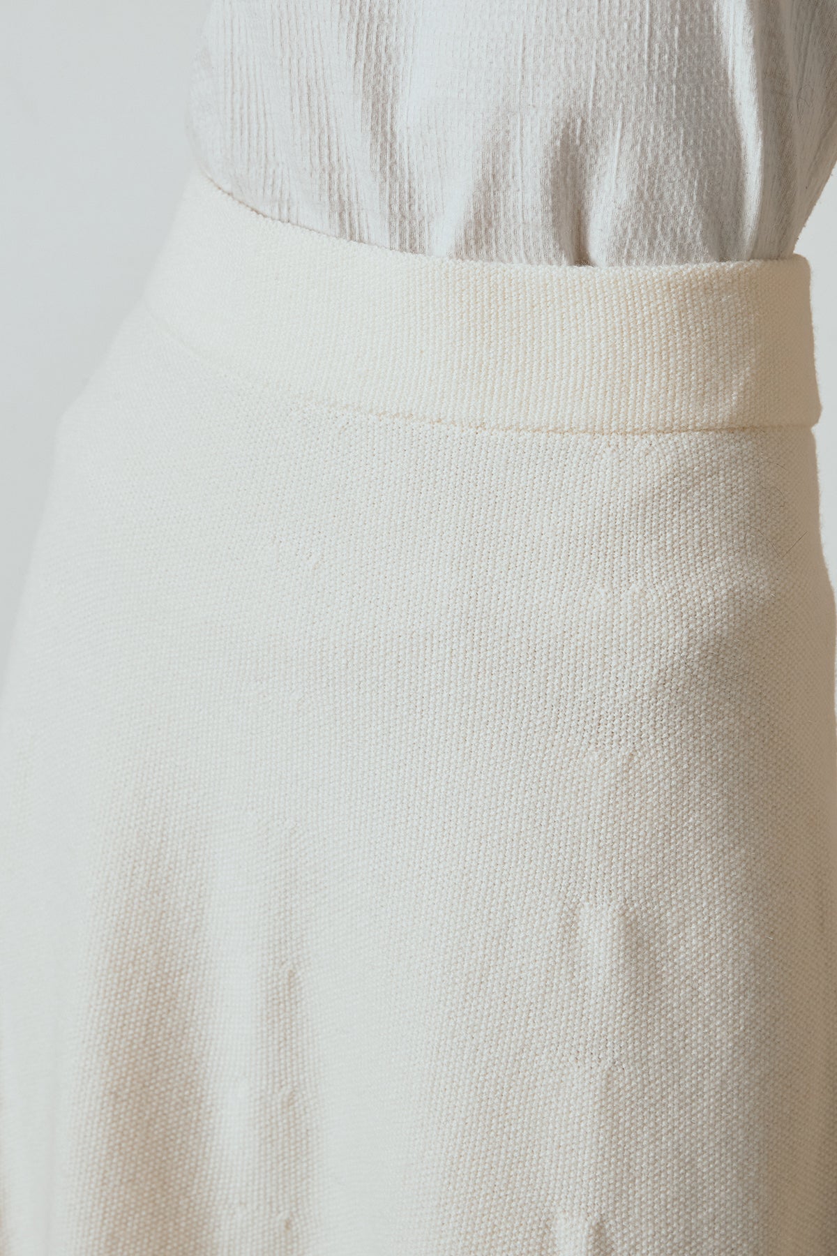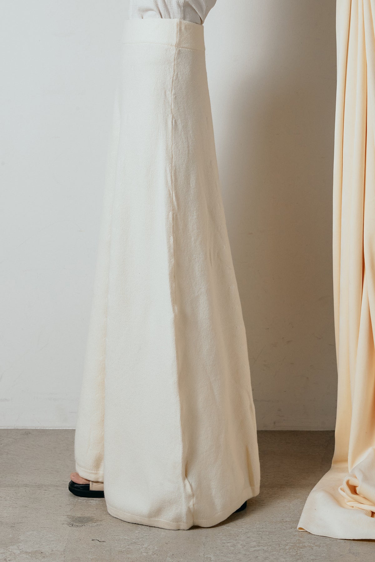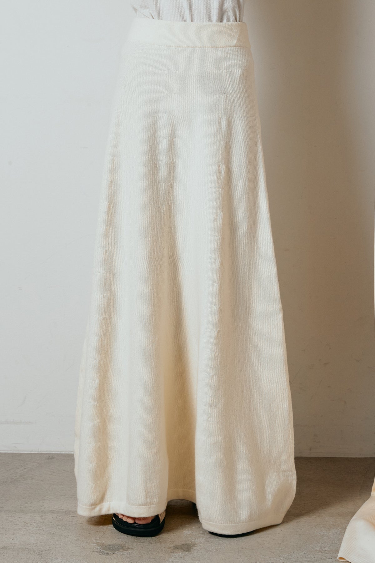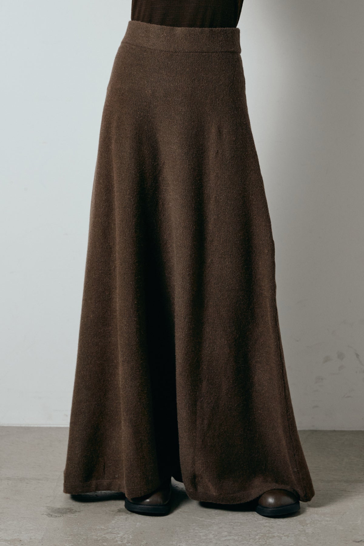 ほどよい厚みと落ち感のあるニット素材が魅力のロングスカート。 動くたびに揺れるフレアシルエットが上品な印象を与えます。 ウエストはすっきりとしたリブ仕様で、トップスをインしても美しく決まるデザイン。 同素材のニットトップスと合わせれば、セットアップとしても着こなせます。