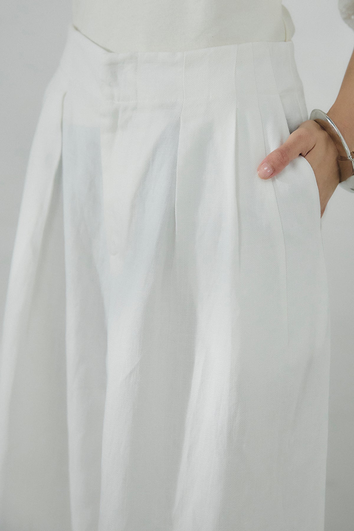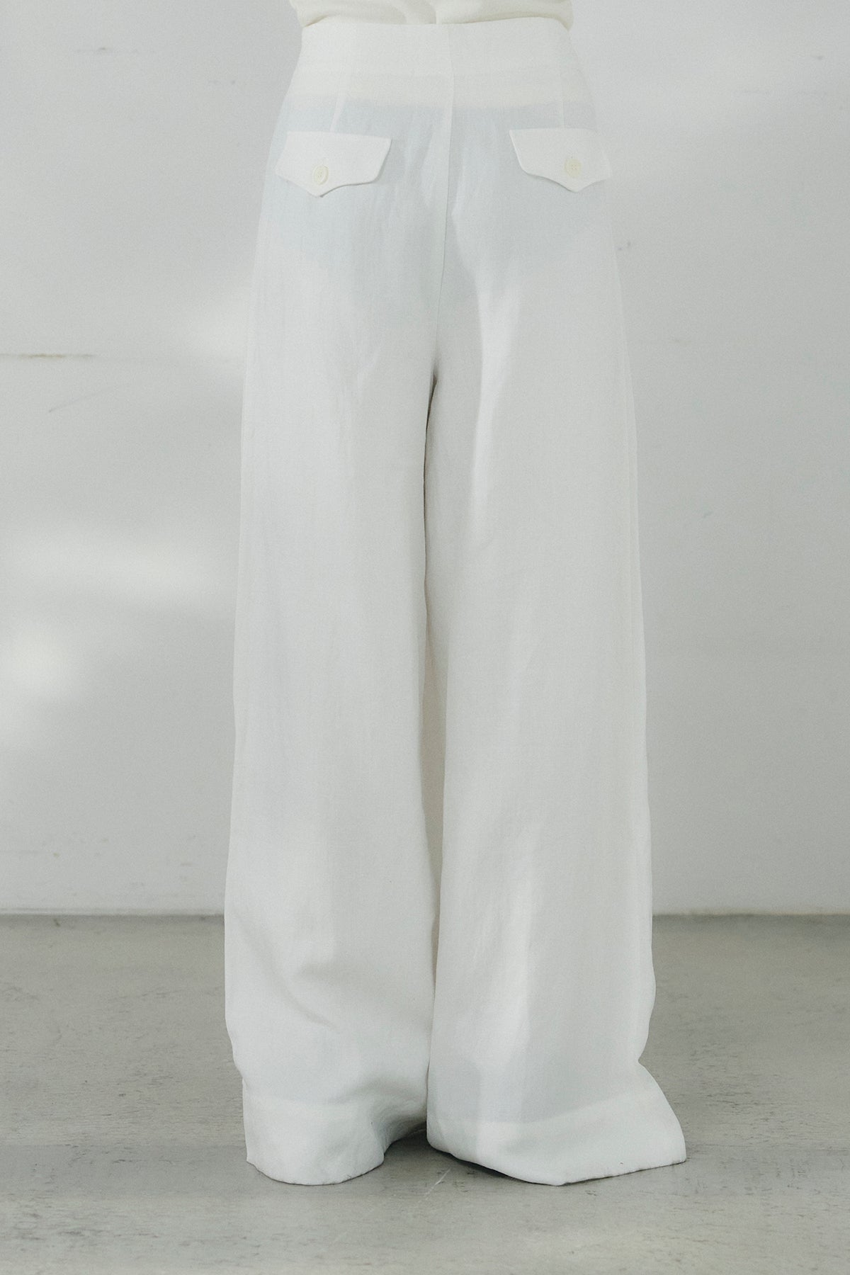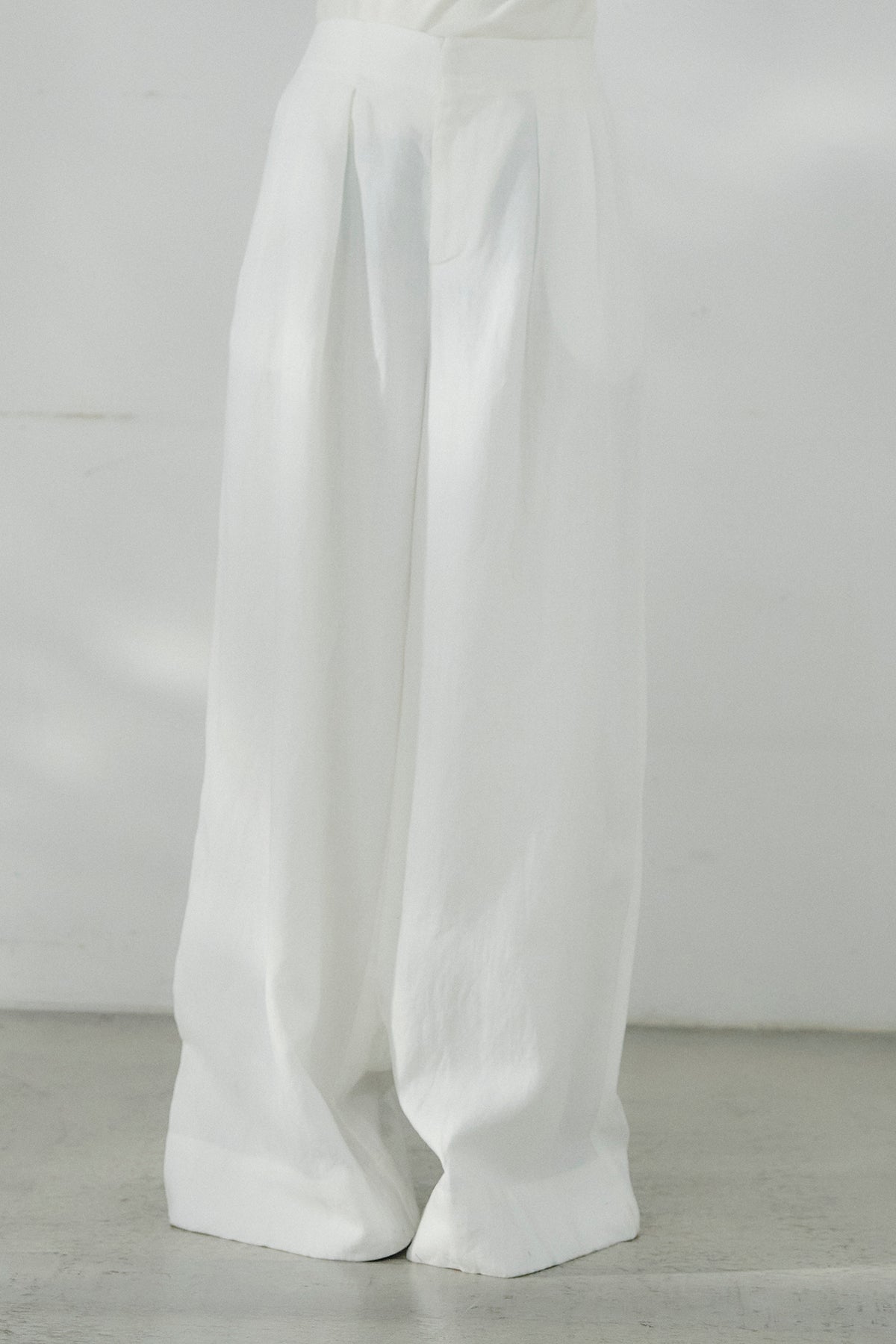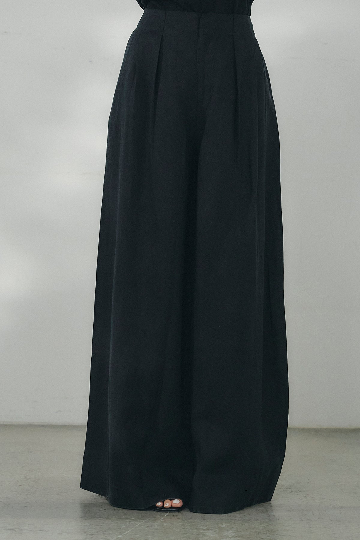 リネン混タックストレートワイドパンツ