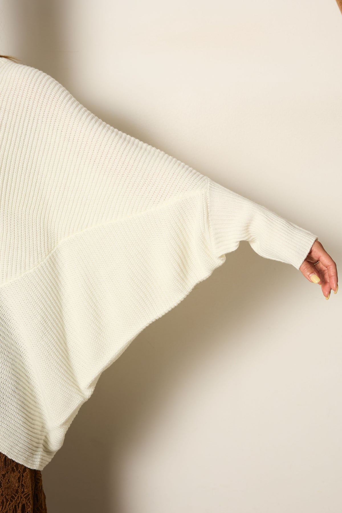 ゆるやかなドレープ感が魅力のドルマンニットプルオーバー。柔らかなニット素材が身体を包み込み、自然な落ち感でこなれた印象を演出します。裾のアシンメトリーデザインが動きを添え、シンプルながらもスタイリングに表情をプラス。カジュアルにもきれいめにも合わせやすく、デイリーに活躍する万能アイテムです。