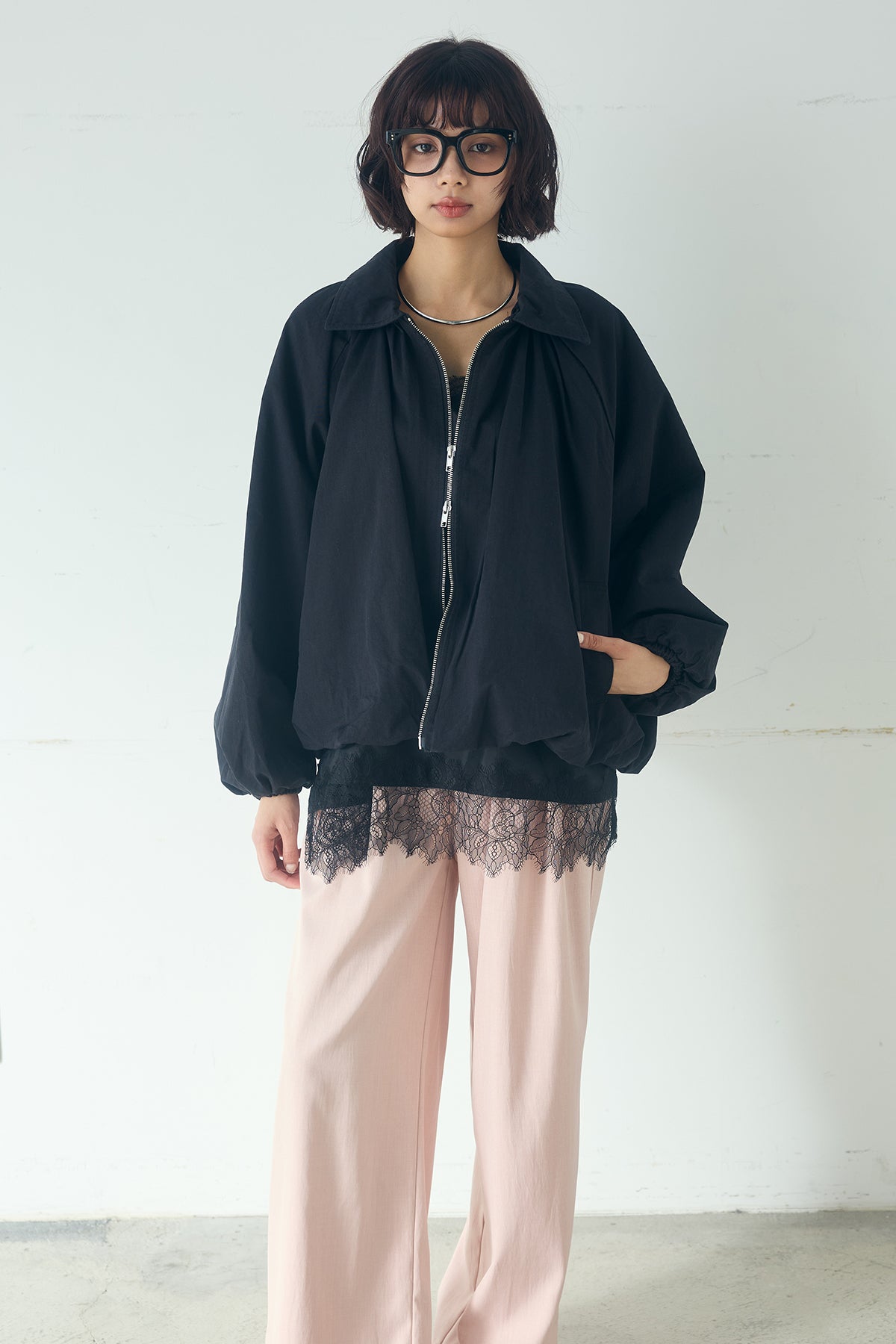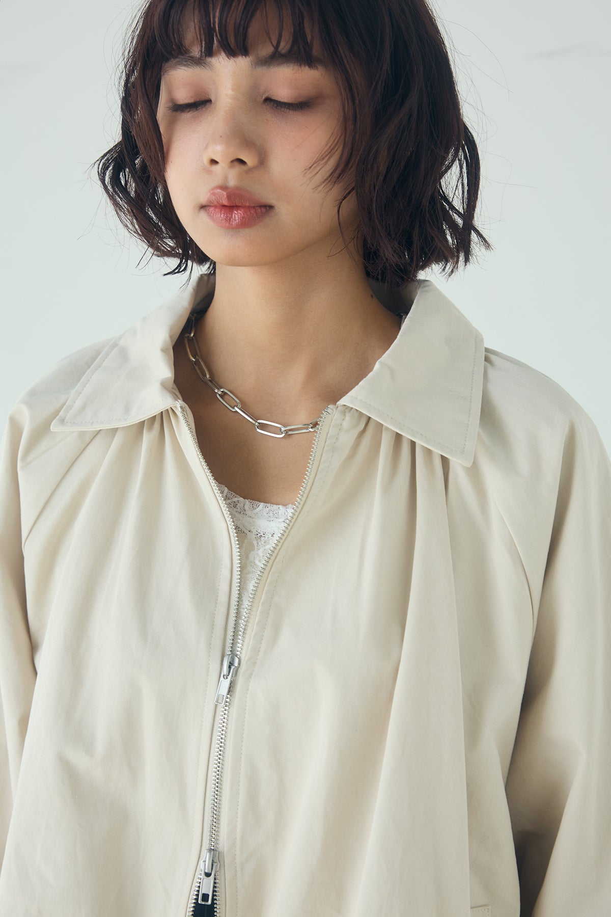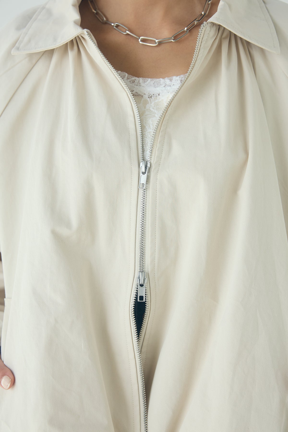 綿ツイルバルーンジャケット 程よいハリ感のある綿ツイル素材を活かし、丸みのあるバルーンシルエットで仕上げたライトアウター。 ラグランスリーブが肩まわりをやわらかく見せ、裾にかけて自然な立体感を演出します。フロントジップ仕様で着脱しやすく、パンツやスカートともバランスが取りやすい一着です。