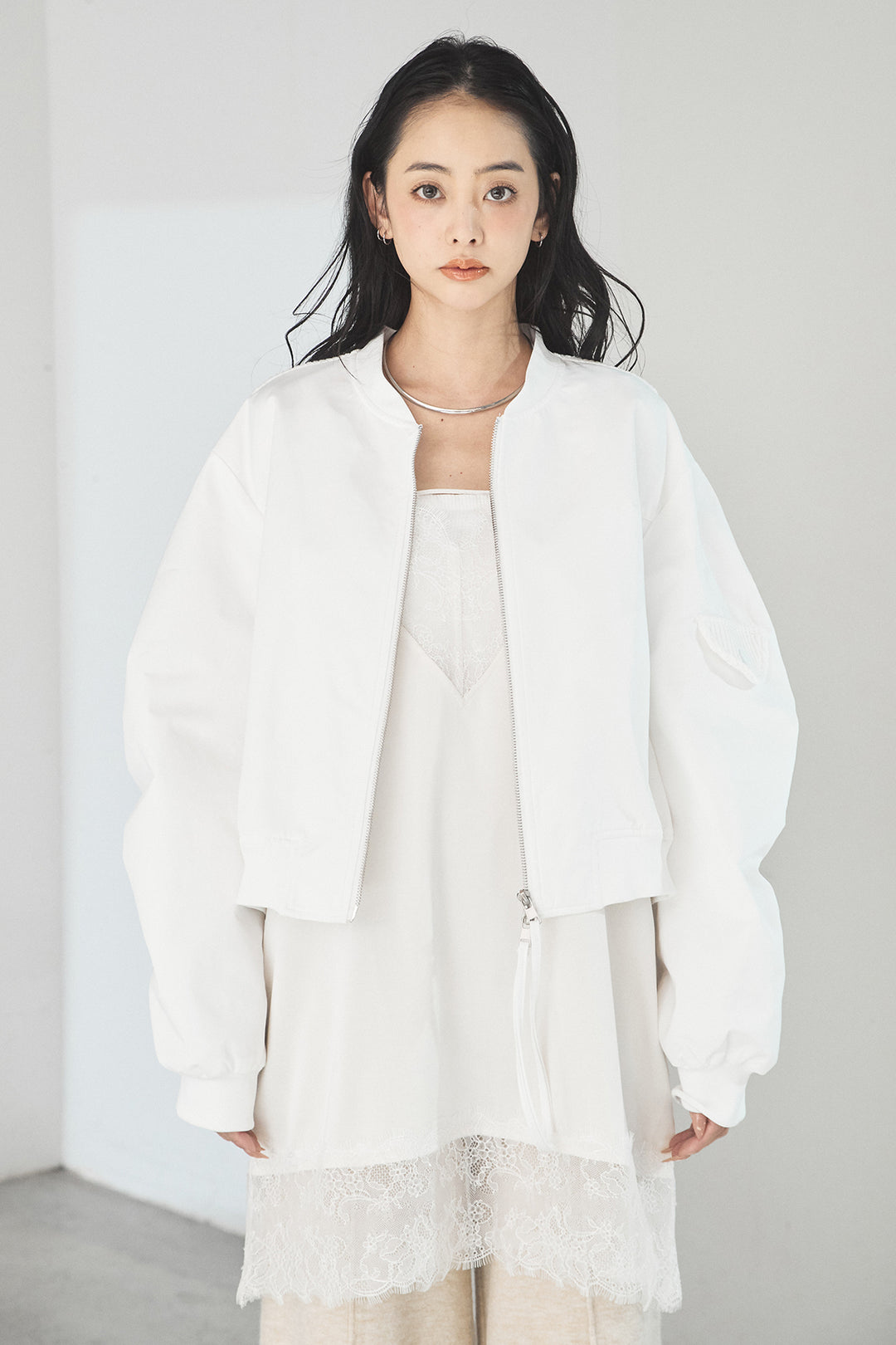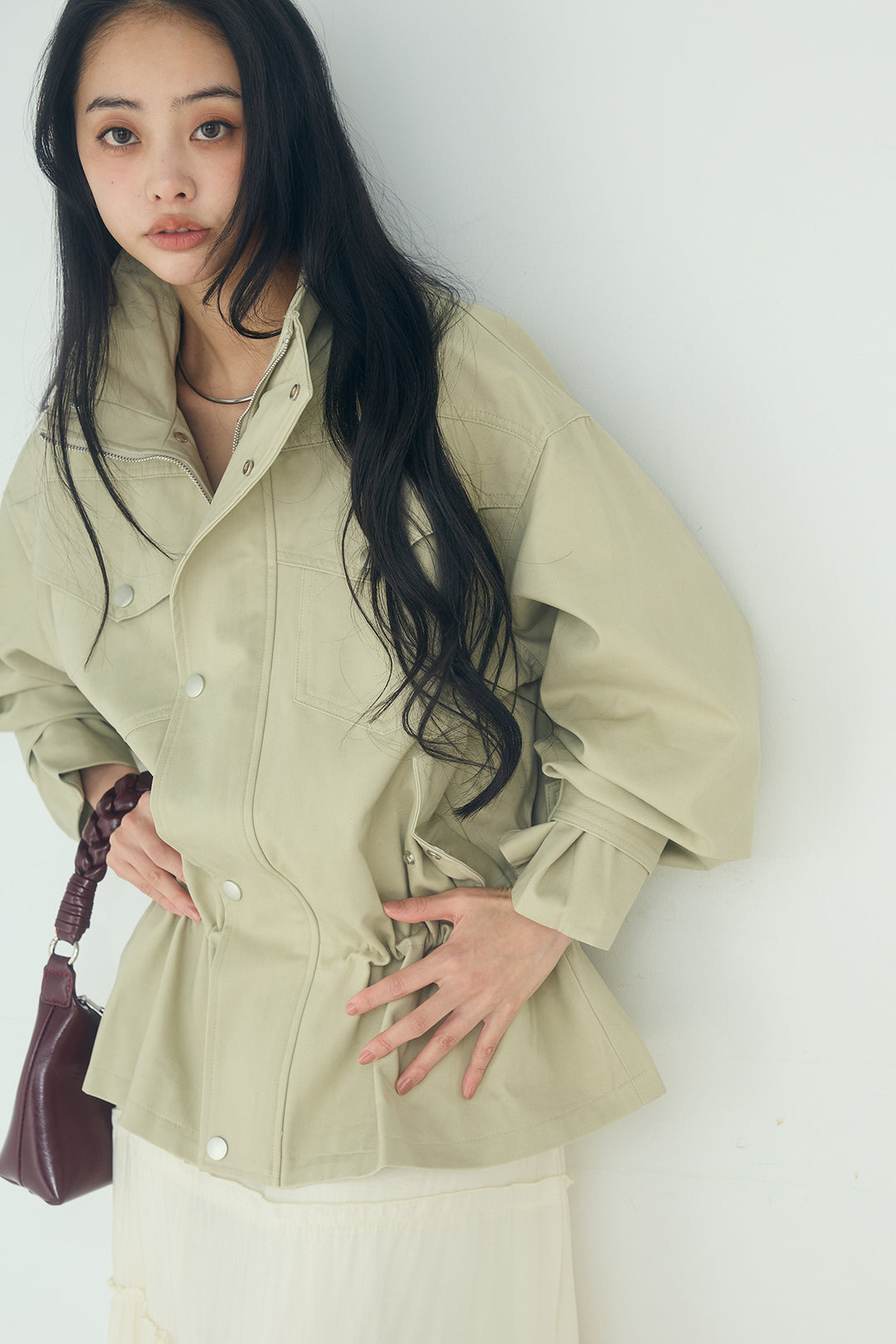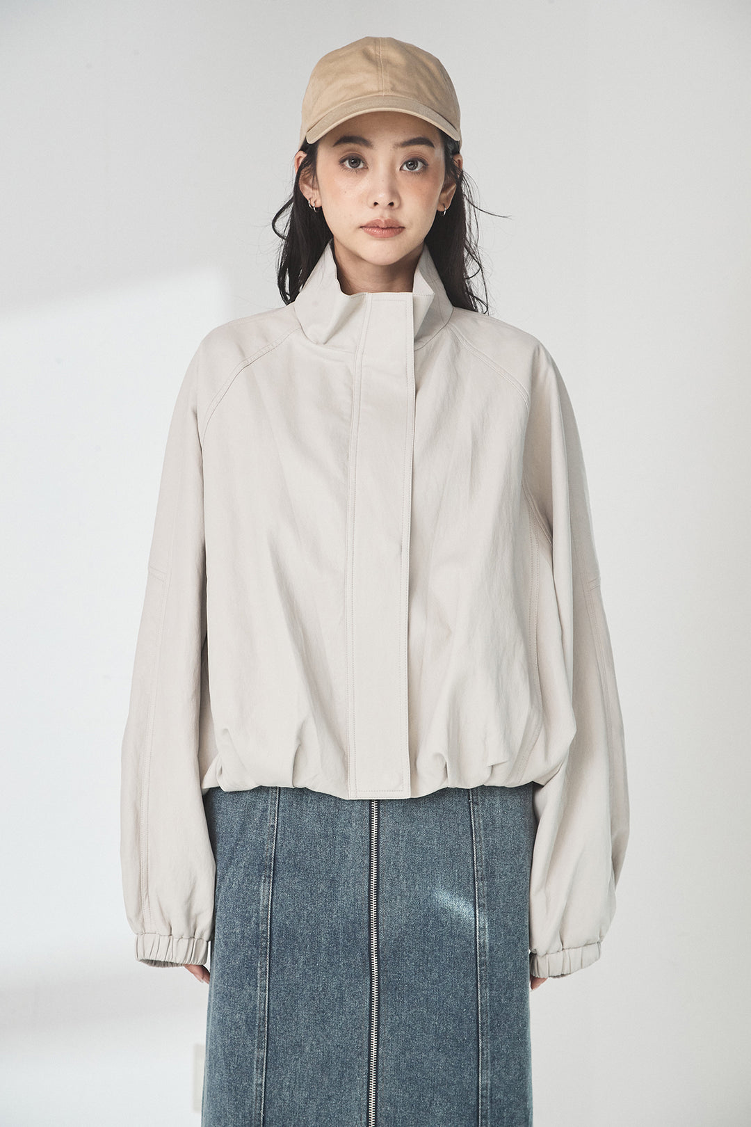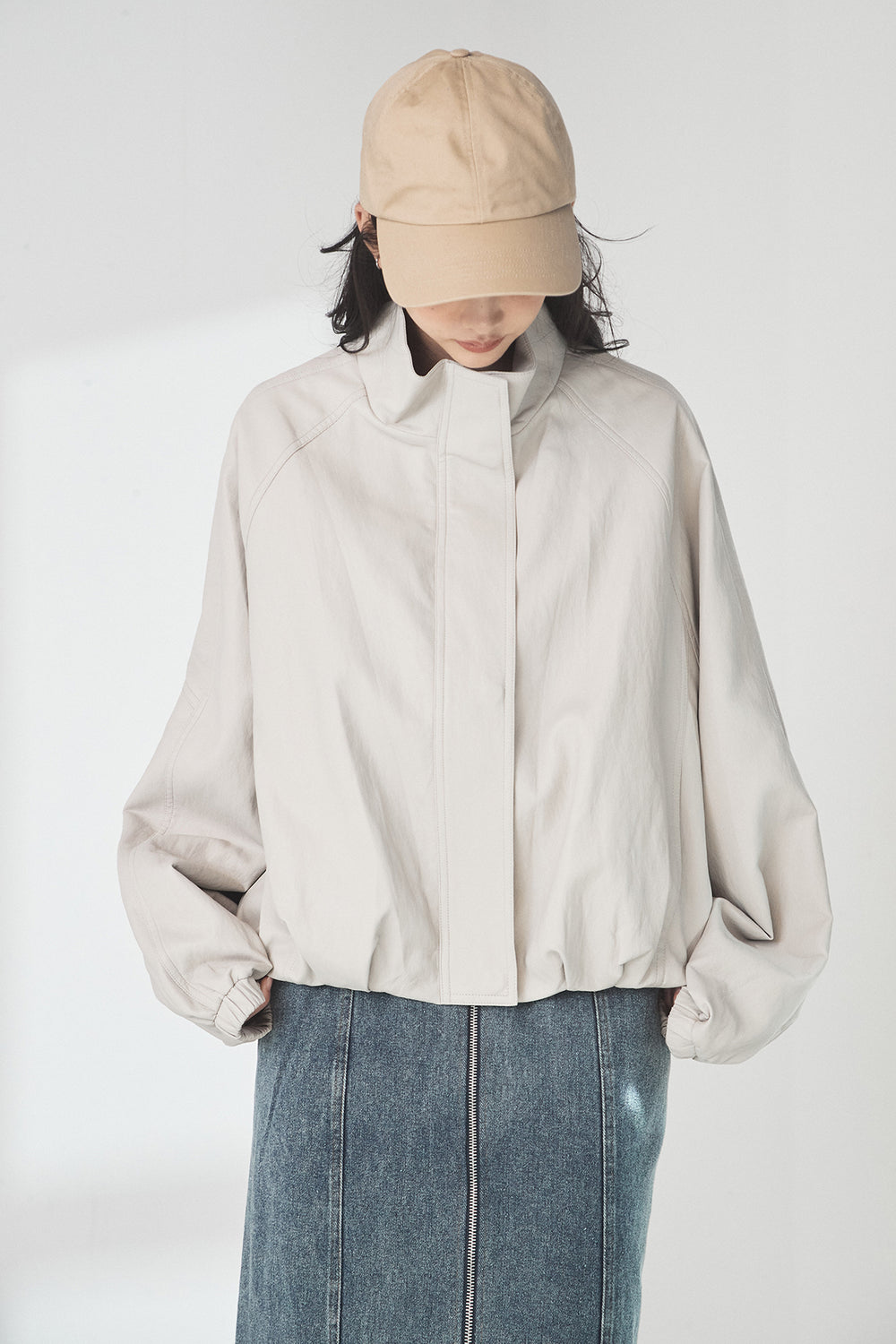 スタンドネックサイド絞りアウター
