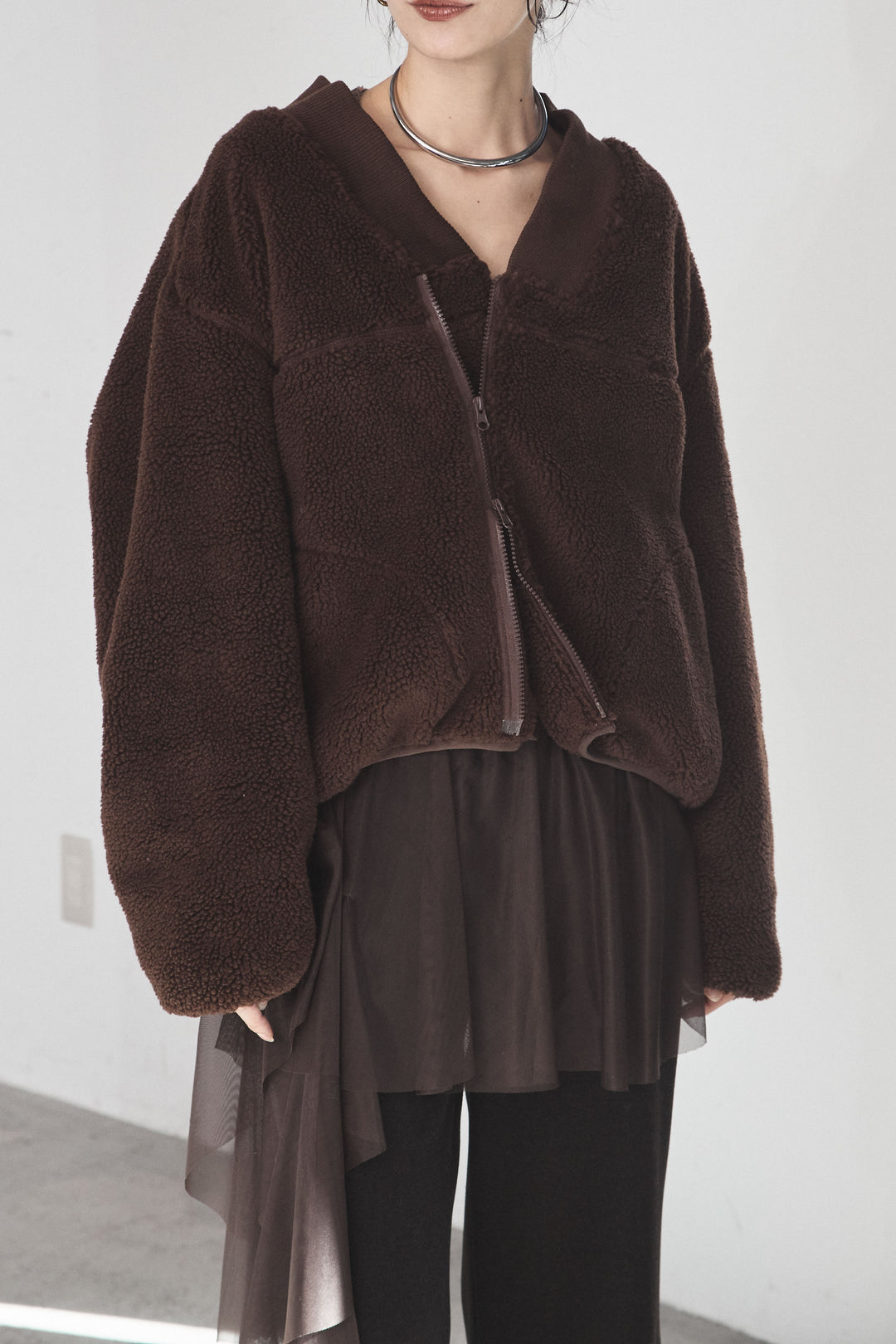 ノーカラーリブボアアウター