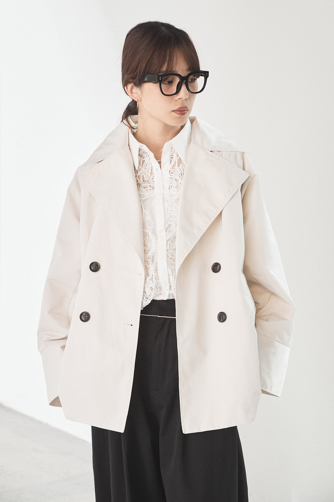 スライバーニットショートステンカラーコート/アイボリー
