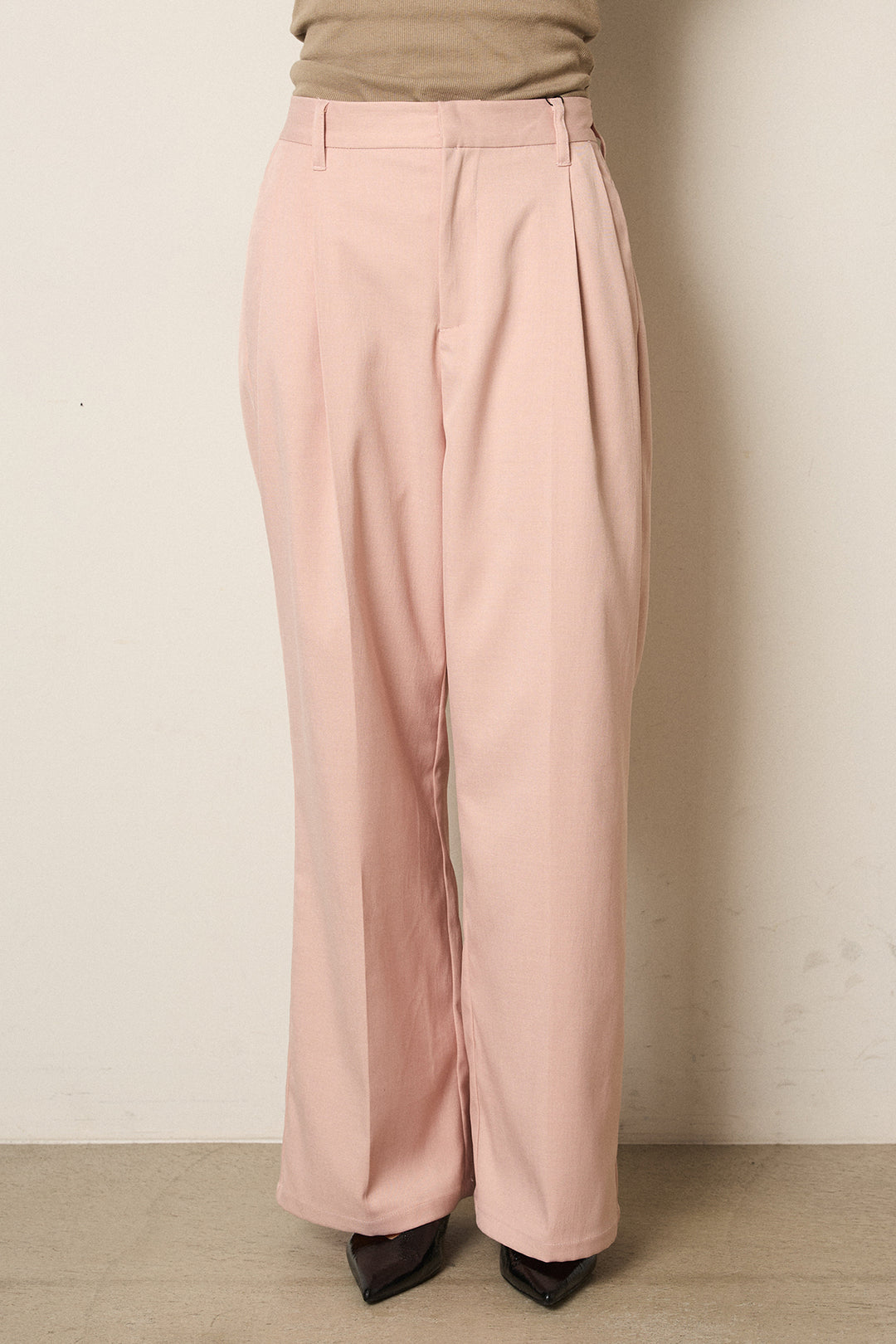 ベルト付きフロントタックデザインパンツ