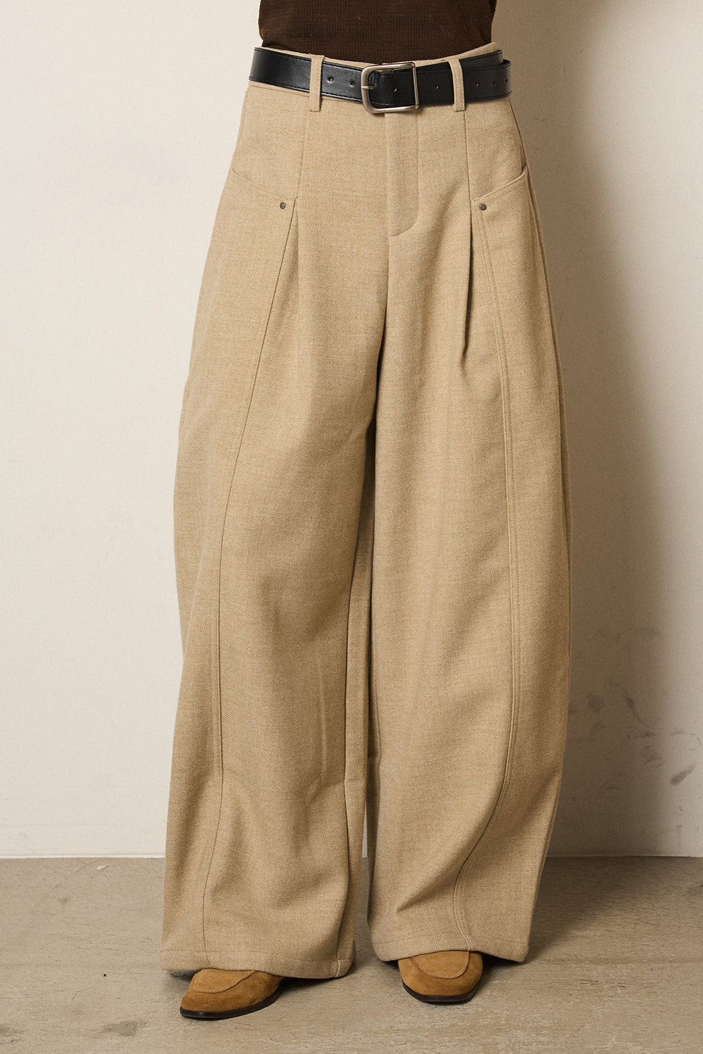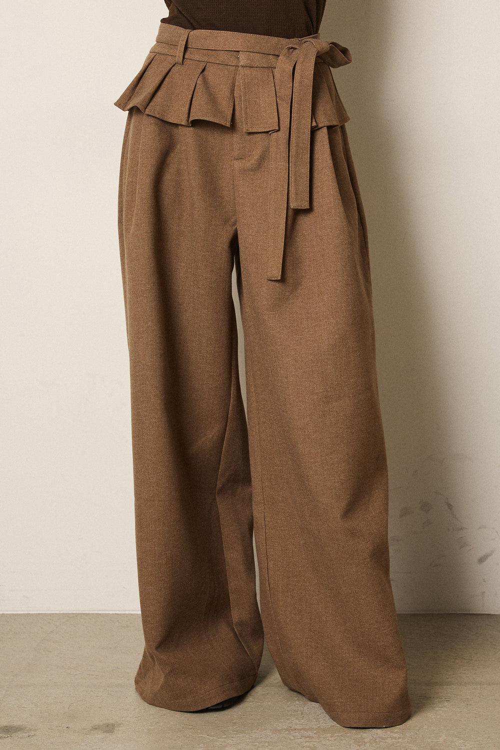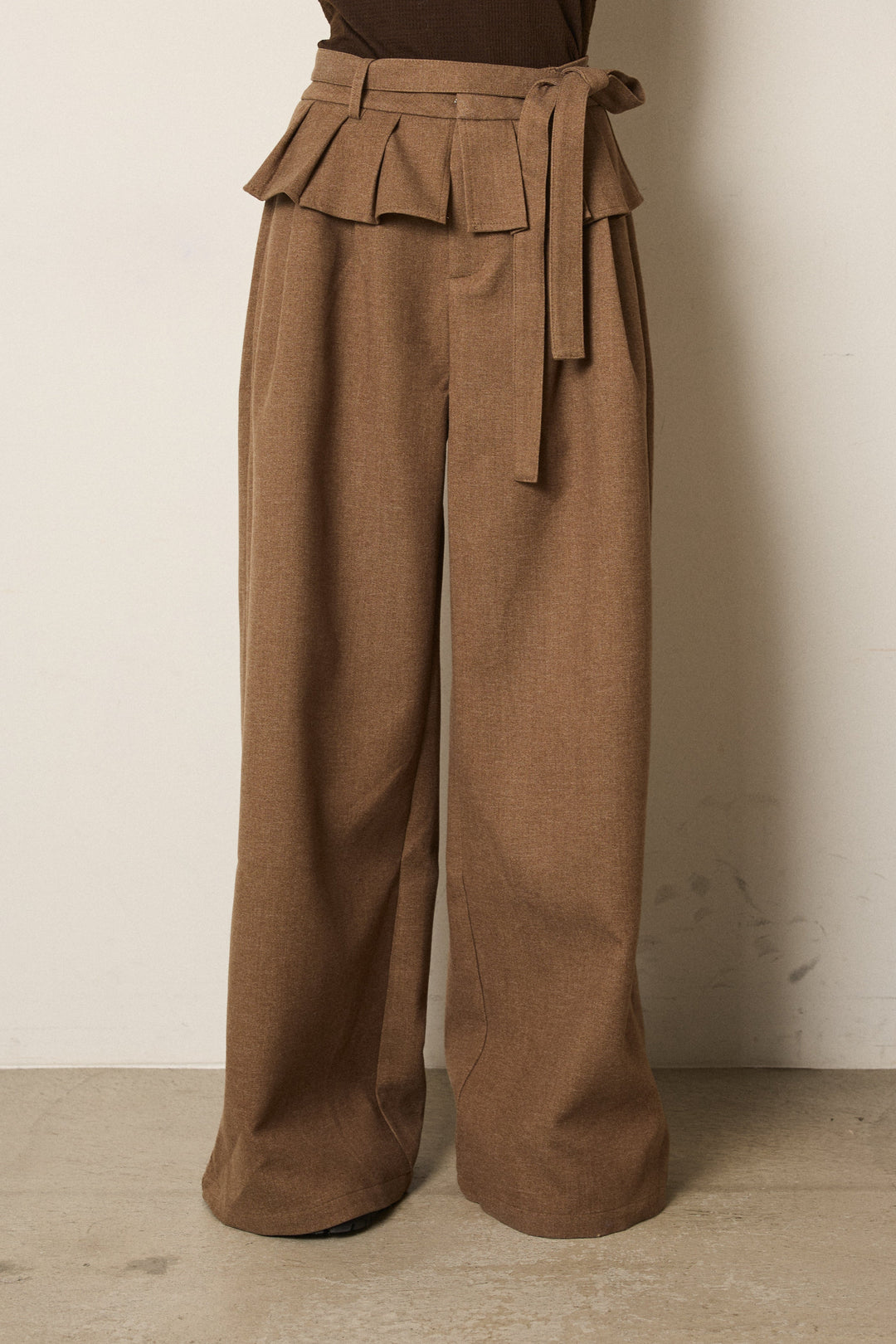 細ベルト付き起毛タックワイドパンツ