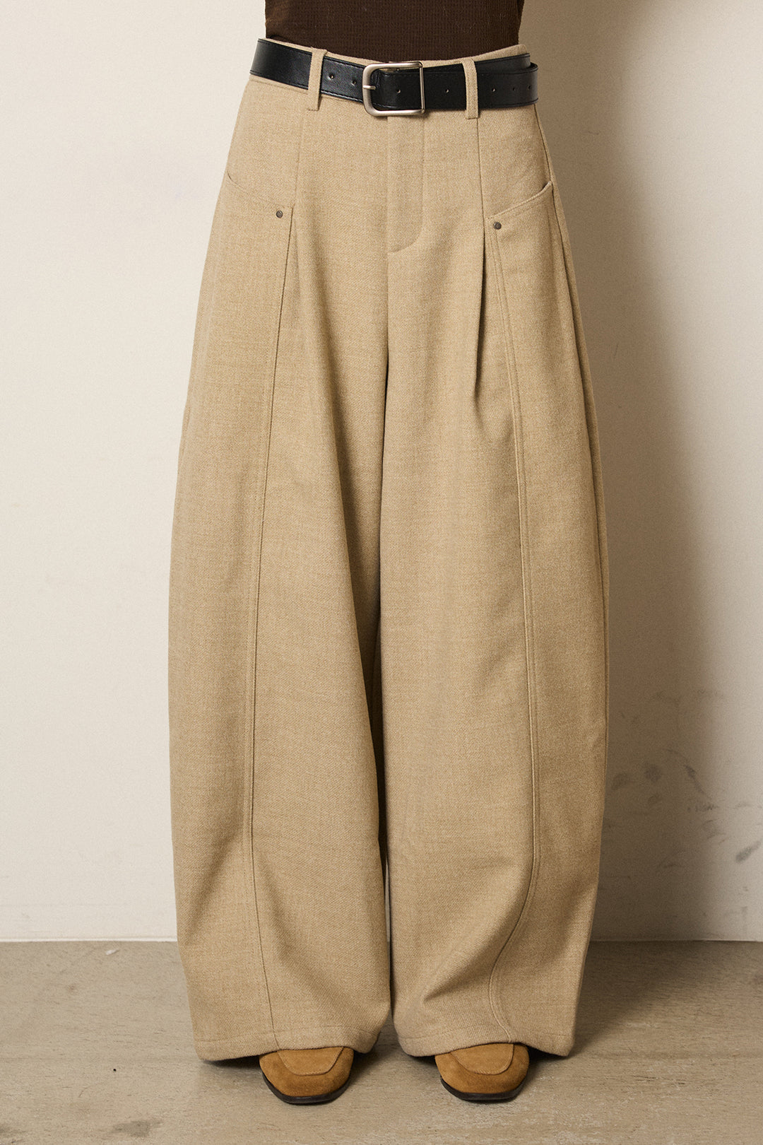 ベルト付き起毛タックワイドカーブパンツ