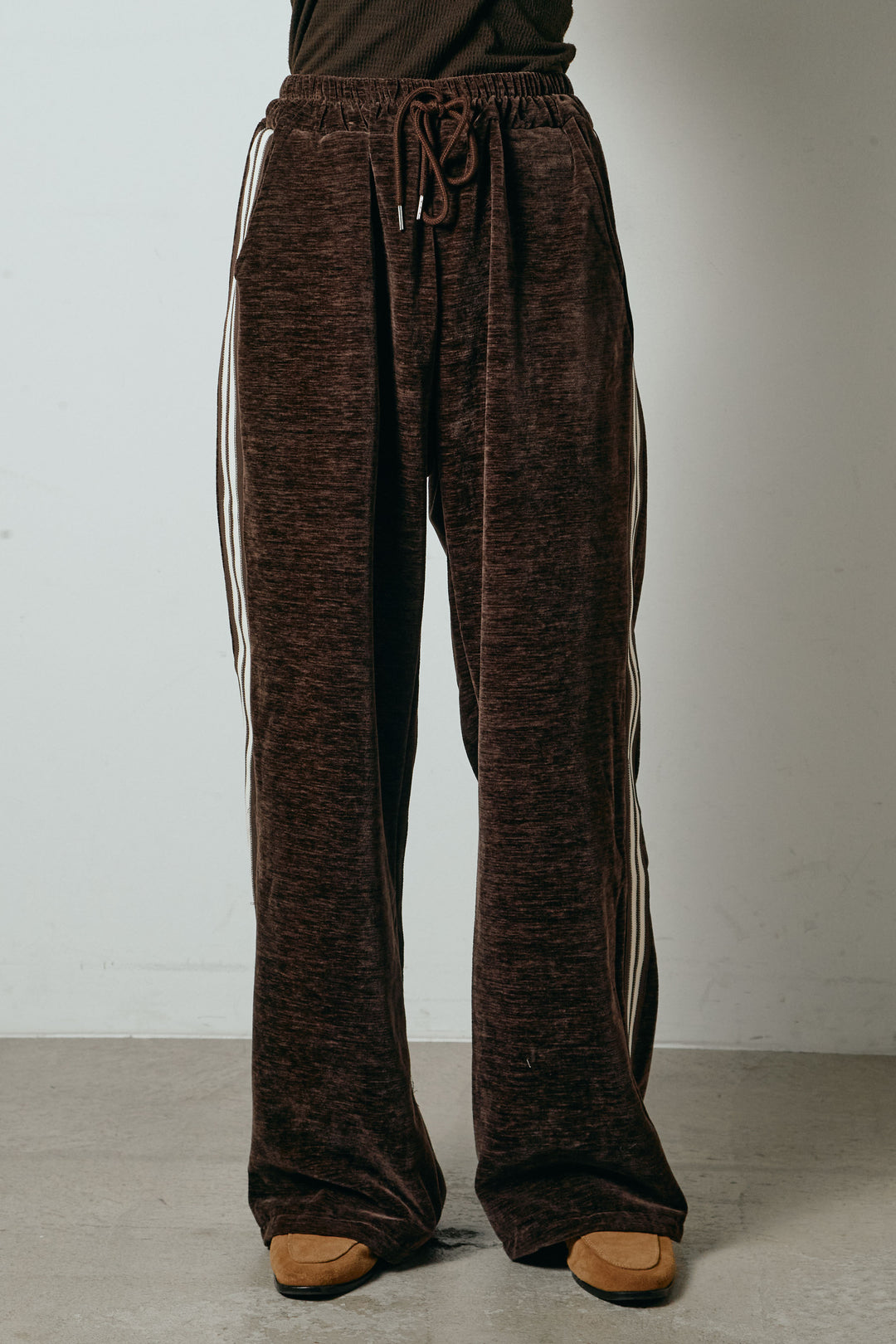 リラックスサイドラインベロアワイドパンツ