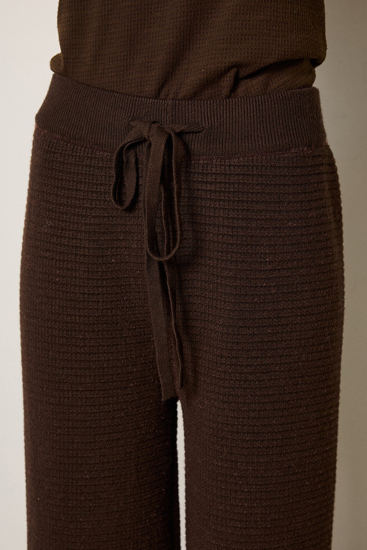 しっかりとしたワイドリブが縦のラインを強調し、脚をすっきりと見せてくれるニットイージーパンツ。 ウエストはドローストリング仕様で、リラックス感のあるはき心地。 落ち感のあるニット素材が上品さをプラスし、カジュアルながらも洗練された印象に。 同素材のニットトップスと合わせたセットアップコーデもおすすめです。