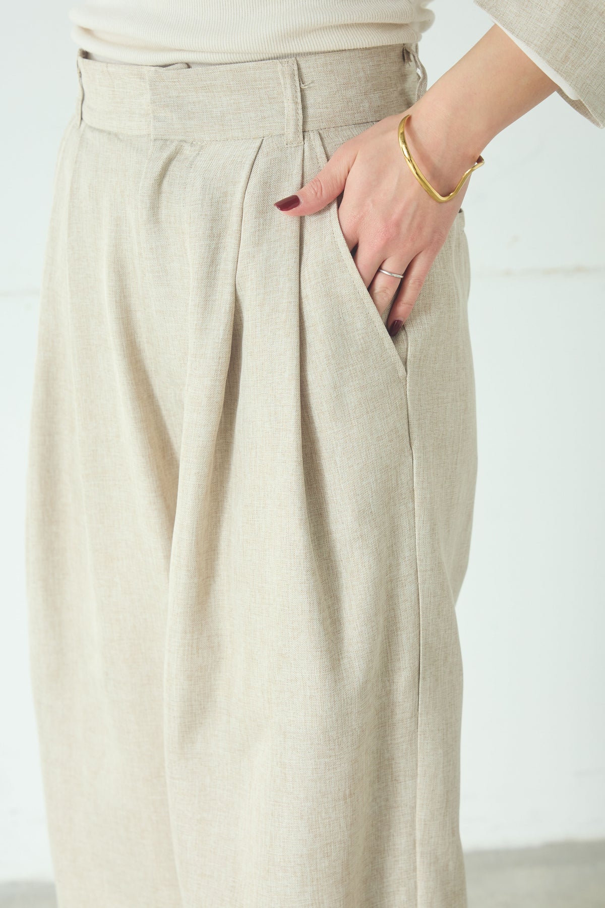 リネンライク2タックパンツ