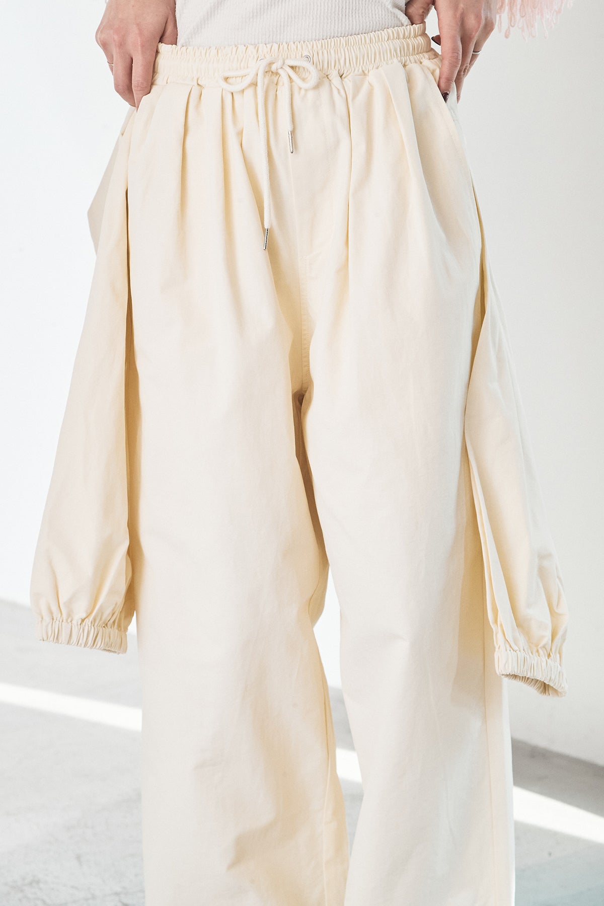 【即納】合繊ツイルスタンドウエスト巻きジョガーパンツ