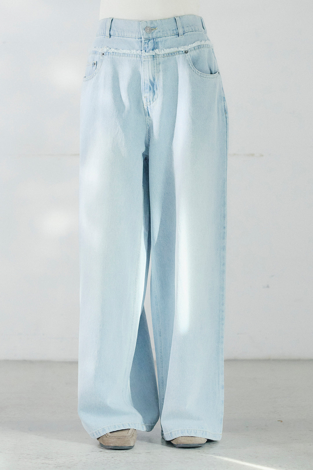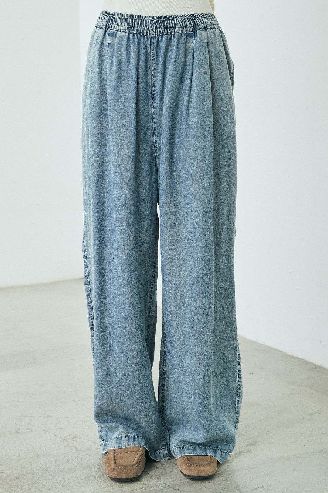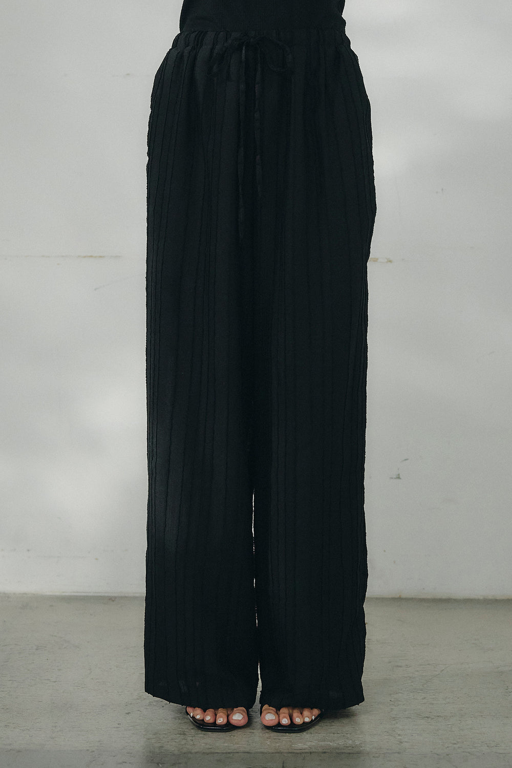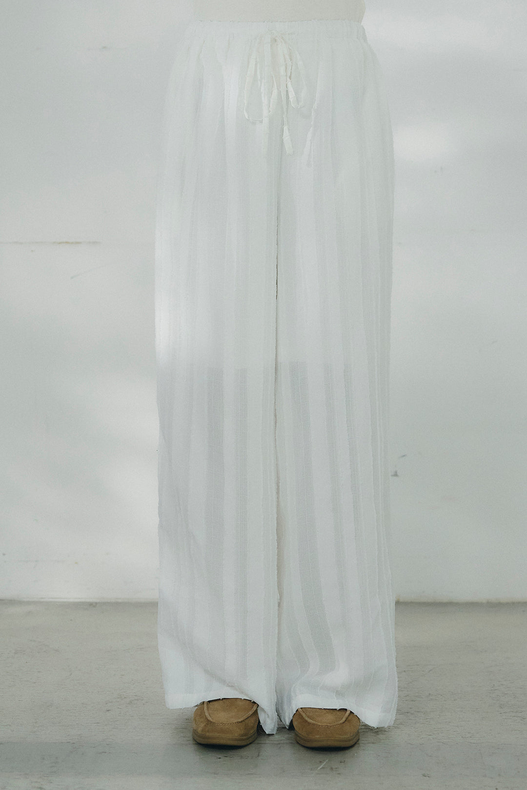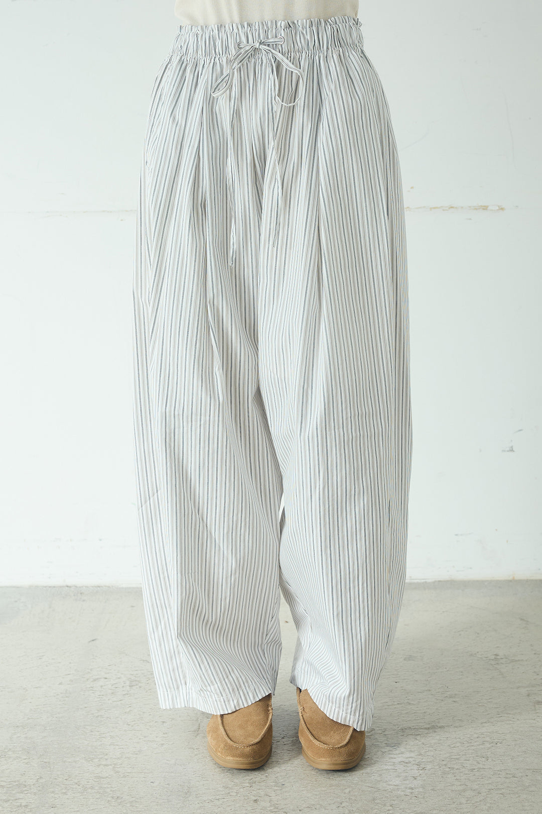 ウエスト切りっぱなしタックワイドパンツ