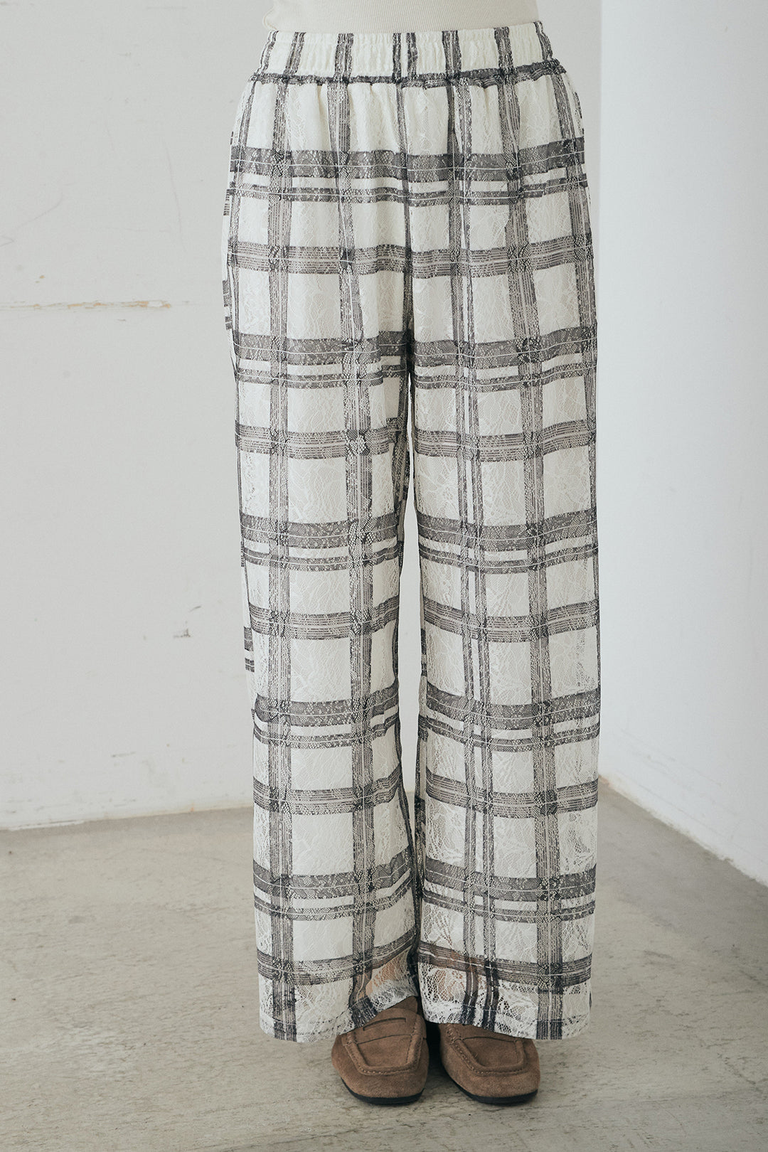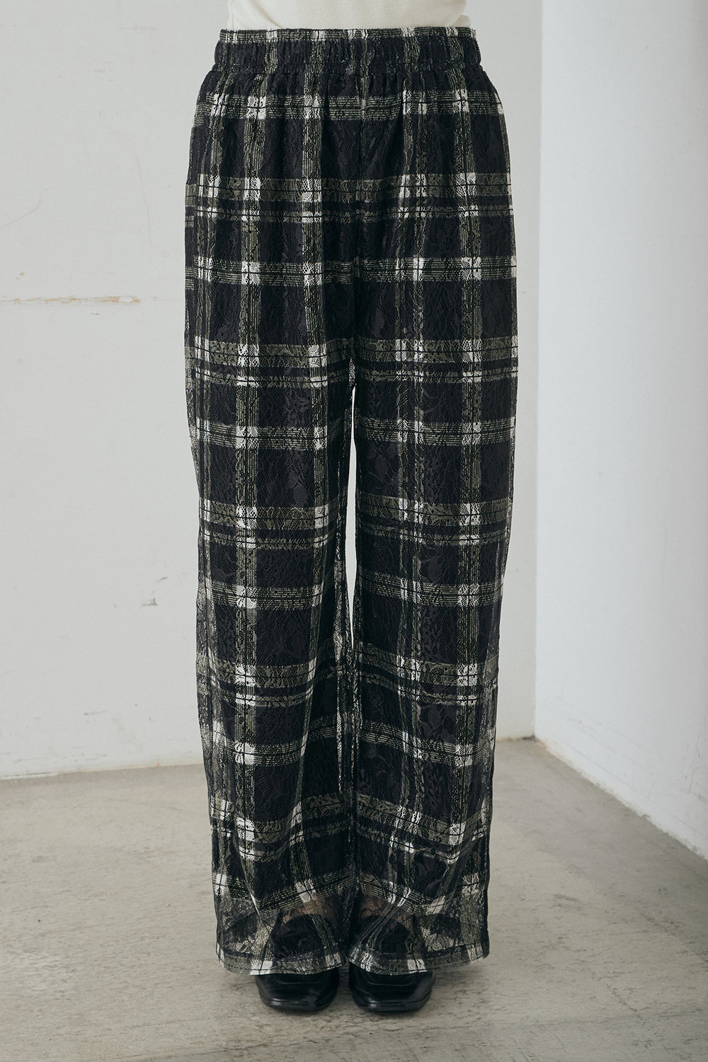 スクエアチェック柄ワイドパンツ