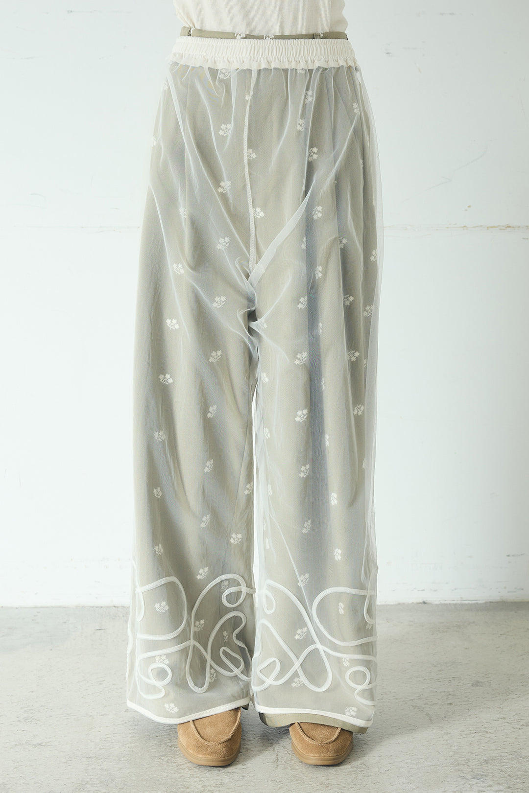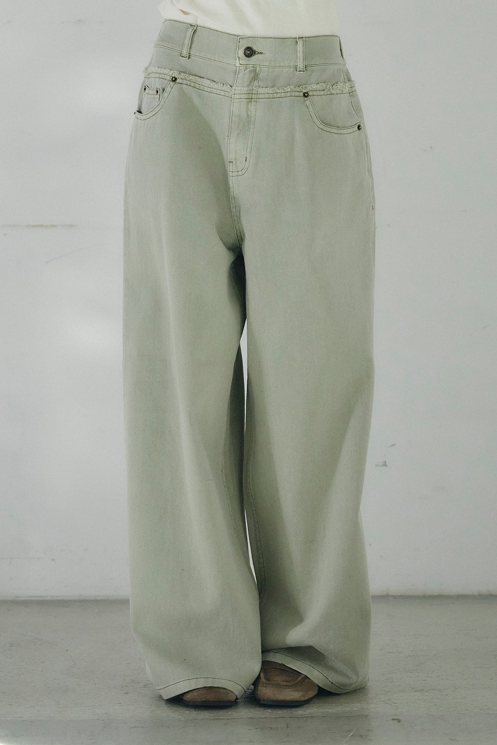 ウエストステッチデザインワイドスラックス