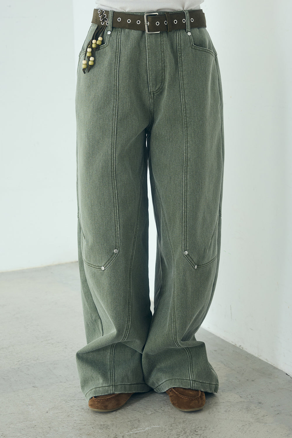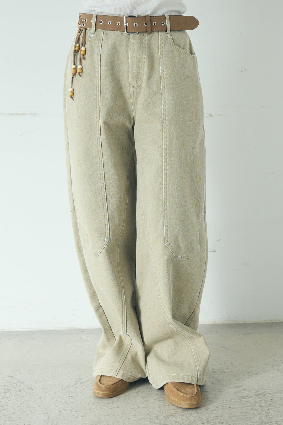 ベルト付きカラーデニムカーブワイドパンツ