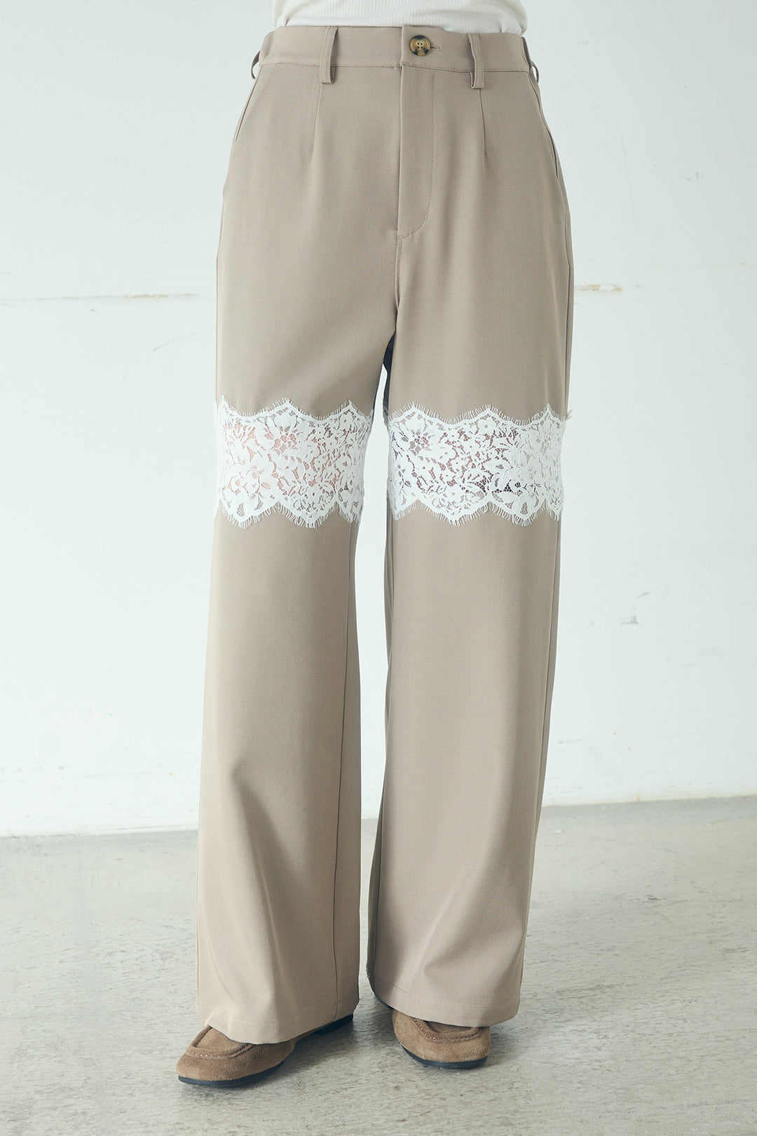 レース刺繍切替ワイドパンツ
