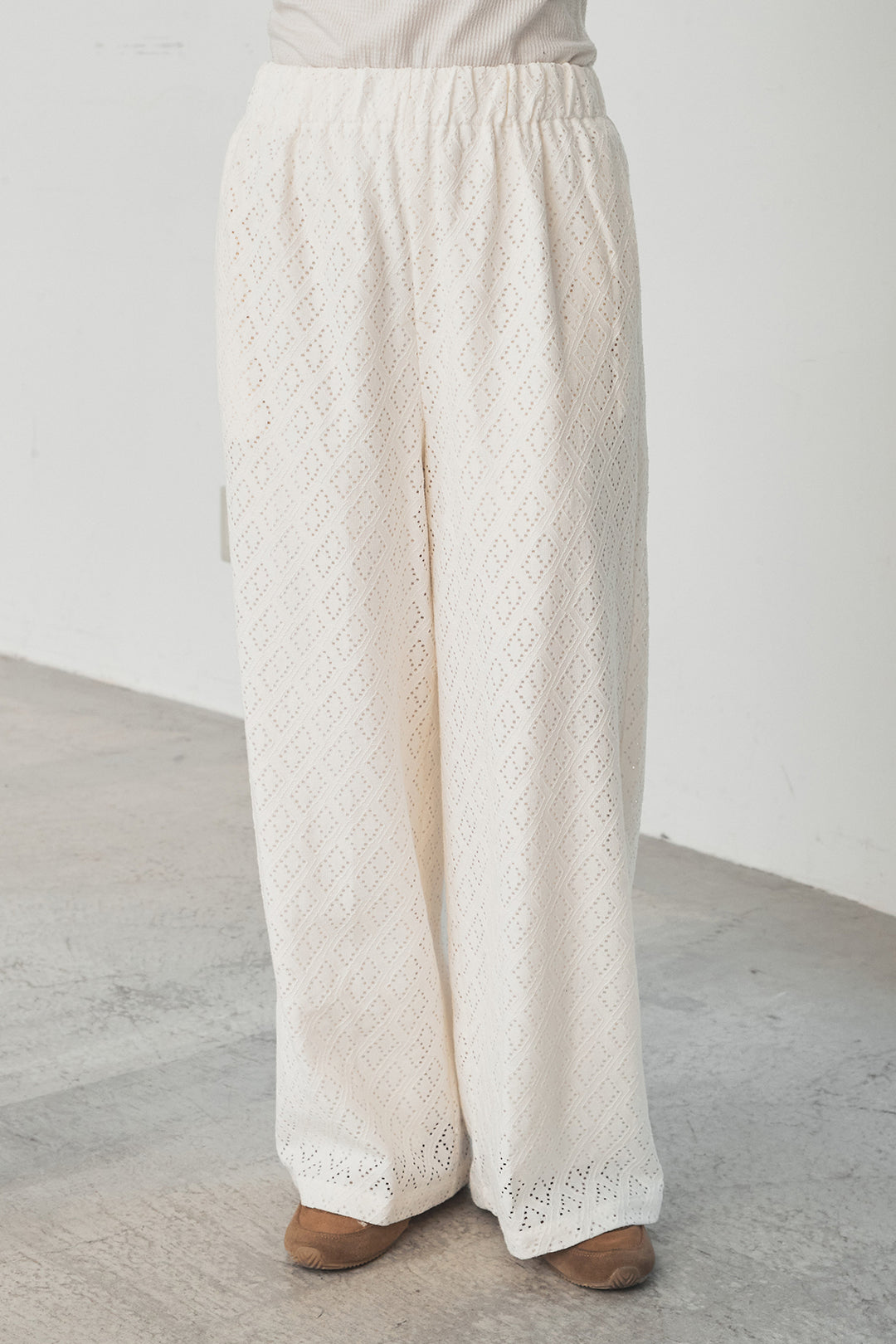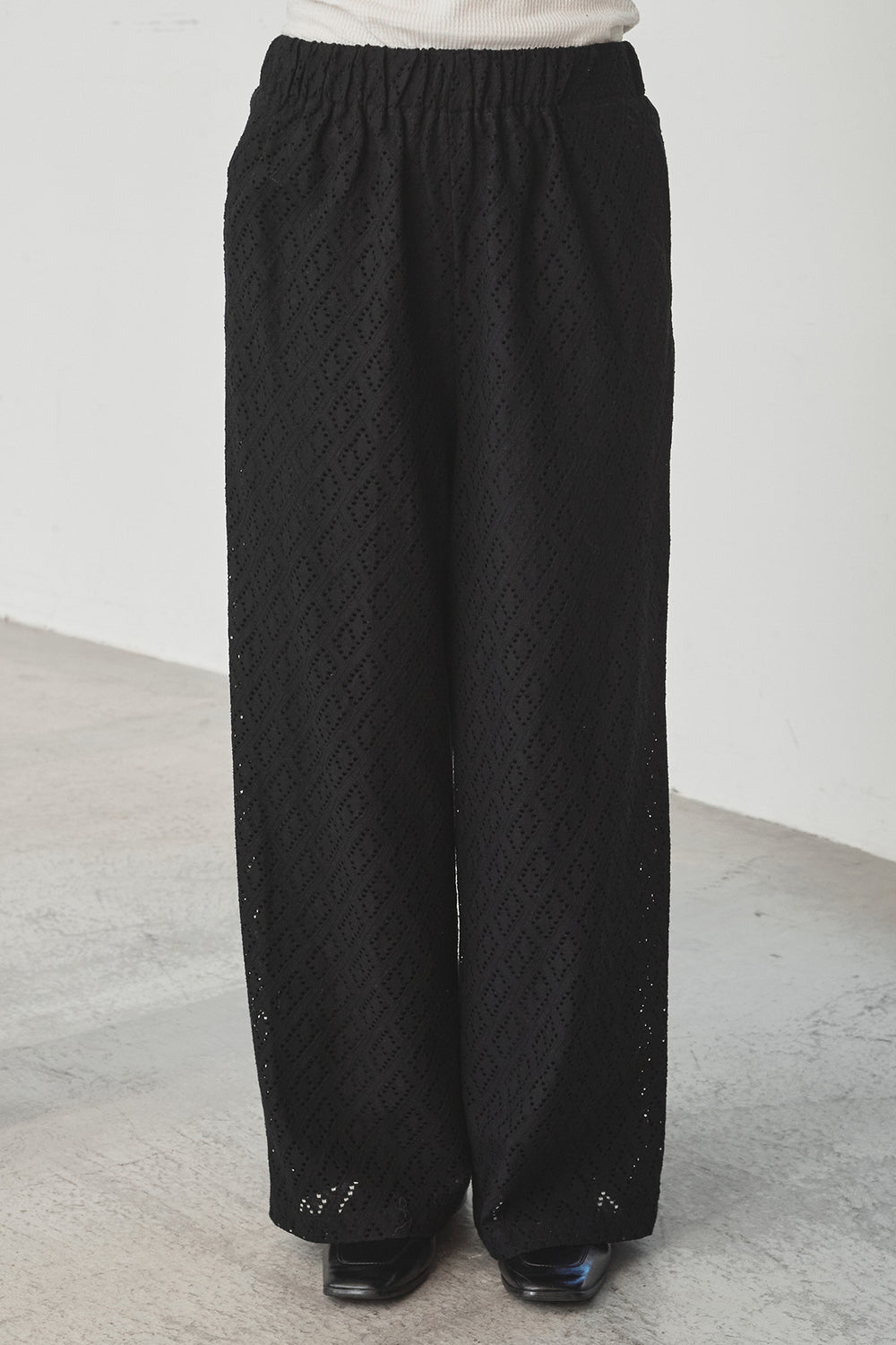 ダイヤ柄レースロングイージーパンツ