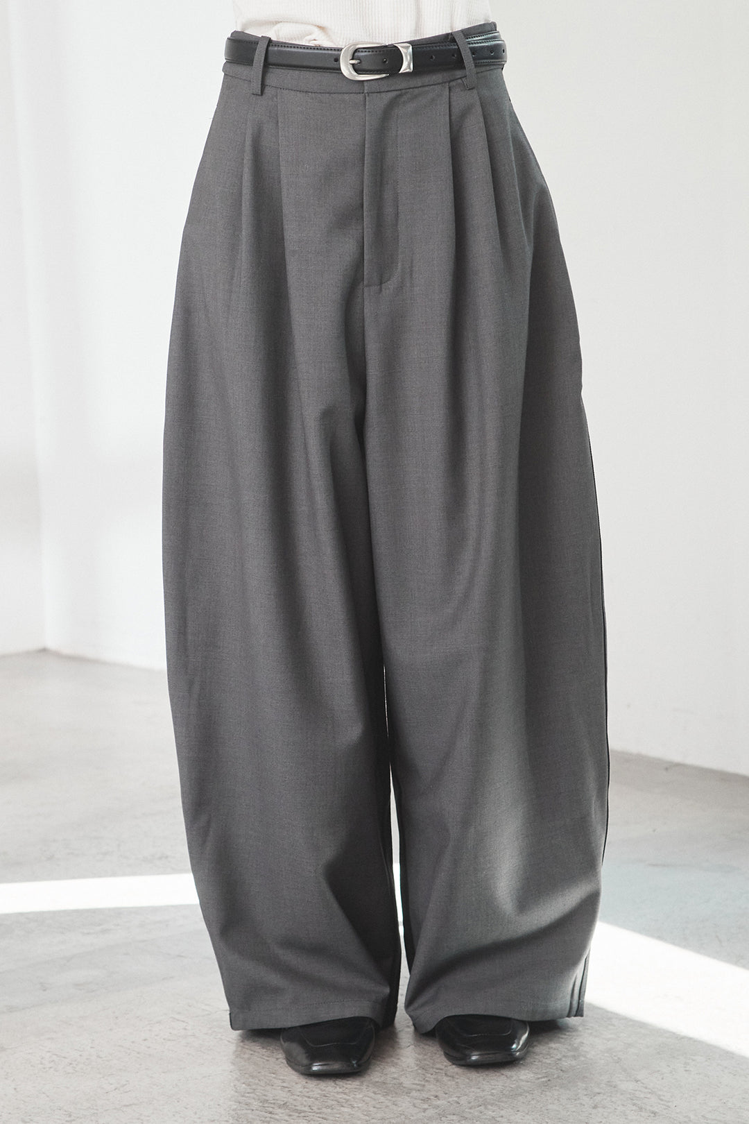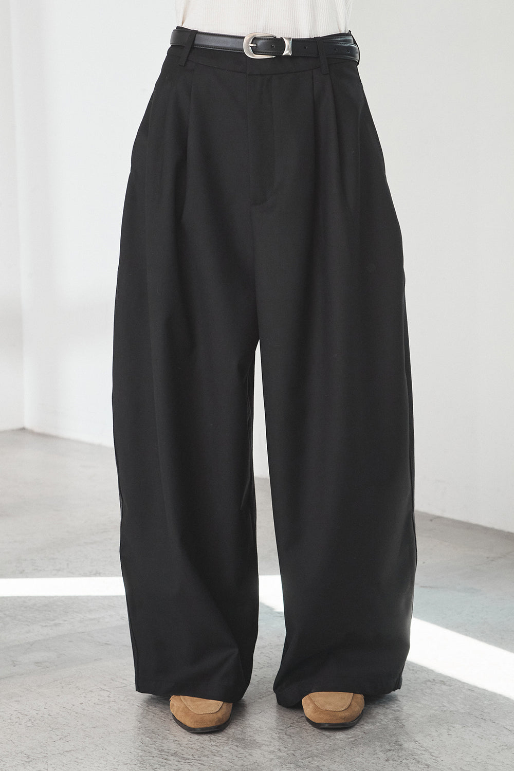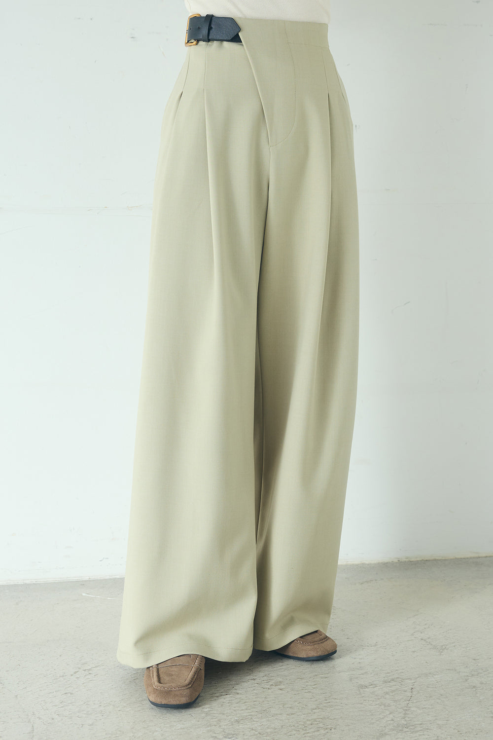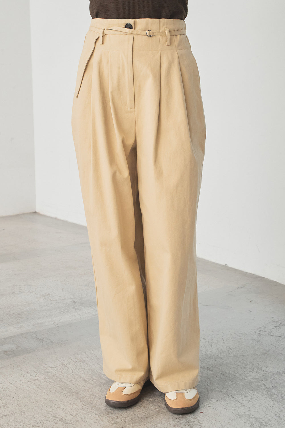 ベルト付きツータックワイドパンツ