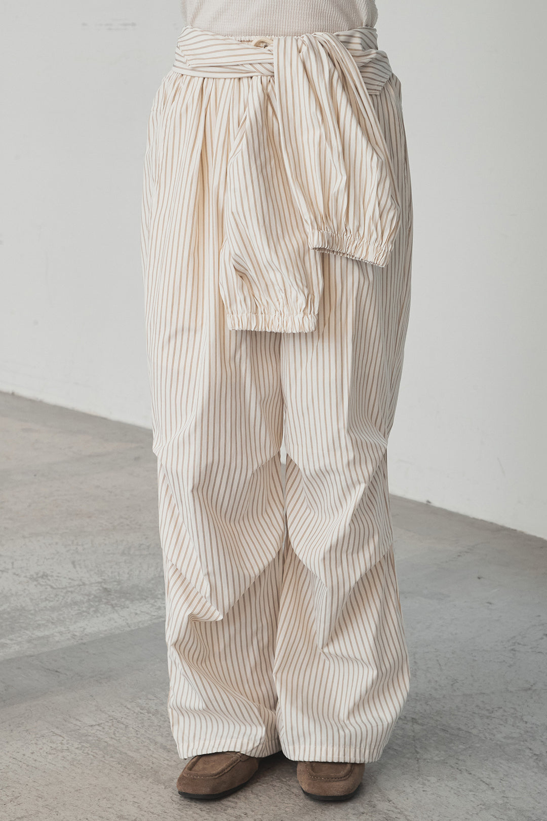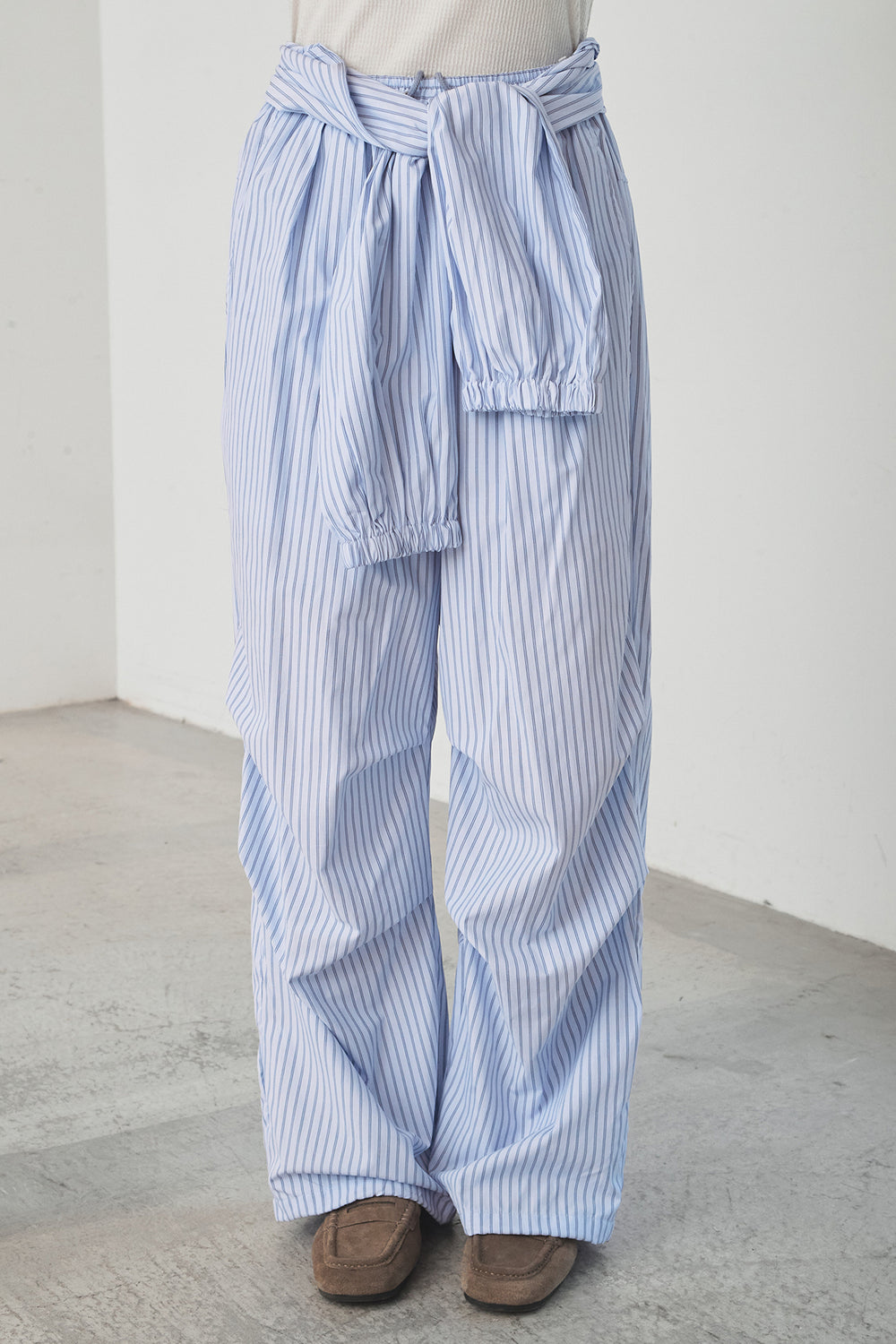 ストライプウエスト巻きジョガーパンツ