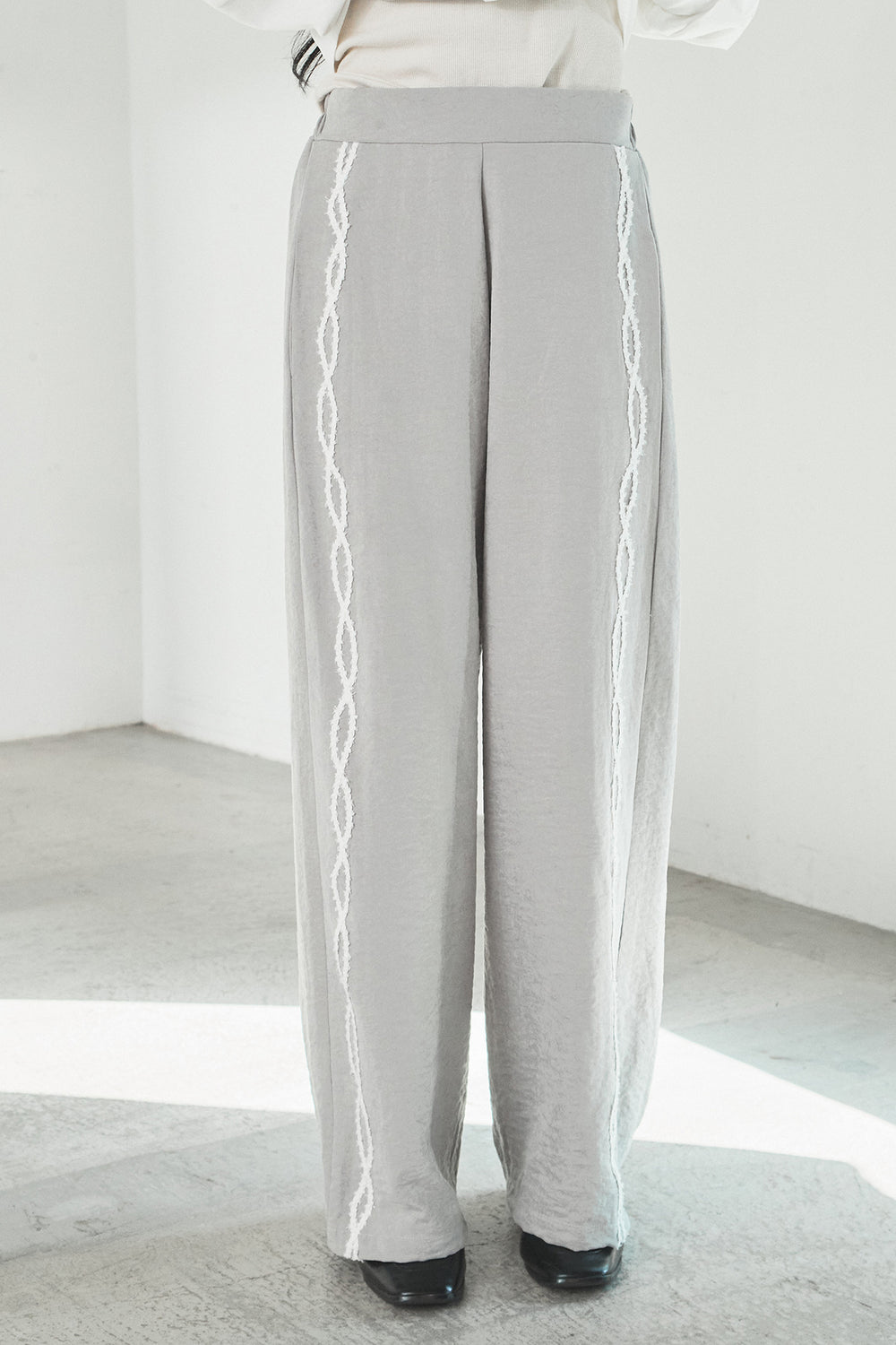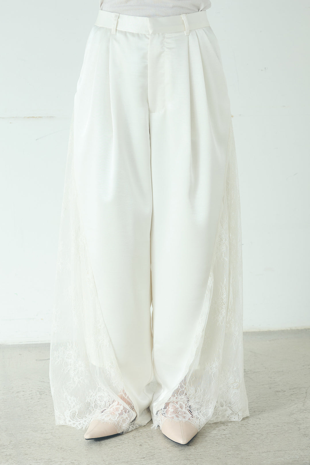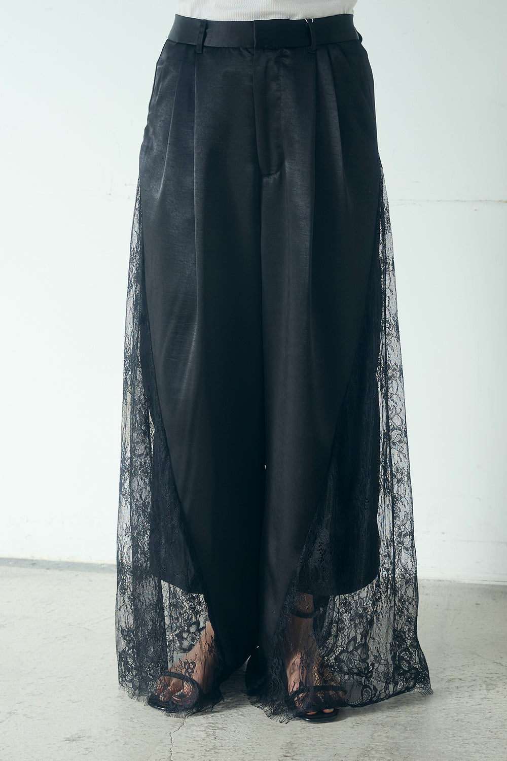 サテンレース切り替えタックパンツ