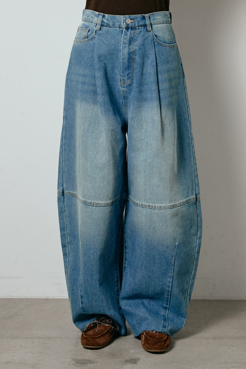 【即納】加工デニムタックコクーンワイドパンツ