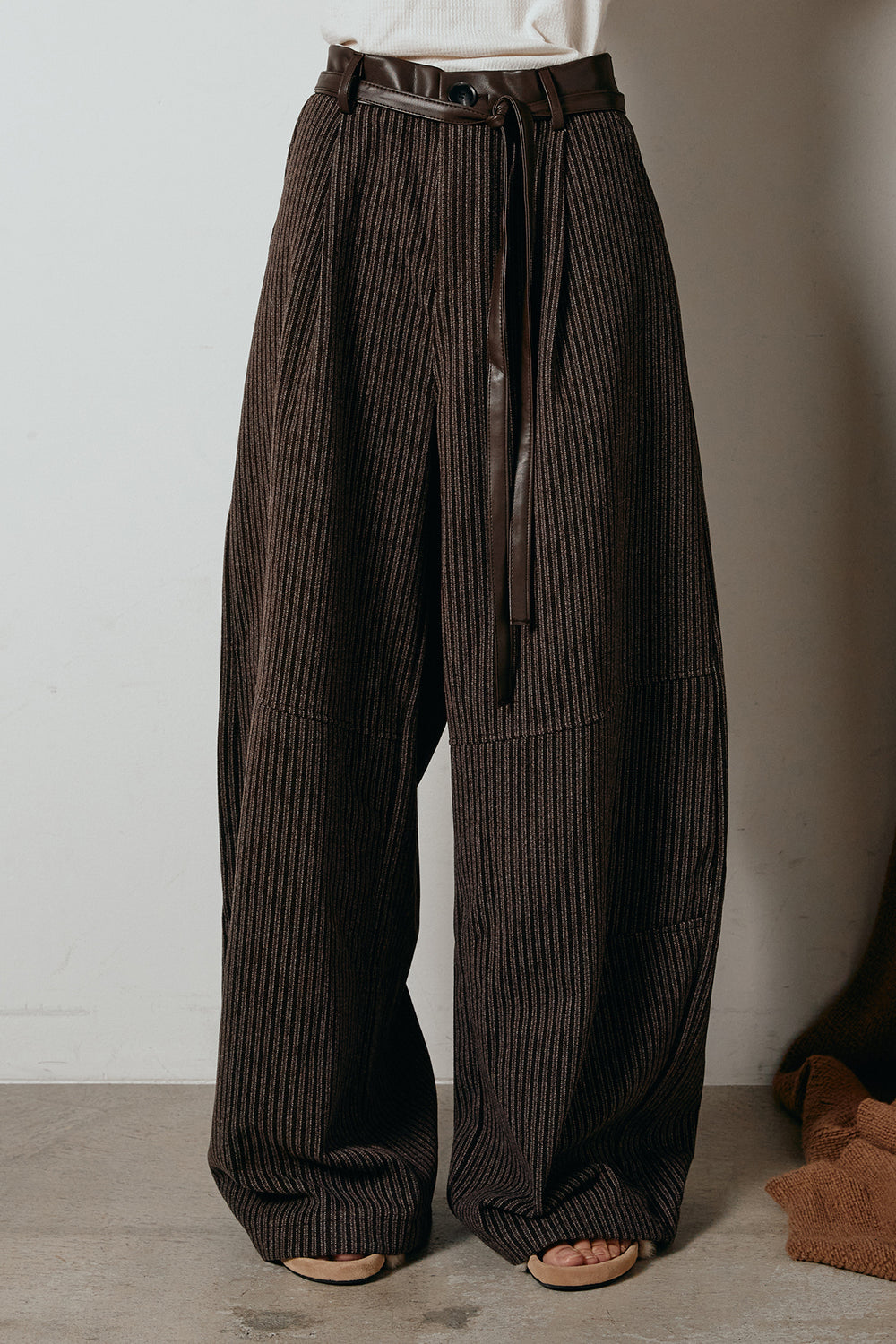 ゴールドバックル太ベルト付きワイドパンツ