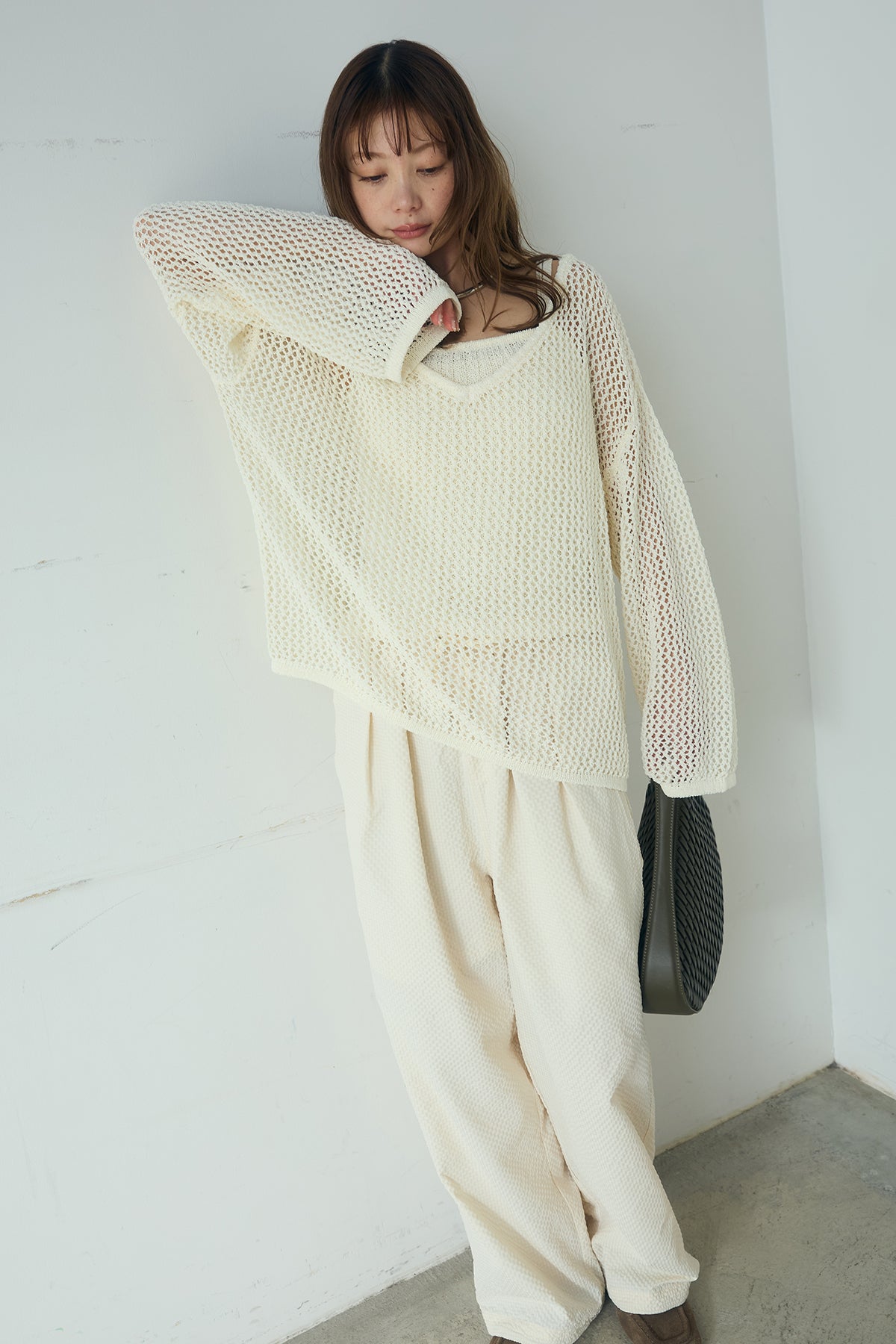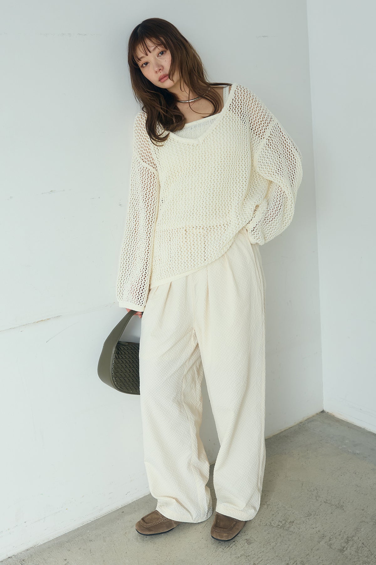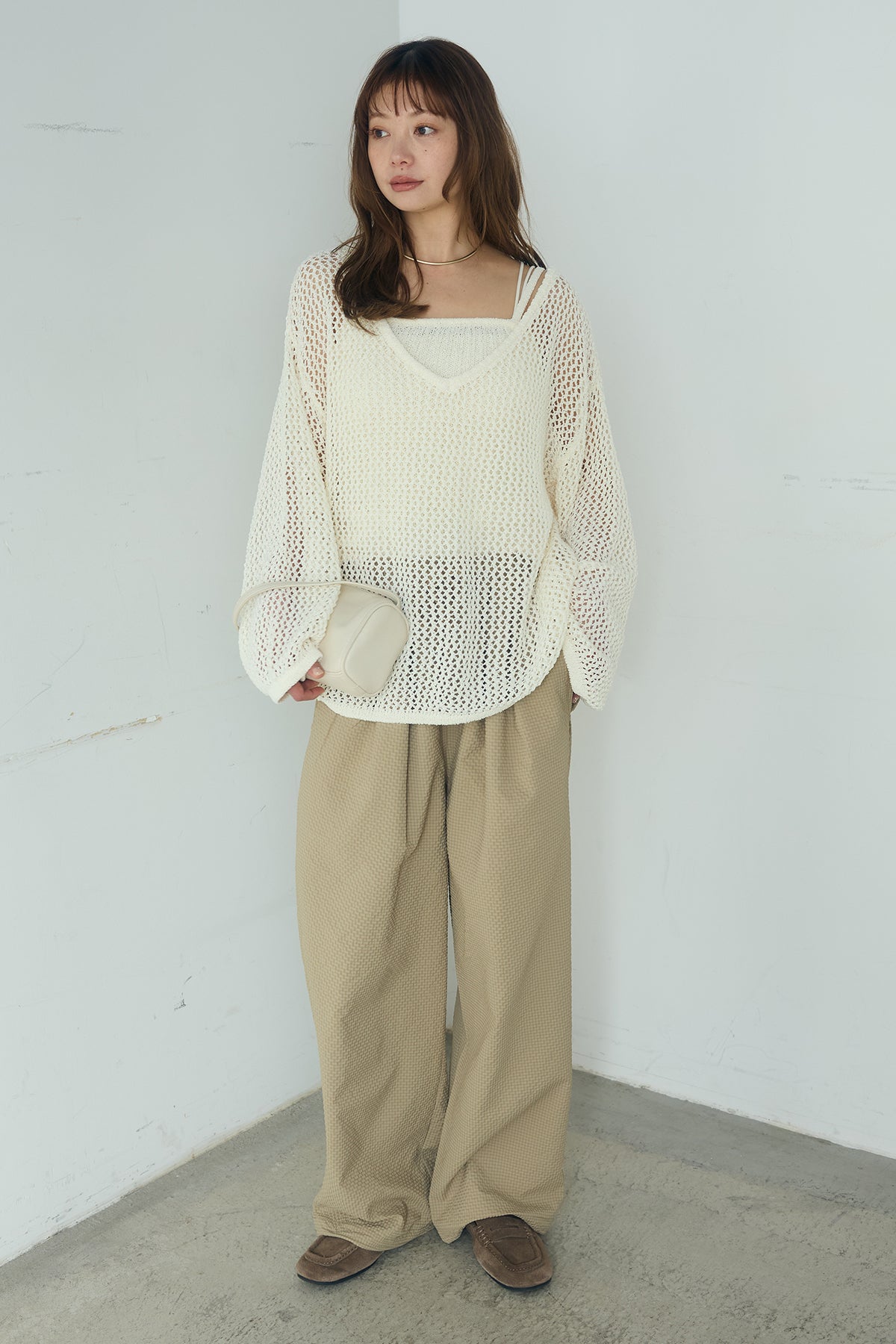 [SET]メッシュ編みビスチェセットVネックプルオーバー+シアサッカーイージーパンツ(2set)